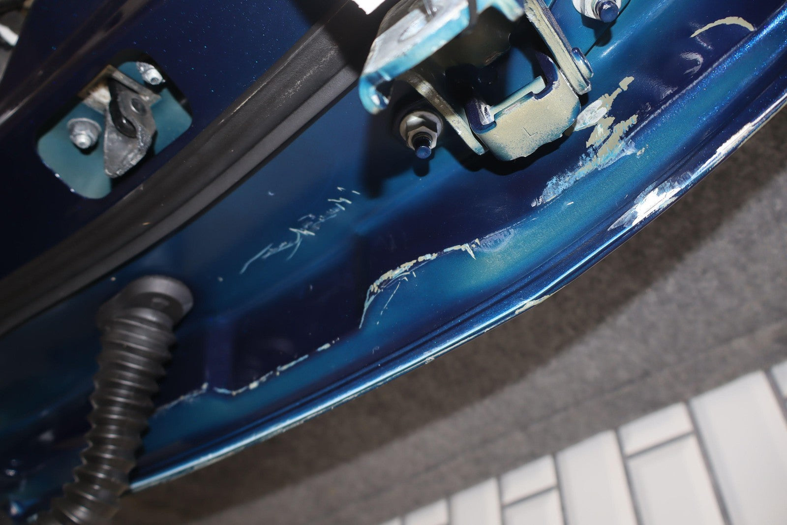 Lh Front, Deep Blue Pearl (ray)/gray, Appears Resprayed, 1 Visible Dent-front Lip Damage, Scratches/knicks/chips