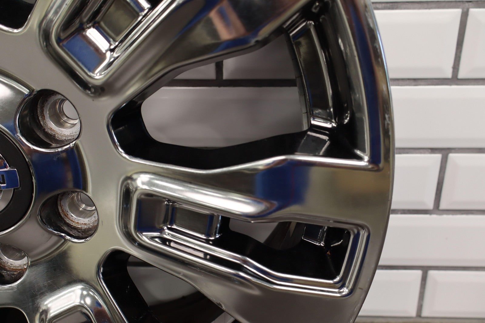 Lh Front, 20x7.5 7 Spoke Chrome Wheel, Light Curb Rash, Decent Scratches To Spokes, Spun True