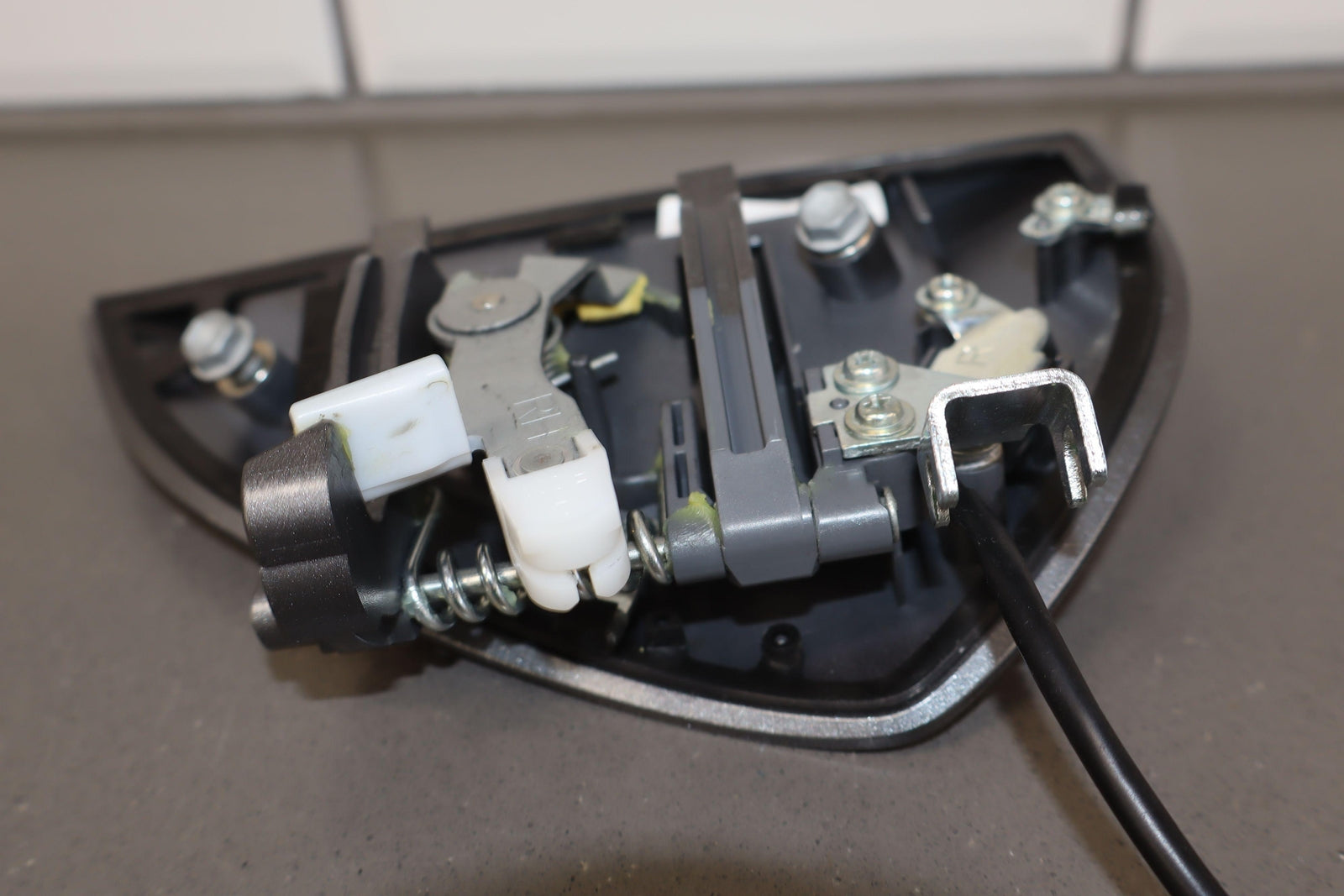 Rh Outer Door Handle, Gun Metallic (kad), Couple Minor Knicks, Mounted Solid, Functions Properly