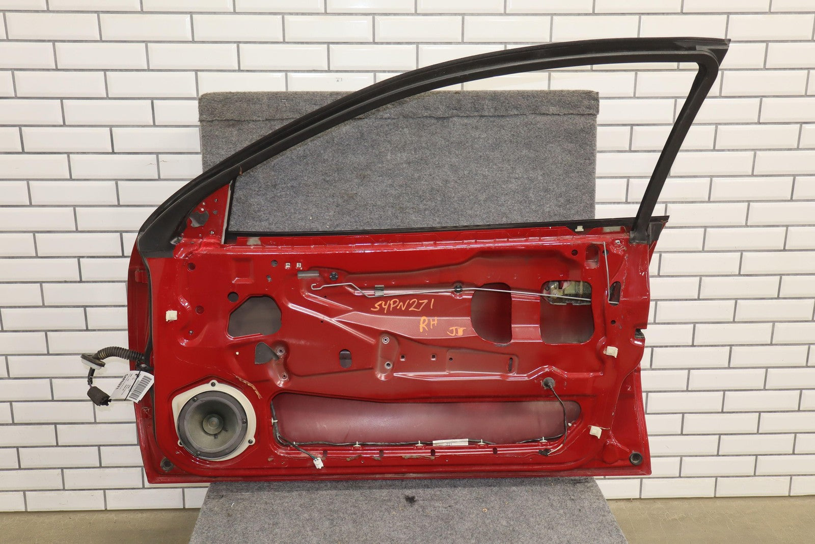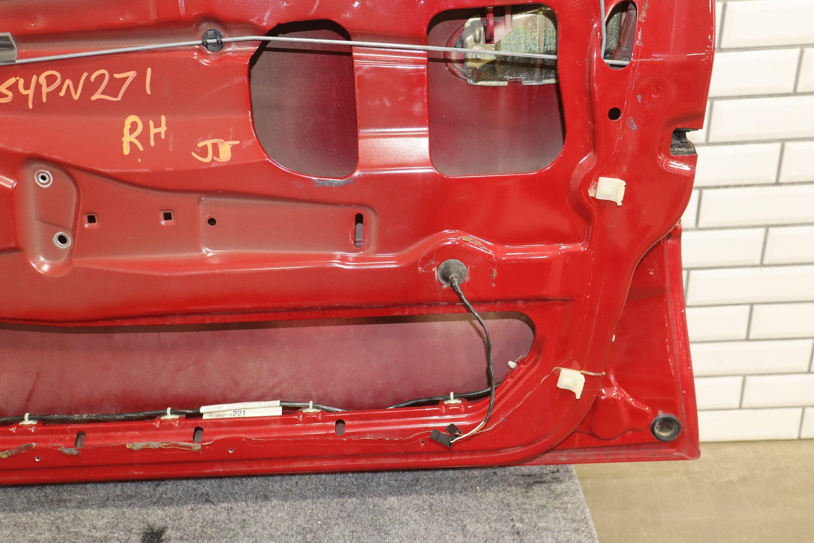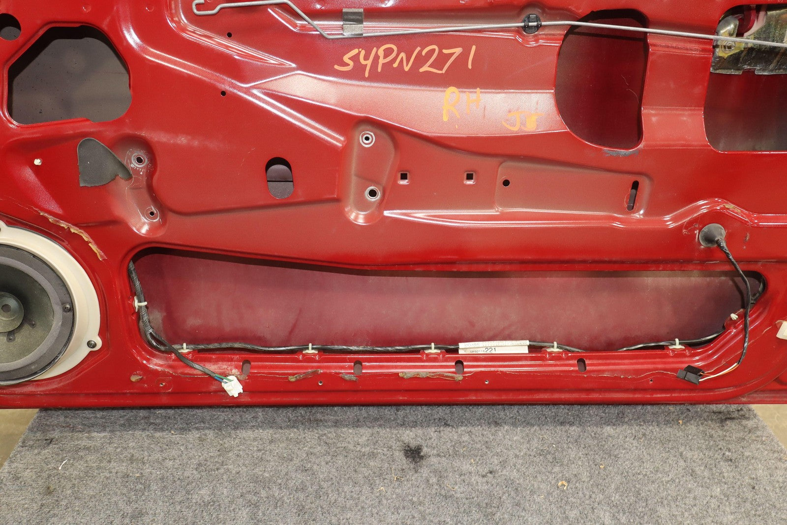 Rh Door Shell, Pulse Red (79u), Sold Less Mirror-trim Panel-glass-regulator, Couple Light Stone Chips, Decent Scuffs/scratches