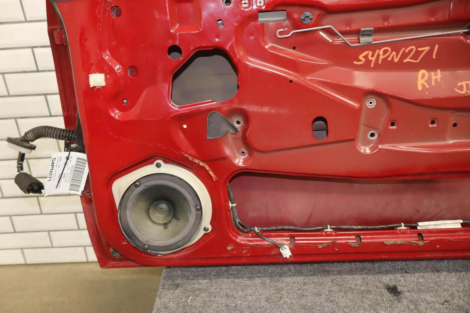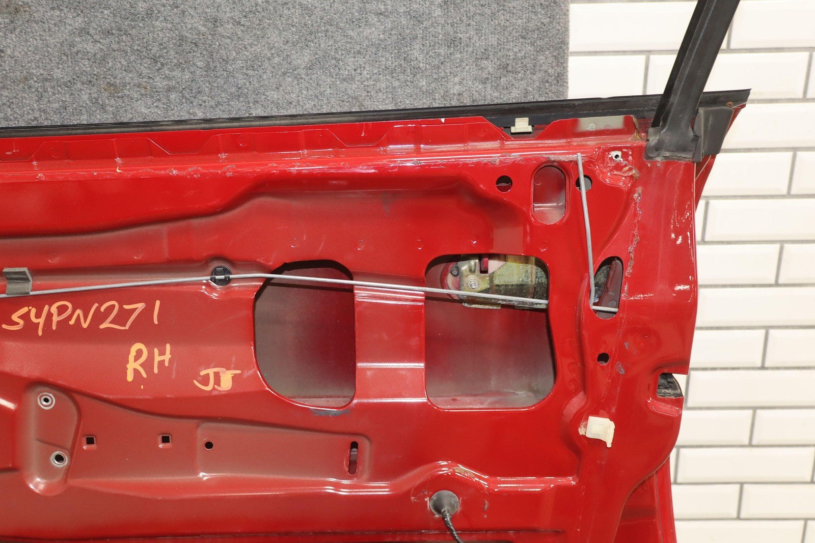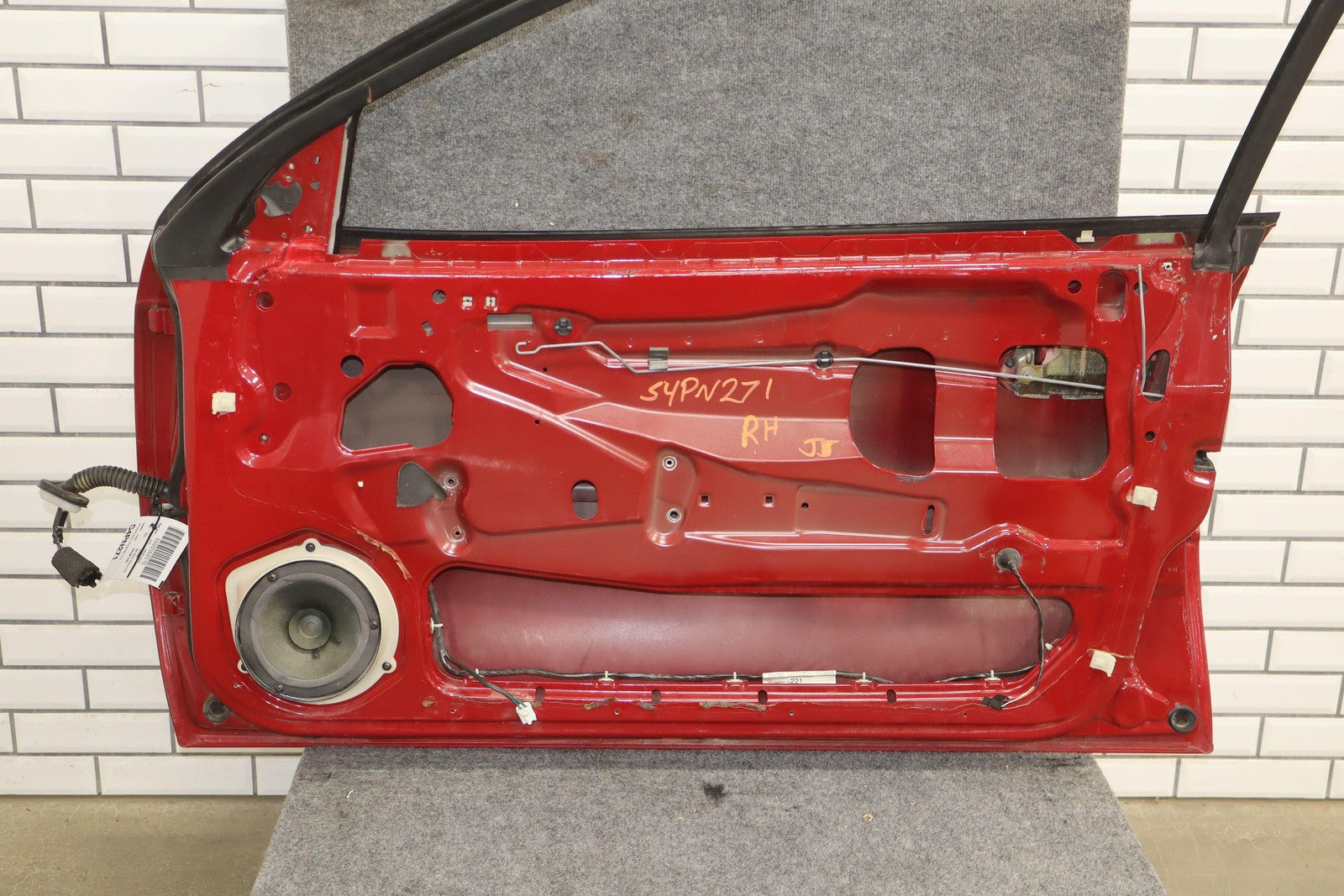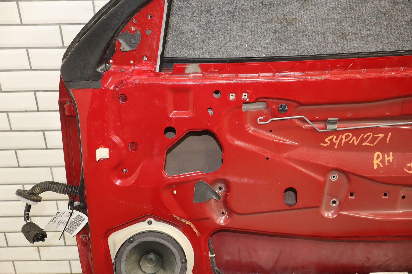 Rh Door Shell, Pulse Red (79u), Sold Less Mirror-trim Panel-glass-regulator, Couple Light Stone Chips, Decent Scuffs/scratches