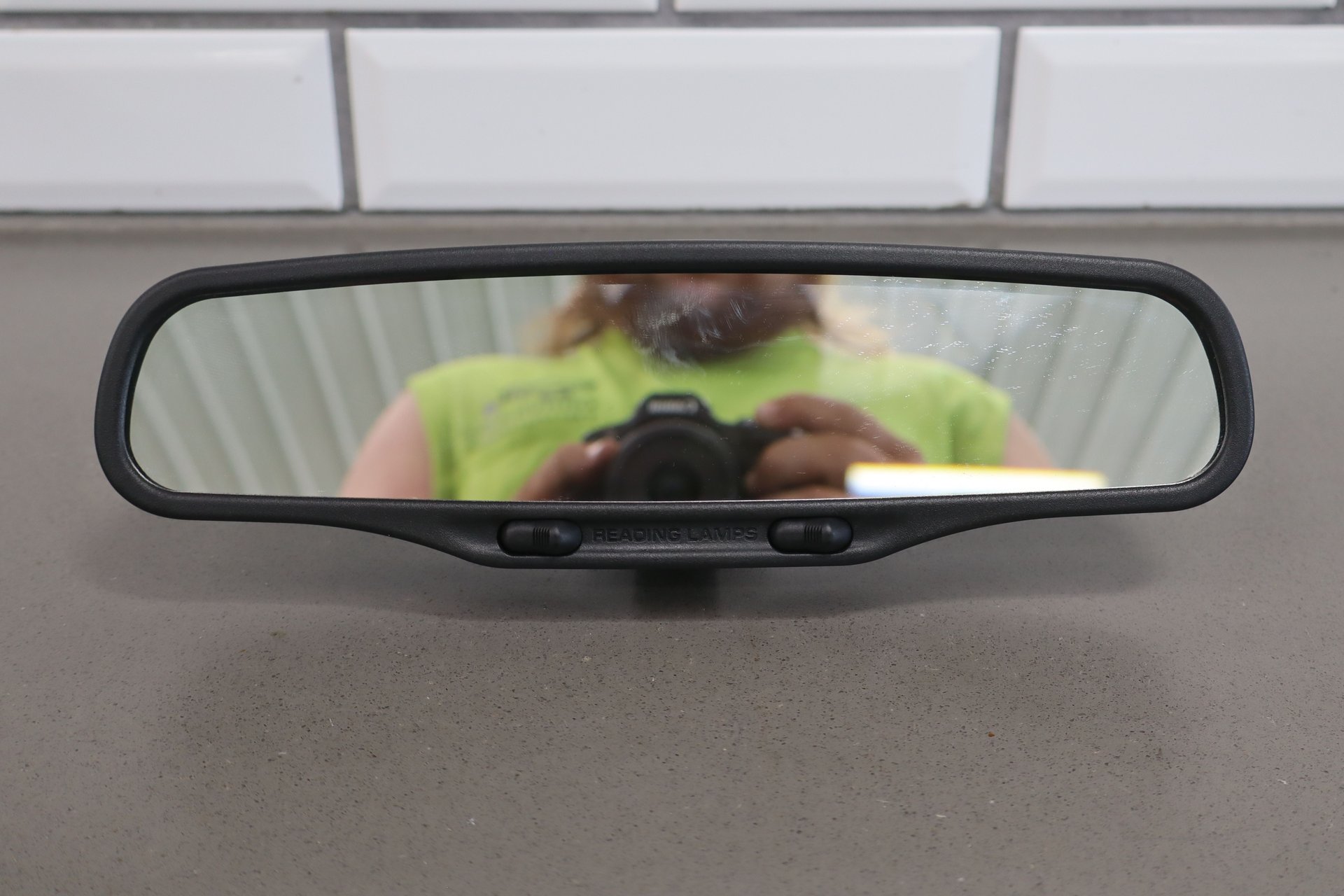 BLACK TEXTURED PLASTIC FRAME, VERY MINOR KNICKS IN GLASS, FUNCTIONS PROPELRY, MANUAL DIMMING
