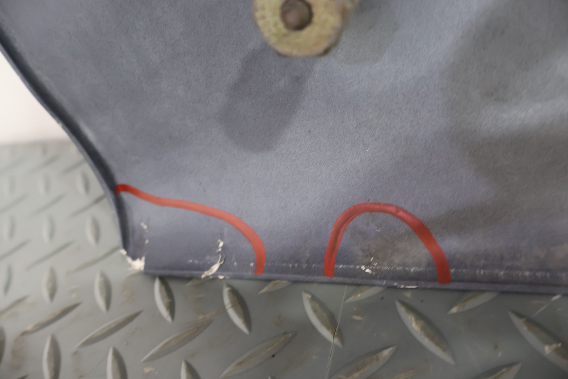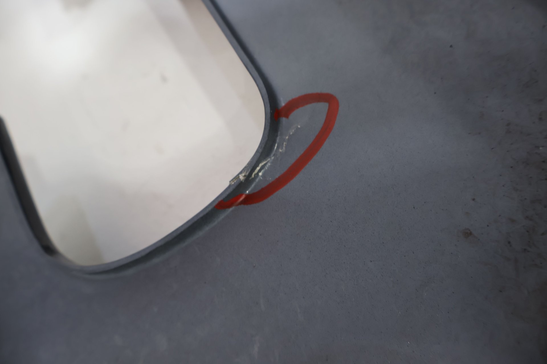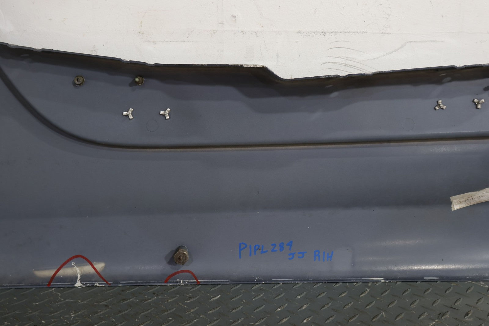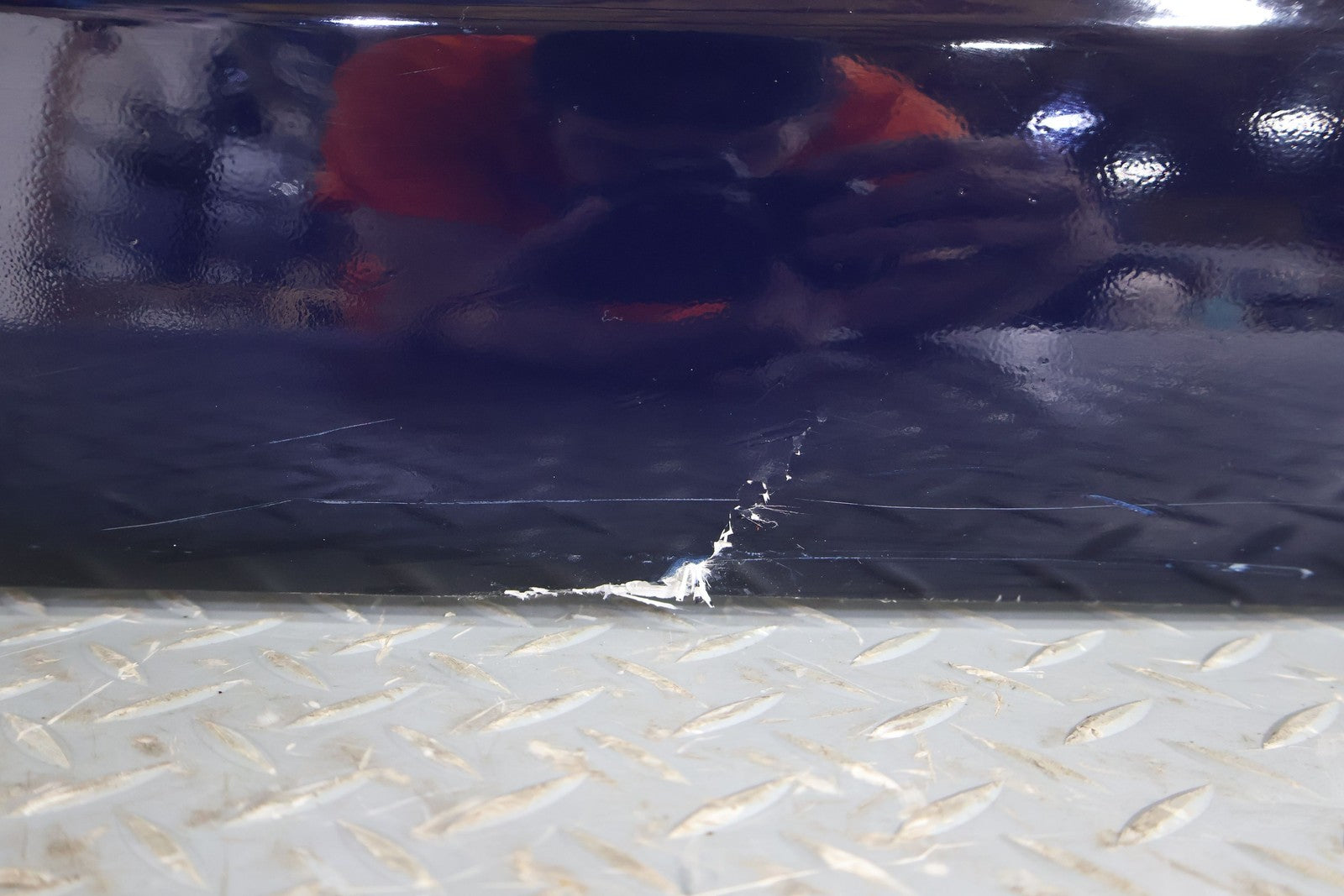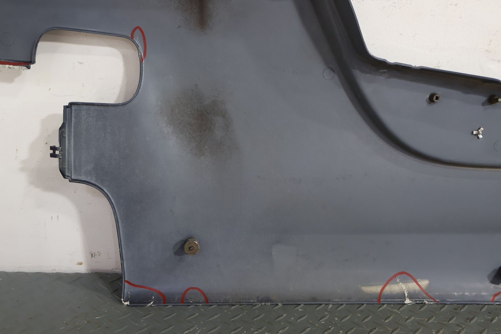 RH, MULHOLLAND BLUE (PB9), PLETHORA OF CRACKS/FIBERGLASS DAMAGE (MARKED RED)