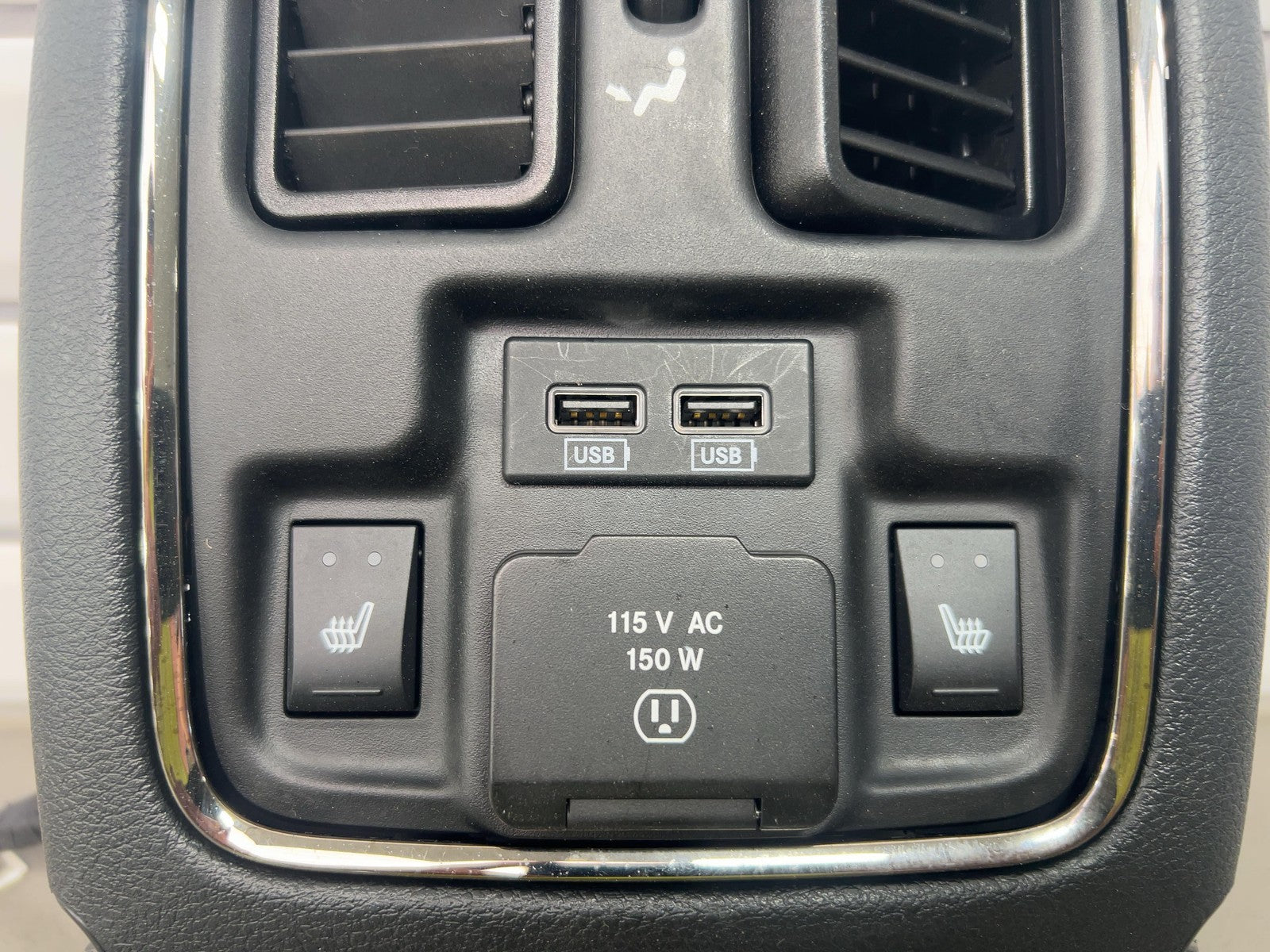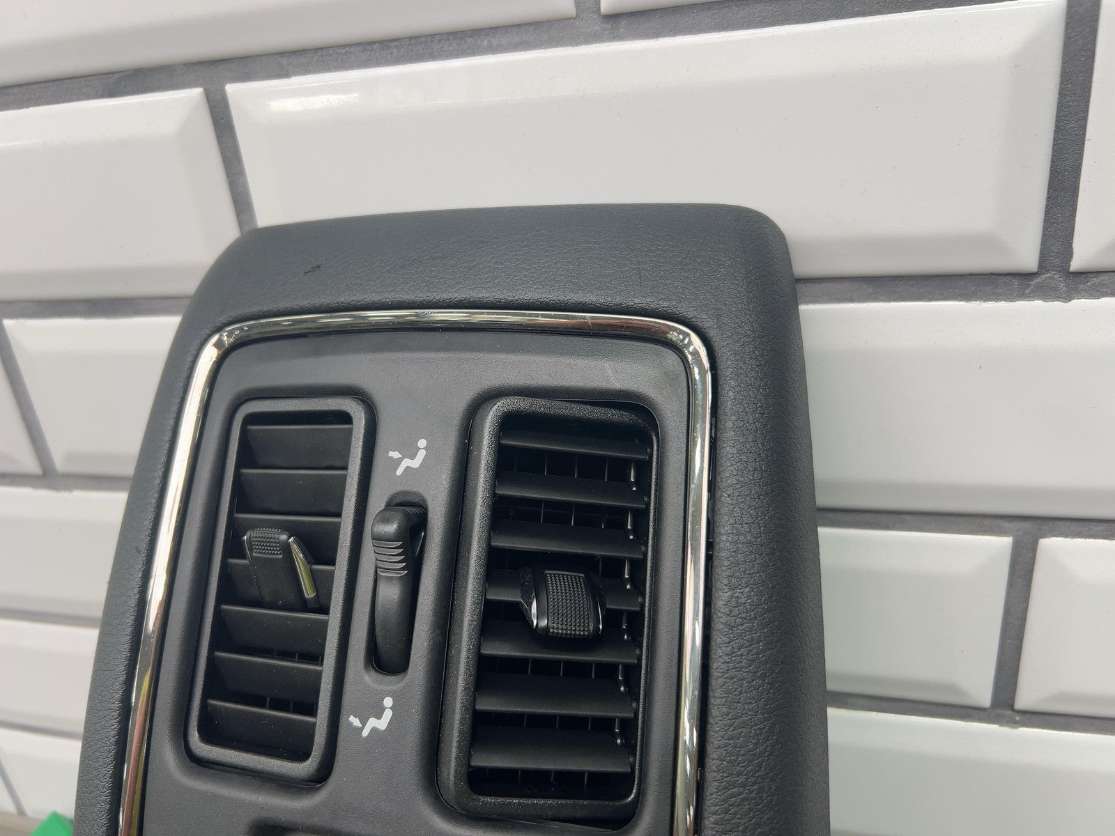 Floor Console Rear Trim, Black (x9), Rear Seat Heater Switches, Clean Lettering, Mild Scuffs/scratches