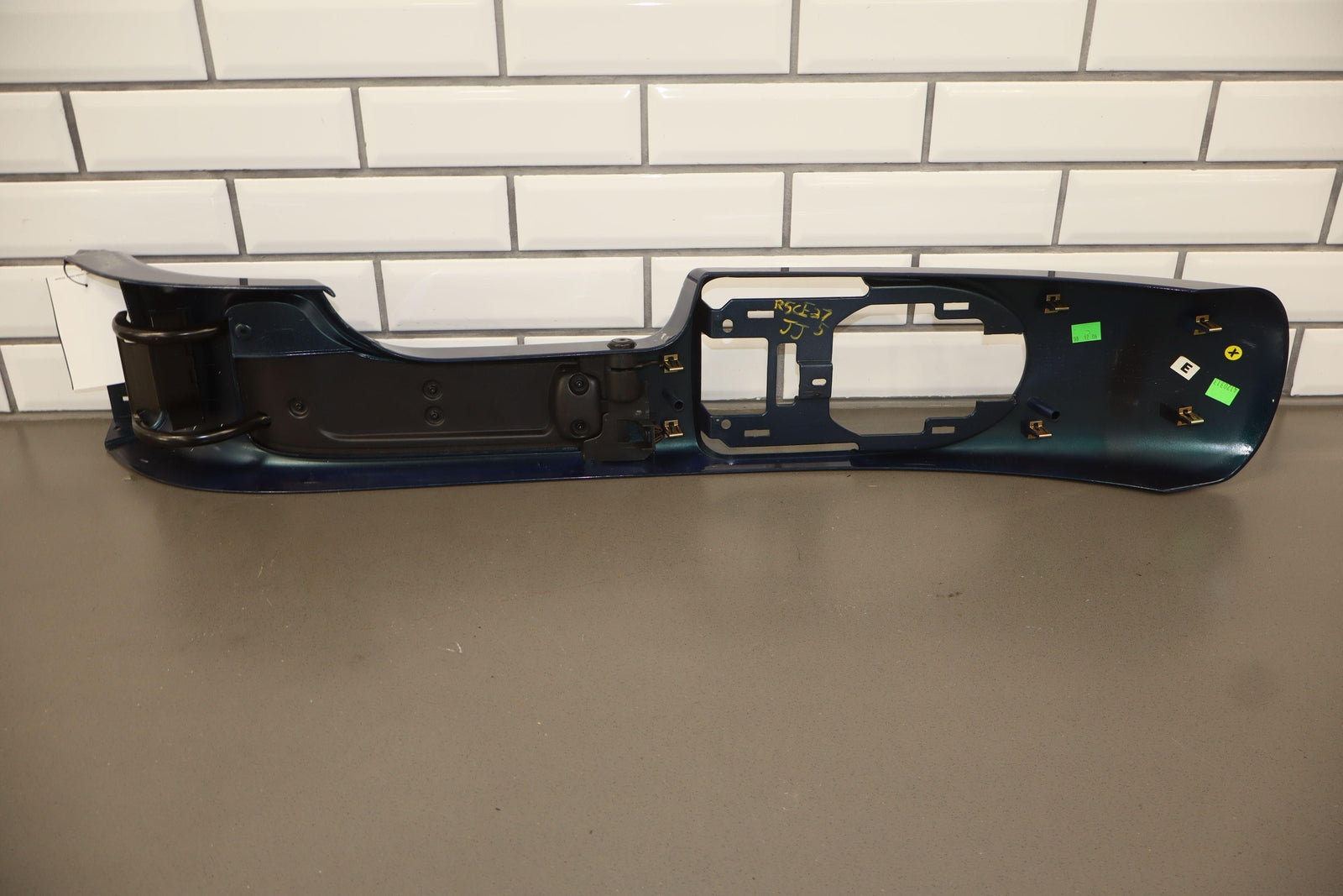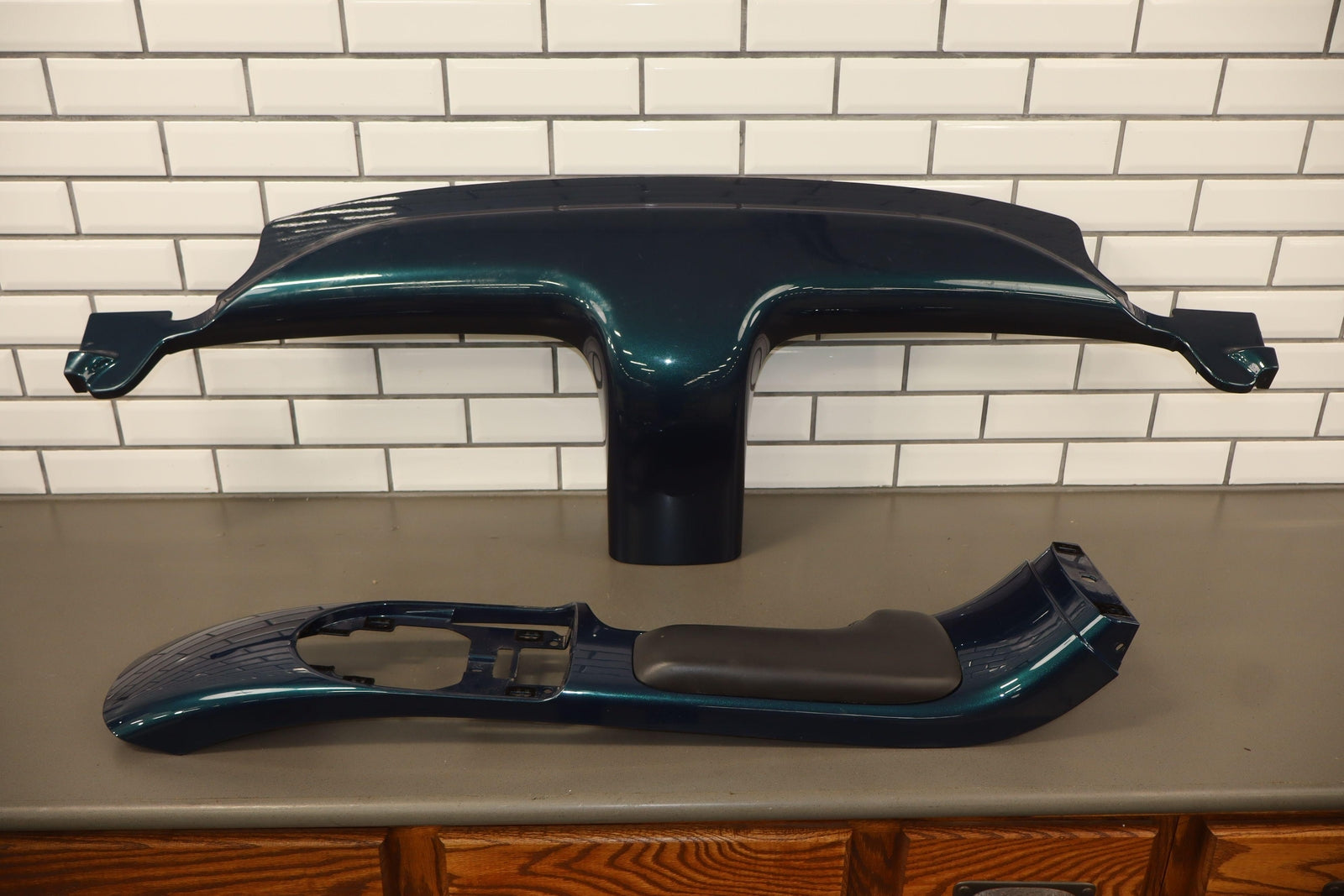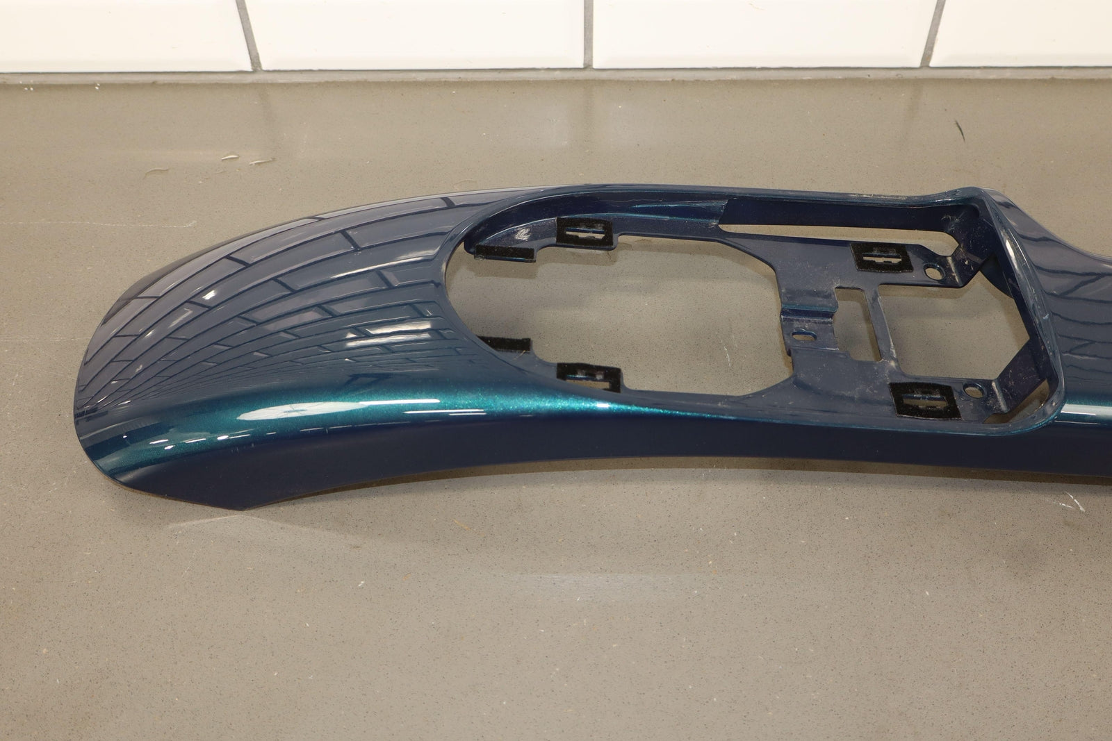 Floor Console, Aqua Blur Metallic (26u), Includes Waterfall Trim-console Lid, Couple Decent Scratches, Lid Latch Works Properly