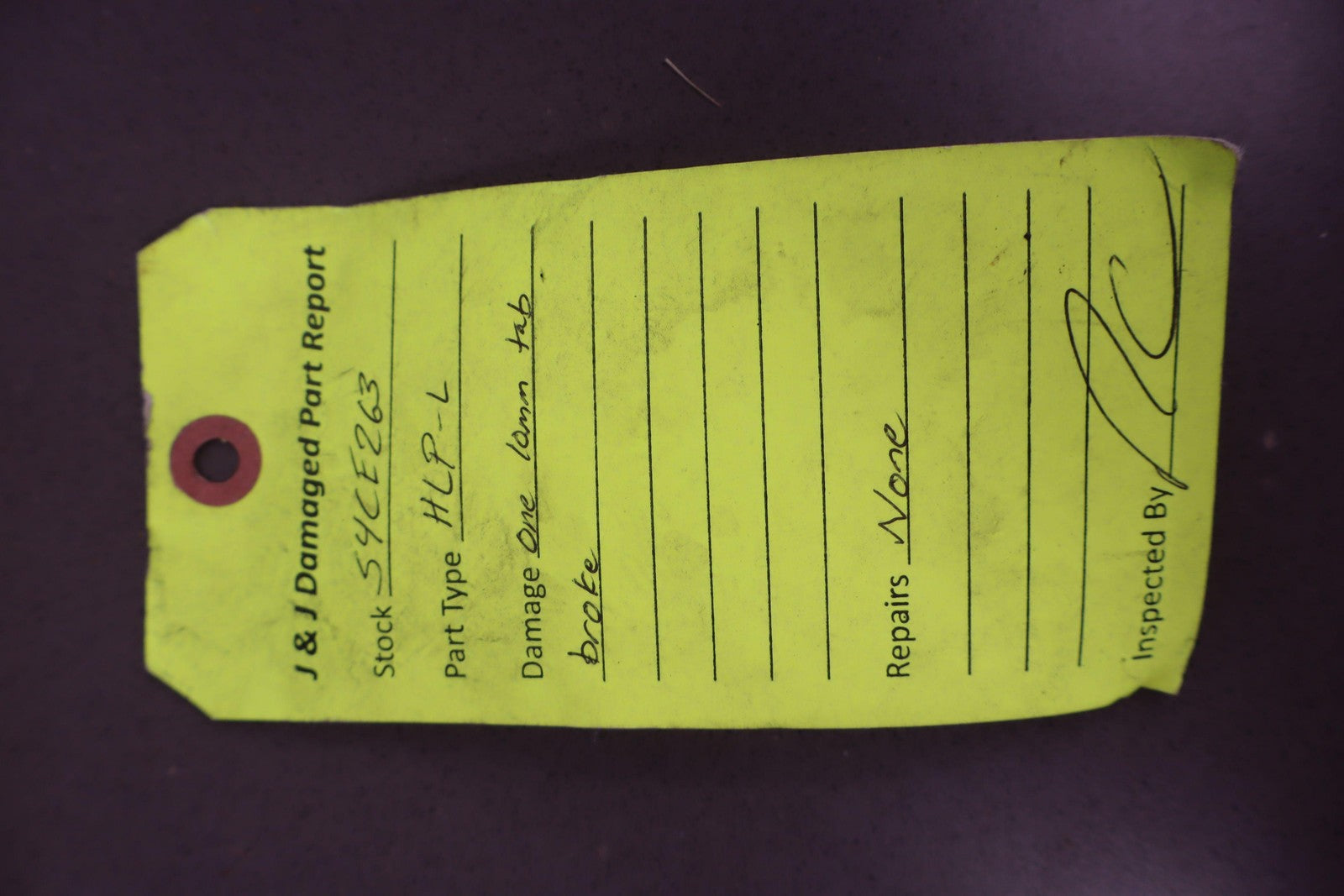 Lh, Decent Haze To Lens, Upper Mount Tab Missing (red), Functions Properly