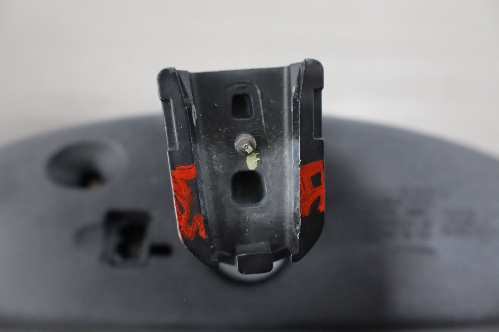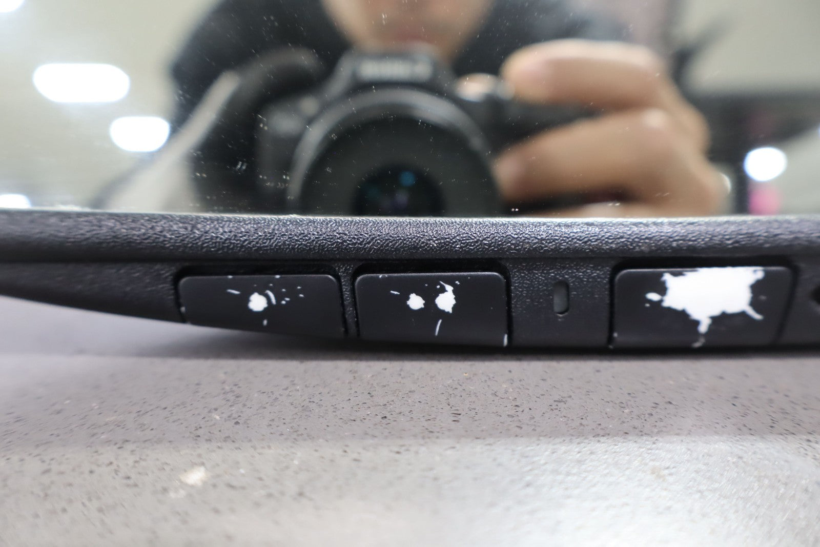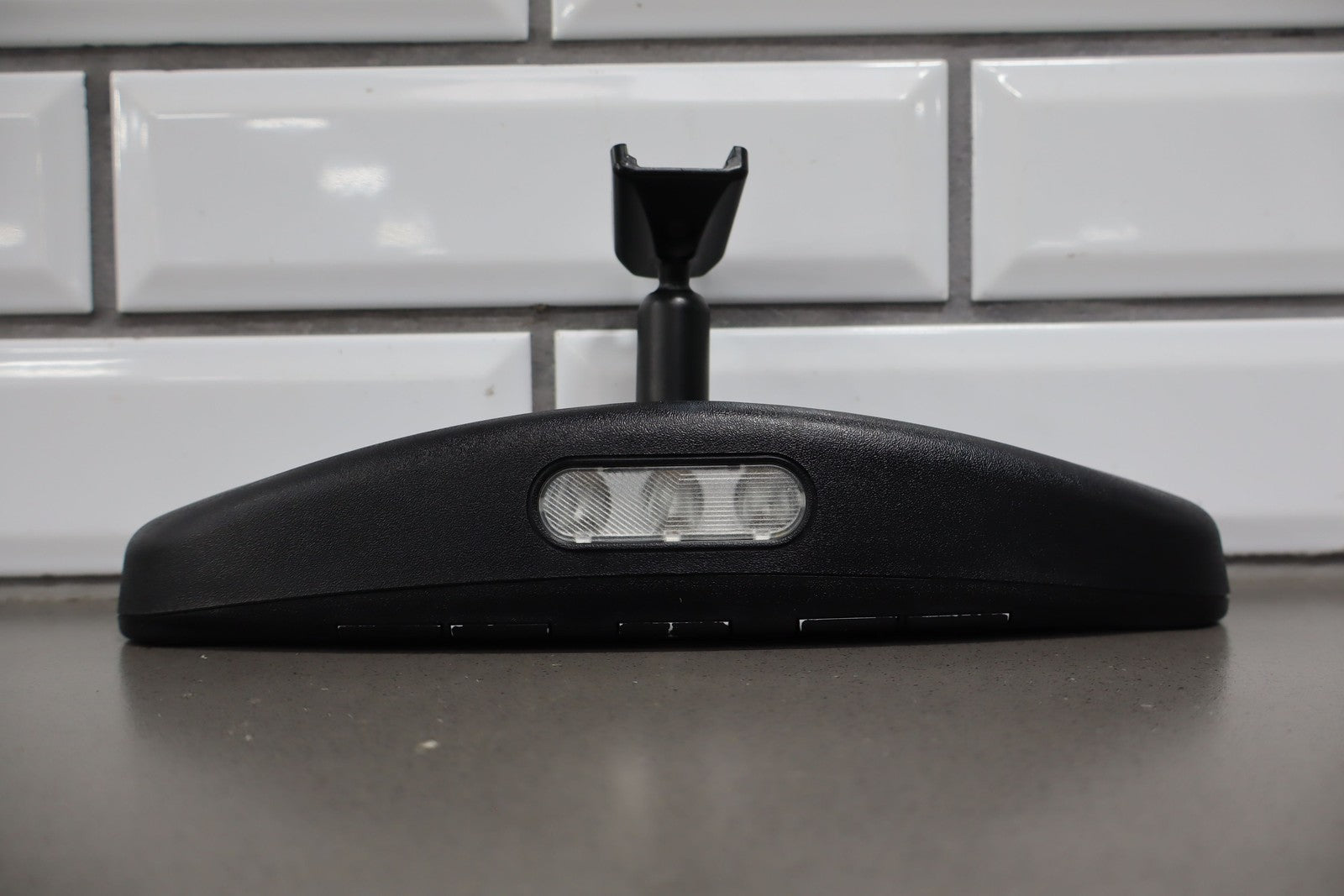 Automatic Dimming Mirror, Black Textured Plastic Frame, Clean Glass, Worn Lettering, Functions Properly