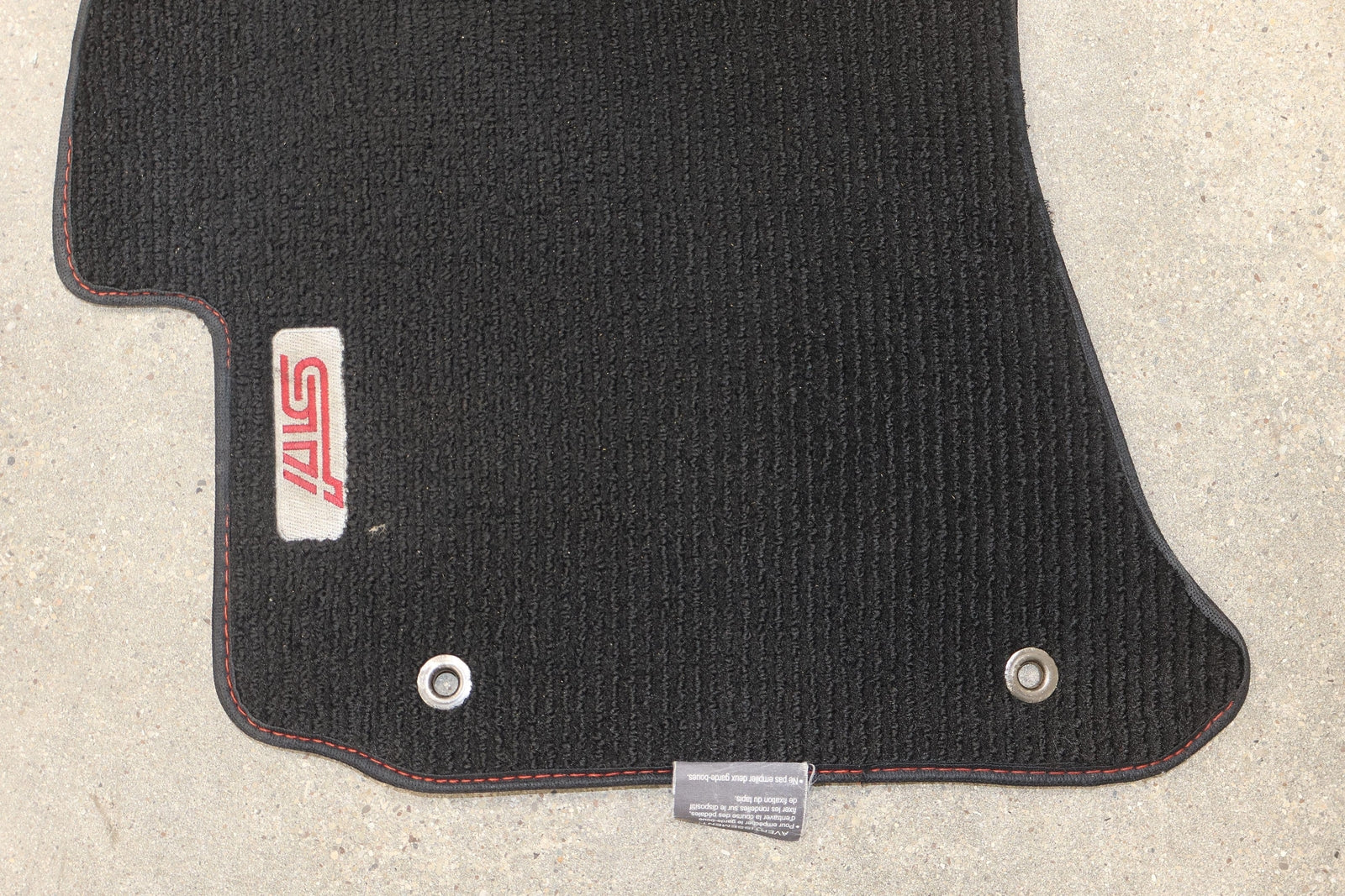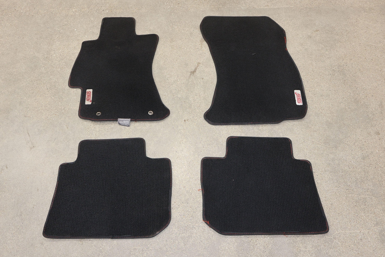 Lh-rh/front-rear Set (4pc), Oem Sti Cloth Floor Mats, Black (ba30) W/red Stitch, Mild Wear, Light Staining