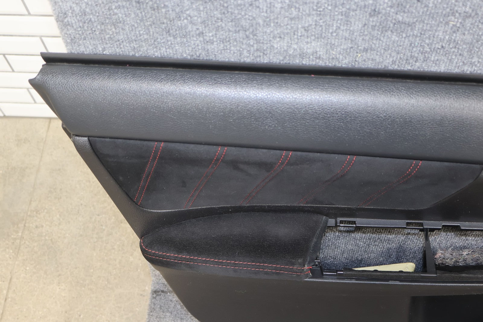 Lh Front, Black (ba30) W/red Stitch (sti), No Window Master Switch, Couple Light Scuffs/scratches, Mounted Solid