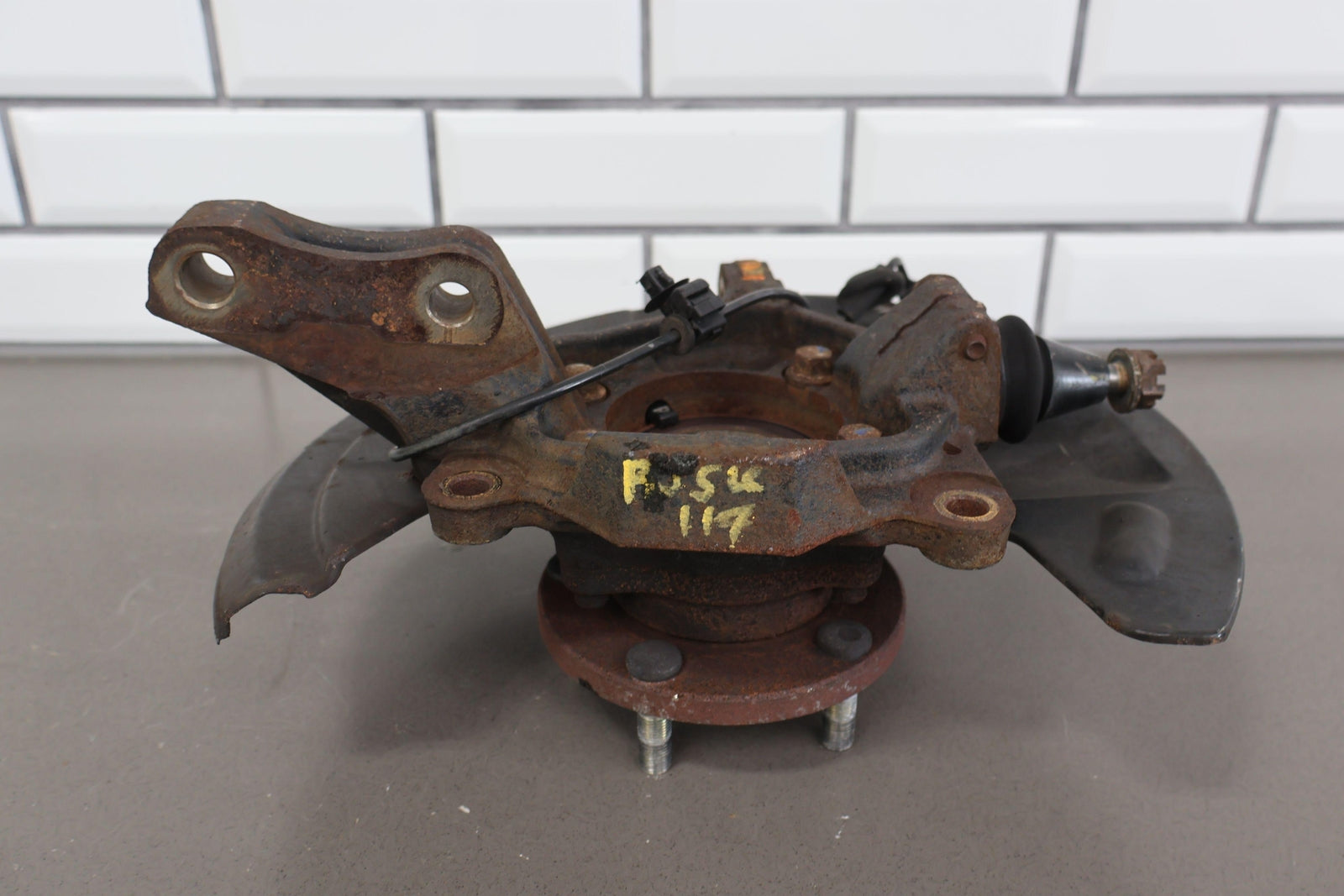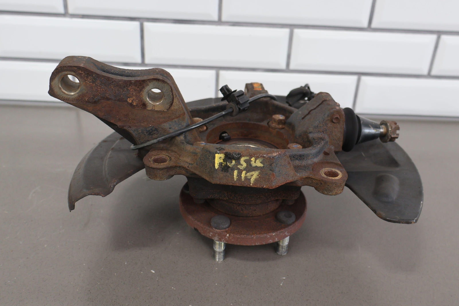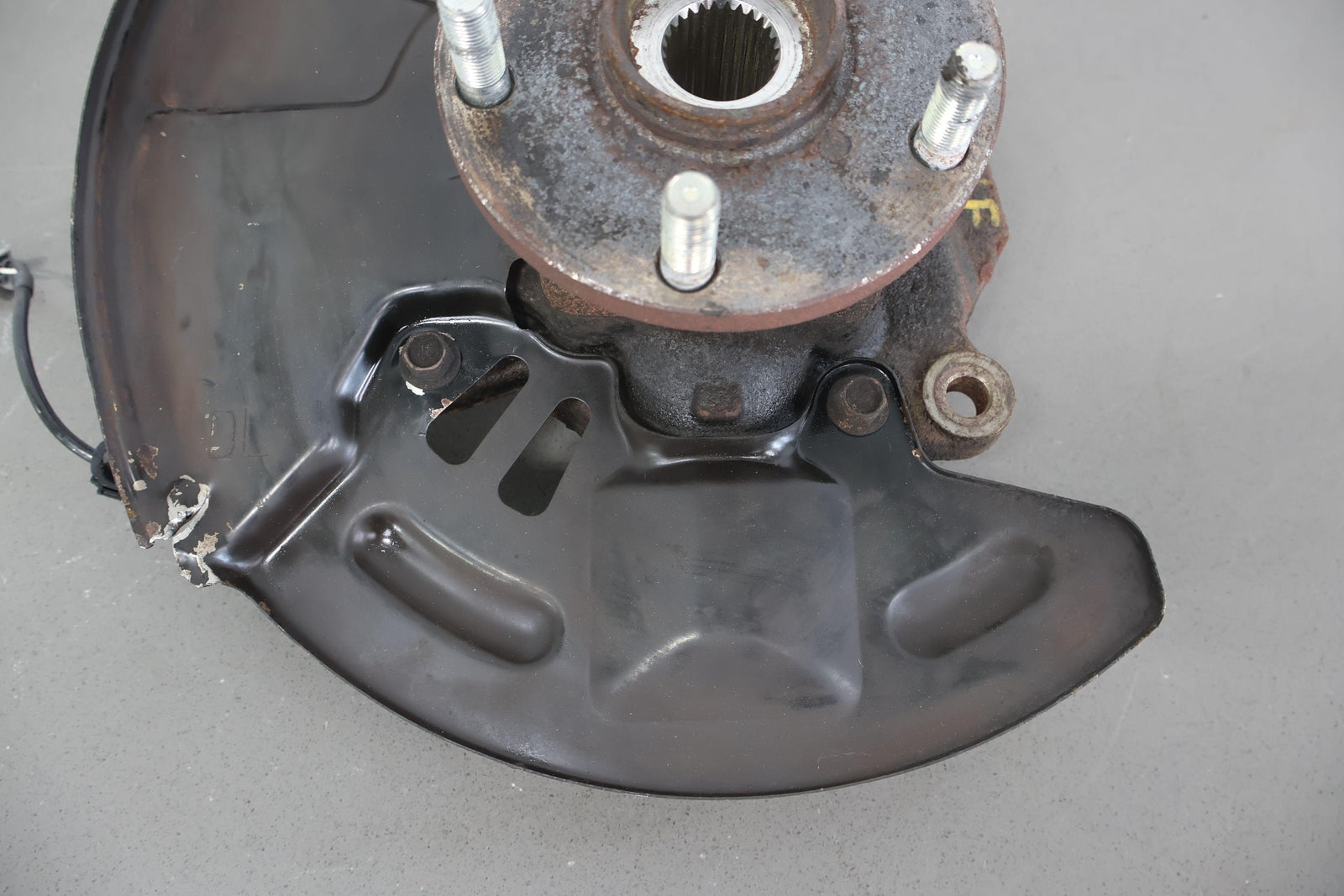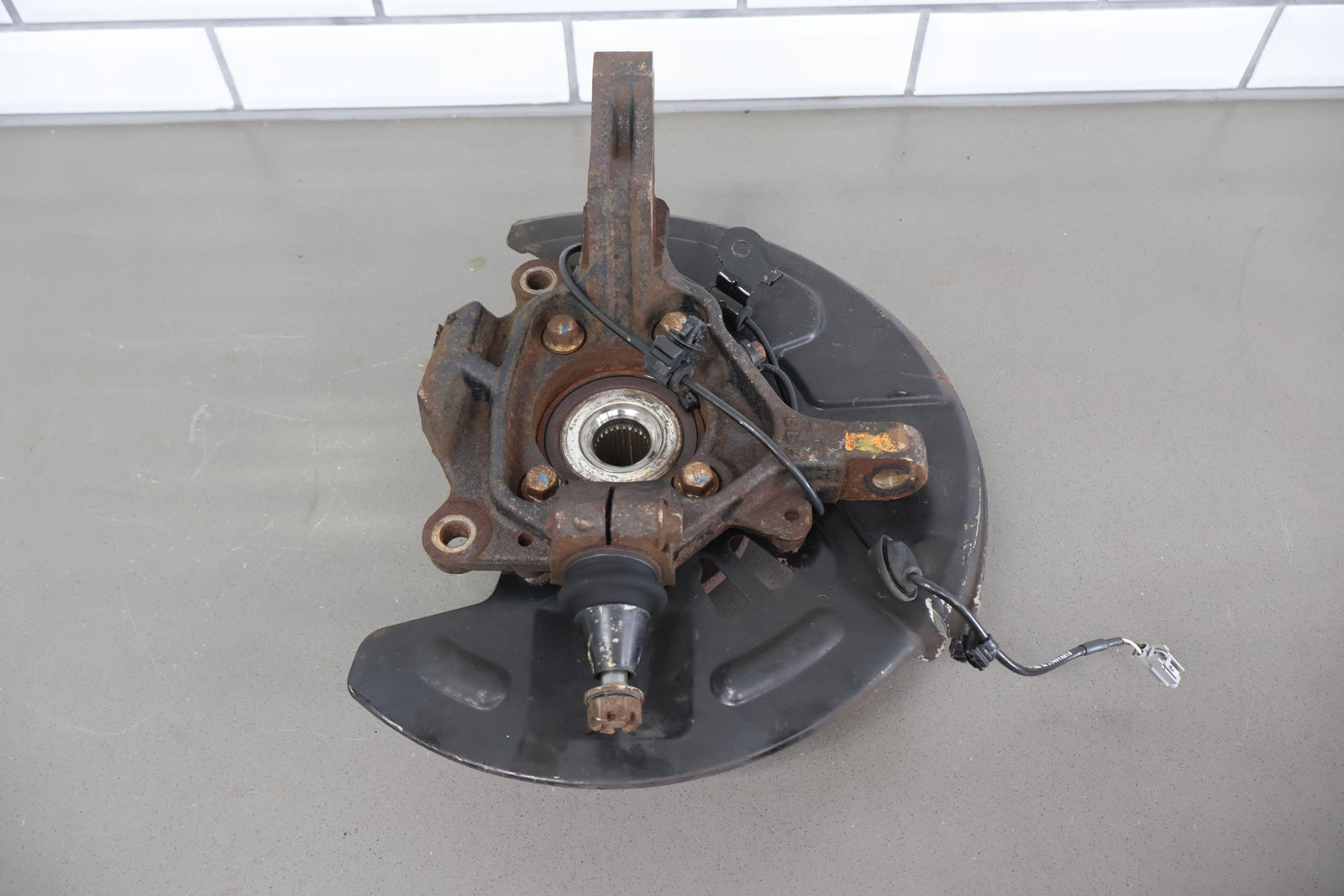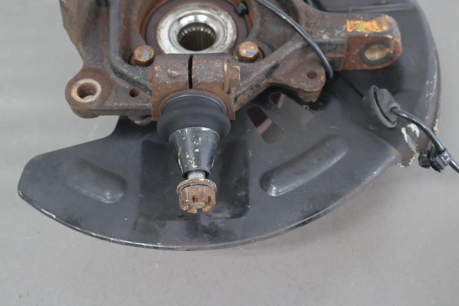 Important notes: Lh Front Spindle (2.5l Sti), Includes Hub-lower Ball Joint-dust Shield (some Damage), Mounted Solid