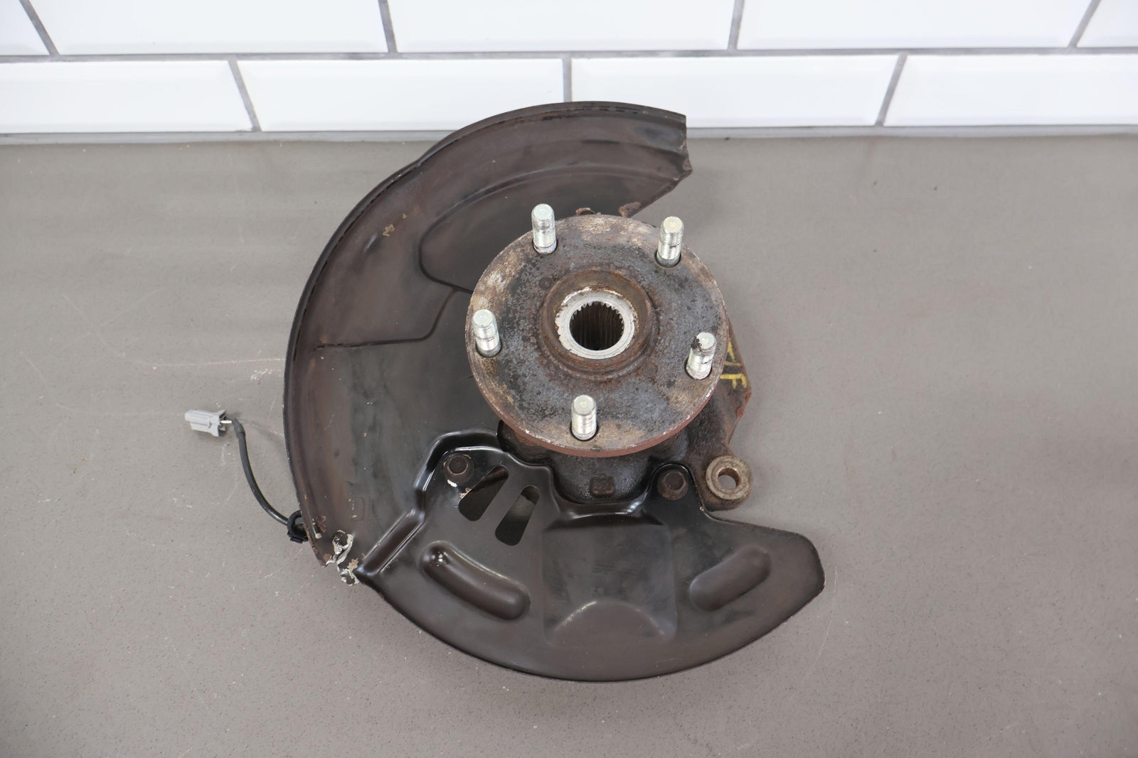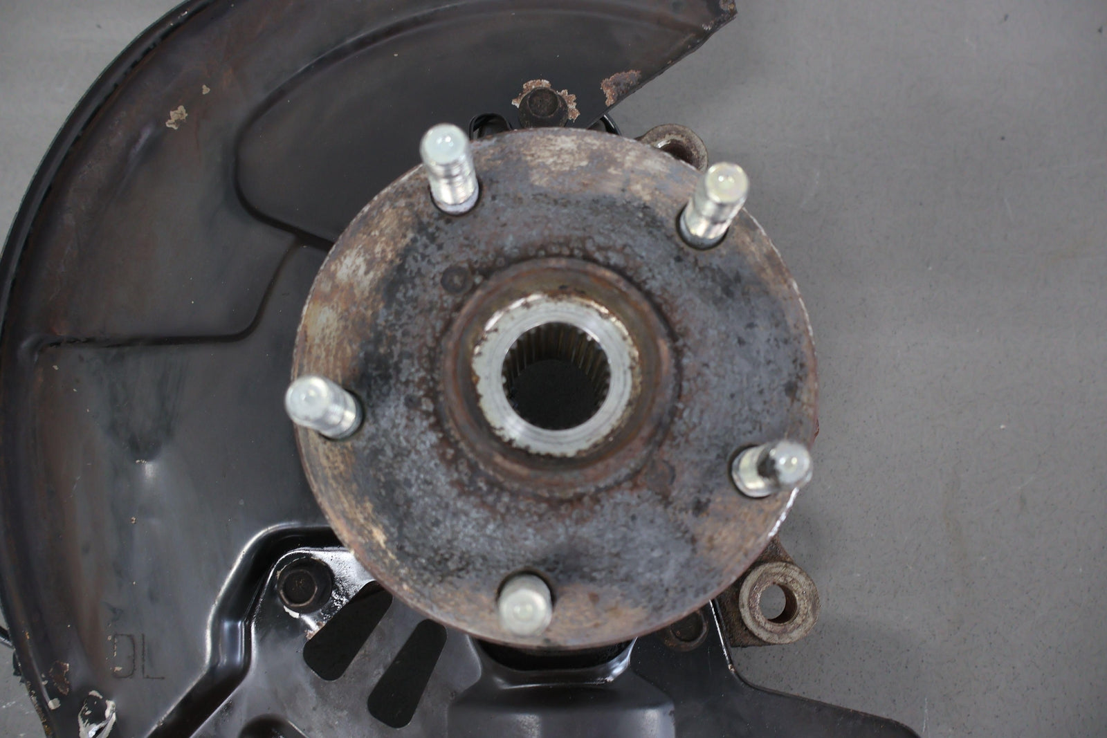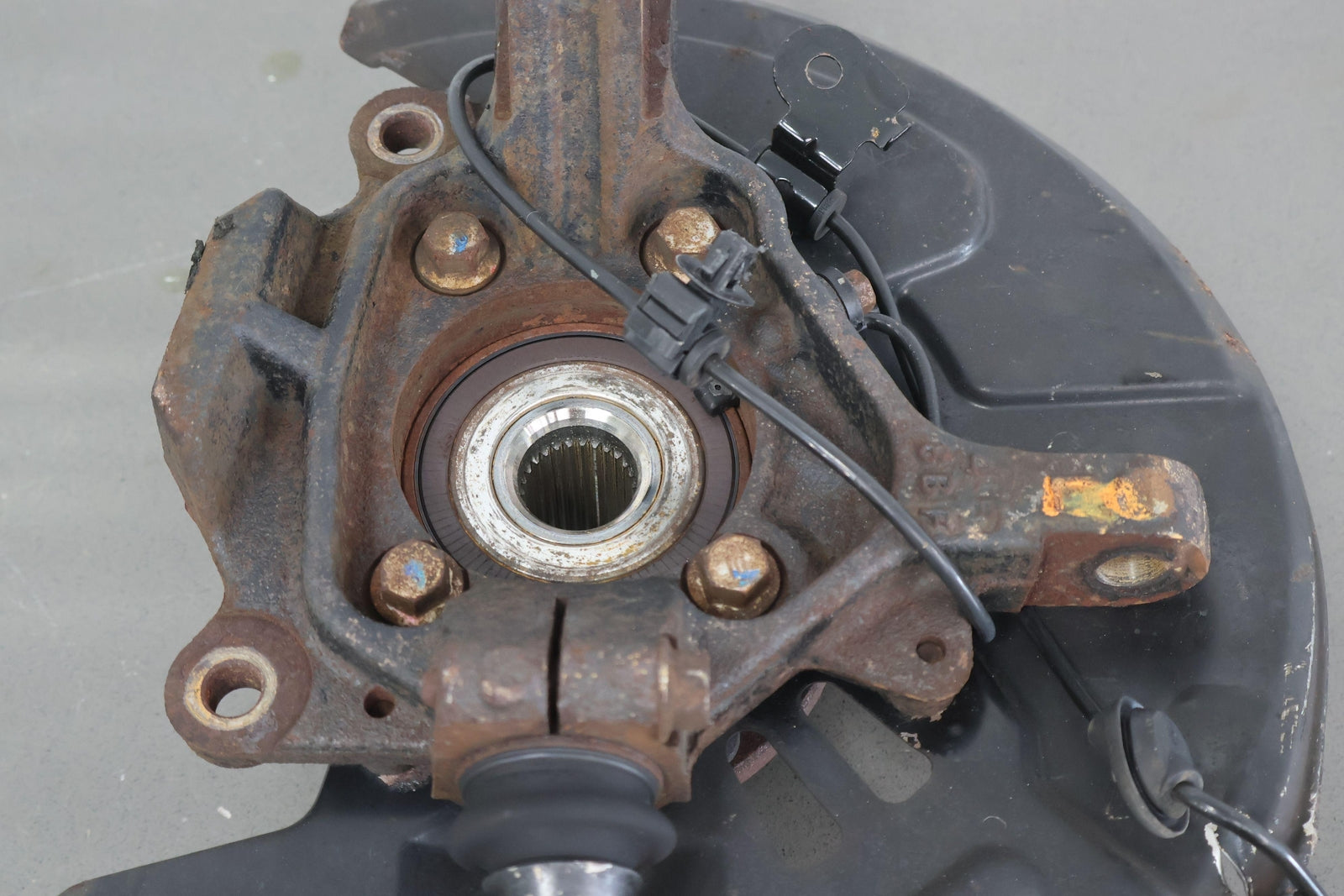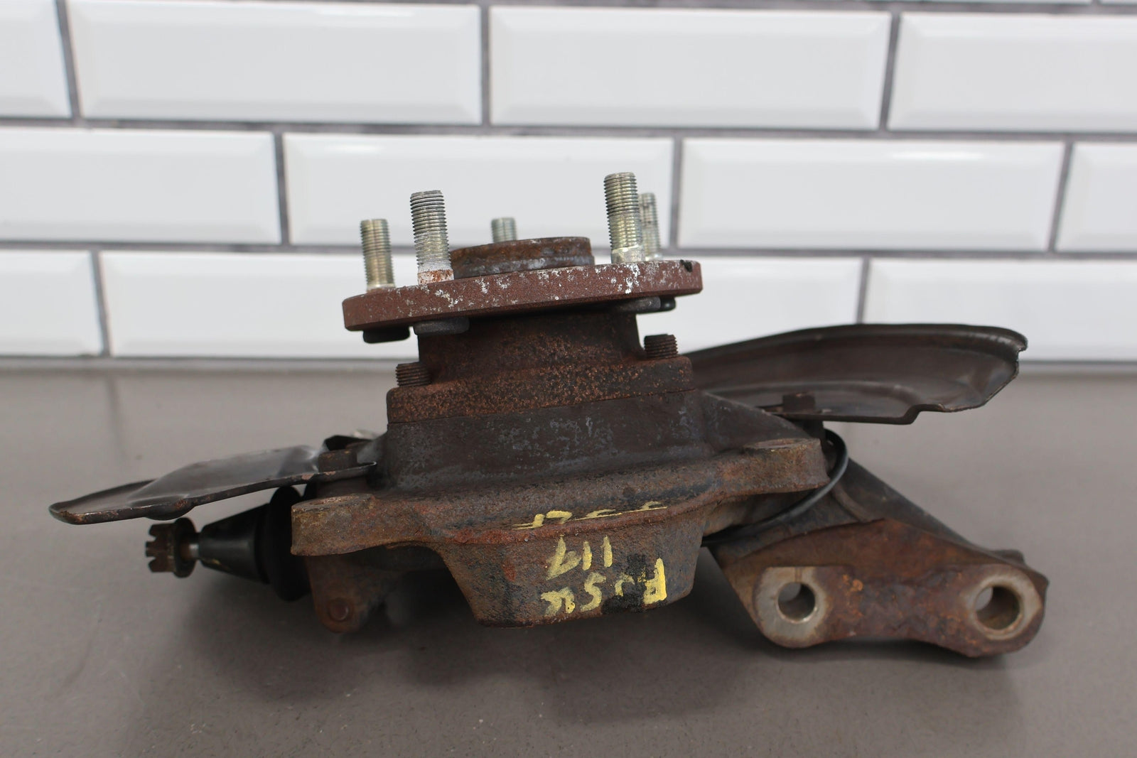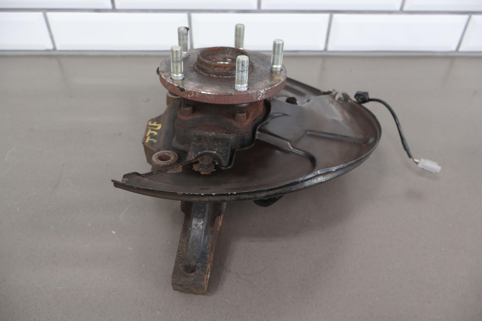 Important notes: Lh Front Spindle (2.5l Sti), Includes Hub-lower Ball Joint-dust Shield (some Damage), Mounted Solid