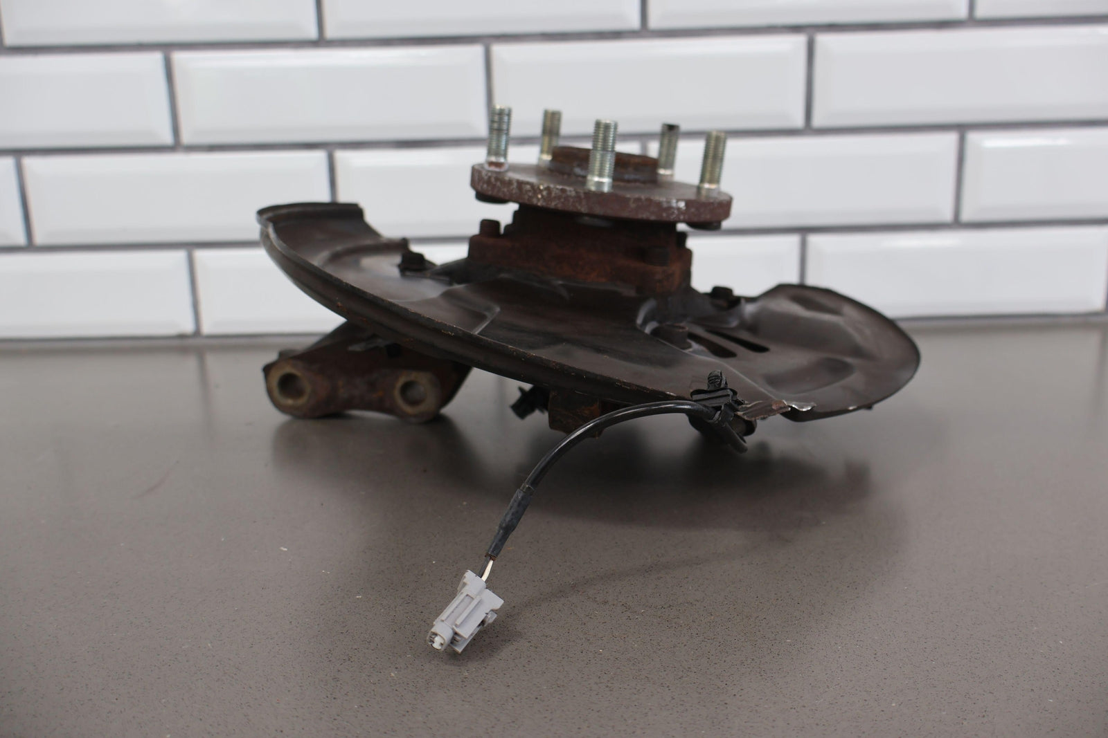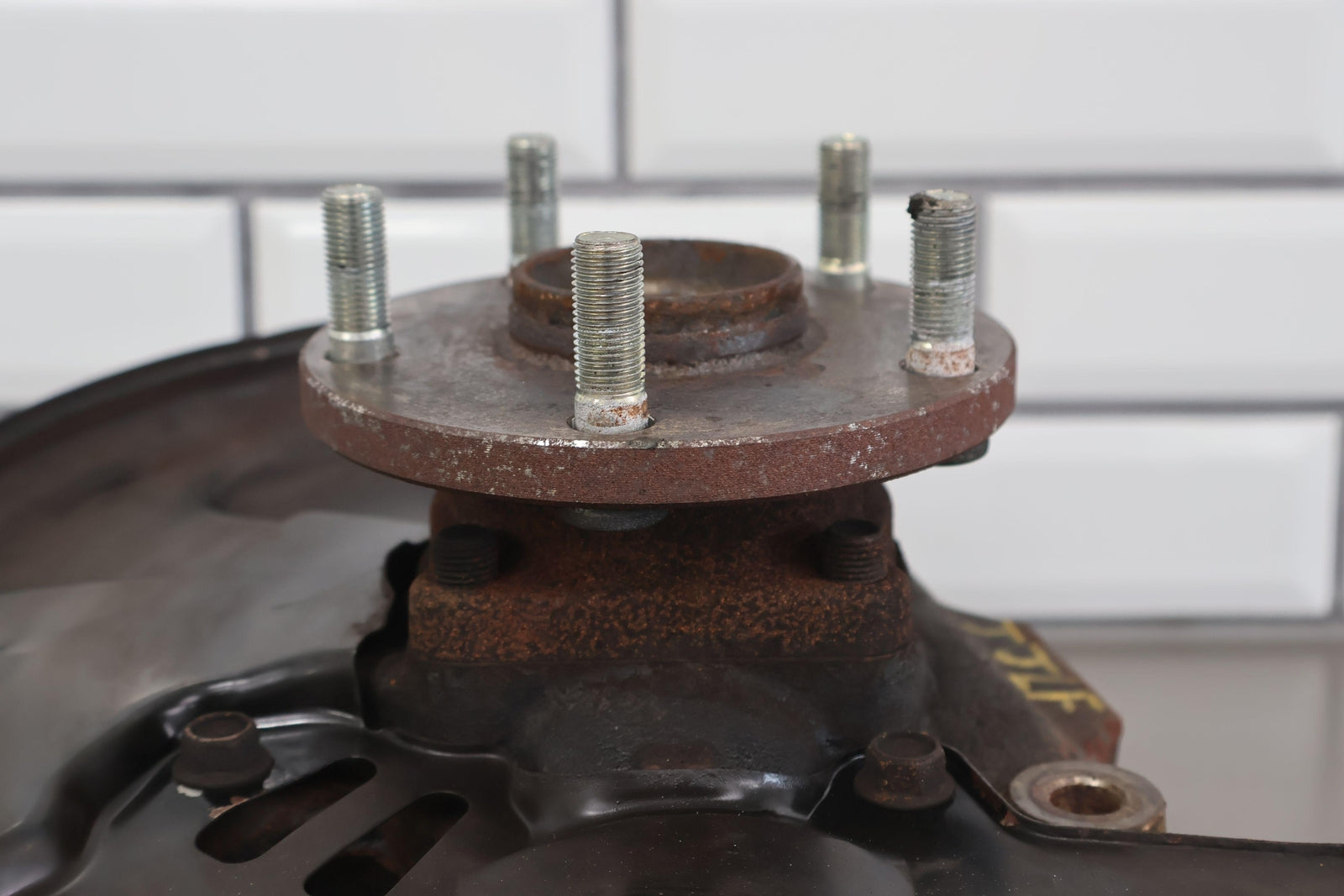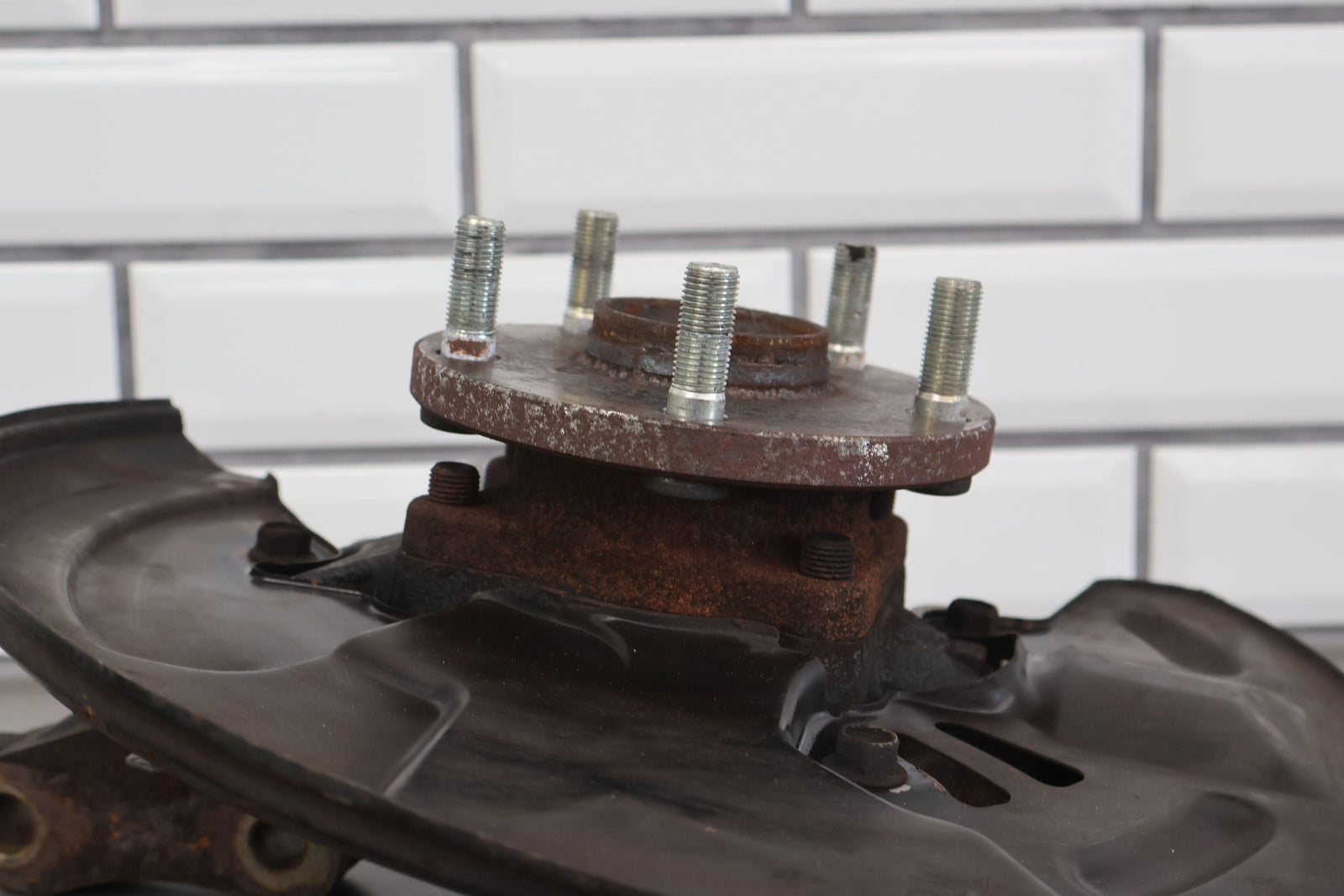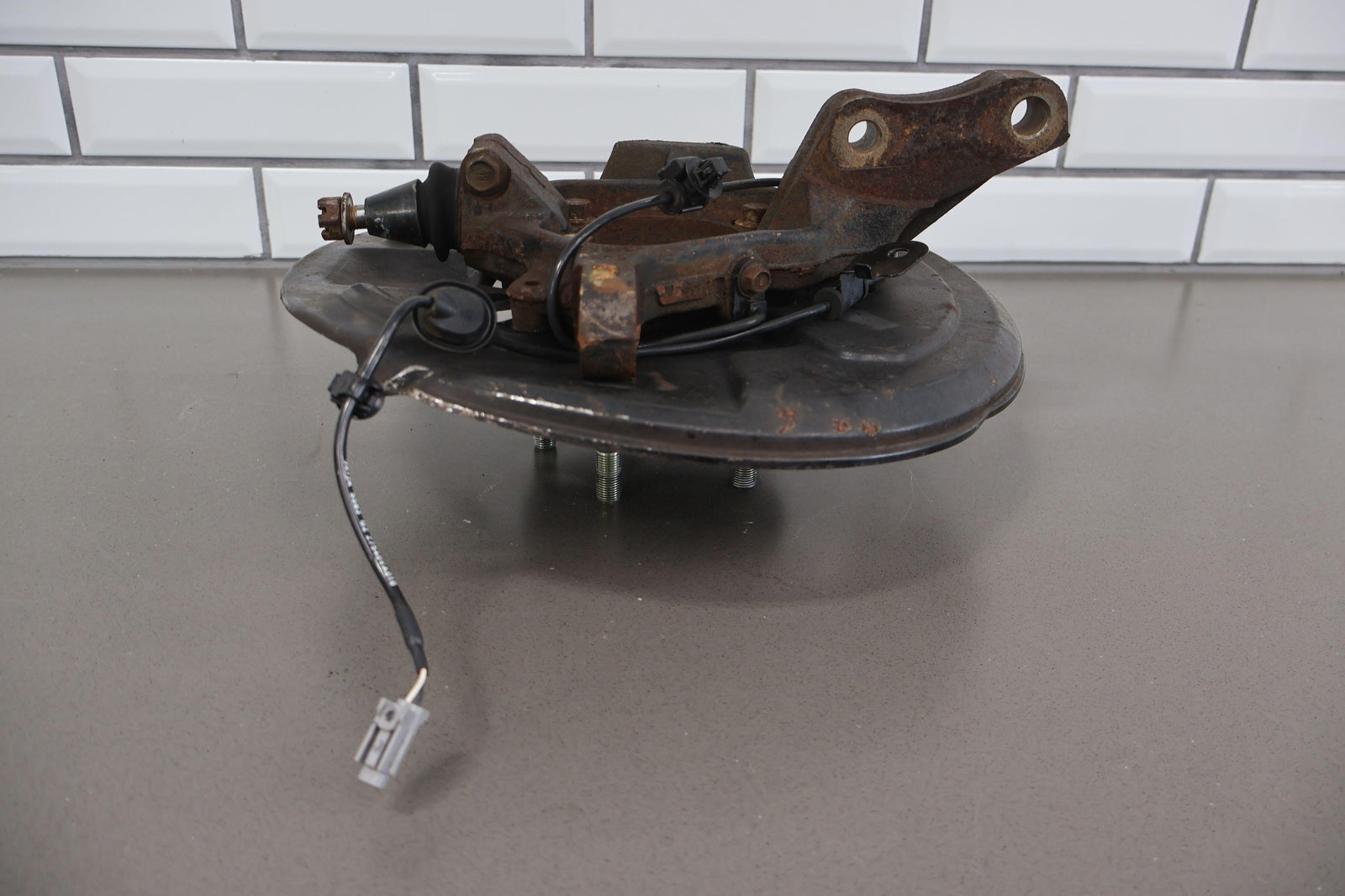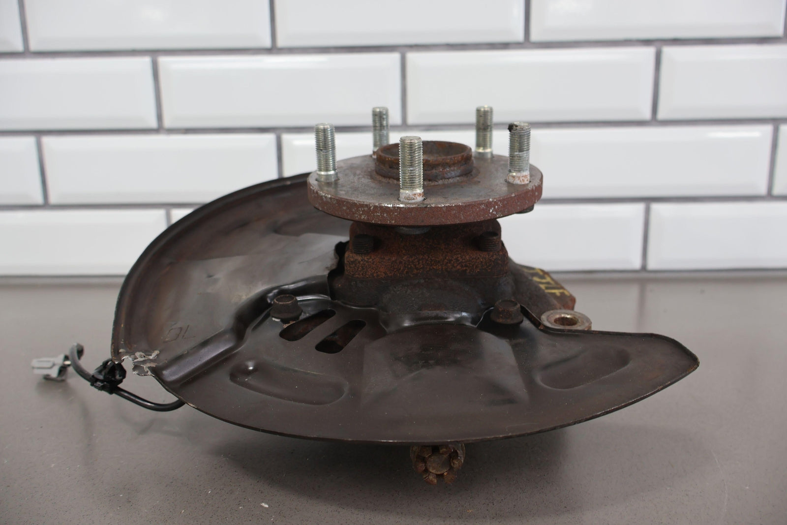 Important notes: Lh Front Spindle (2.5l Sti), Includes Hub-lower Ball Joint-dust Shield (some Damage), Mounted Solid