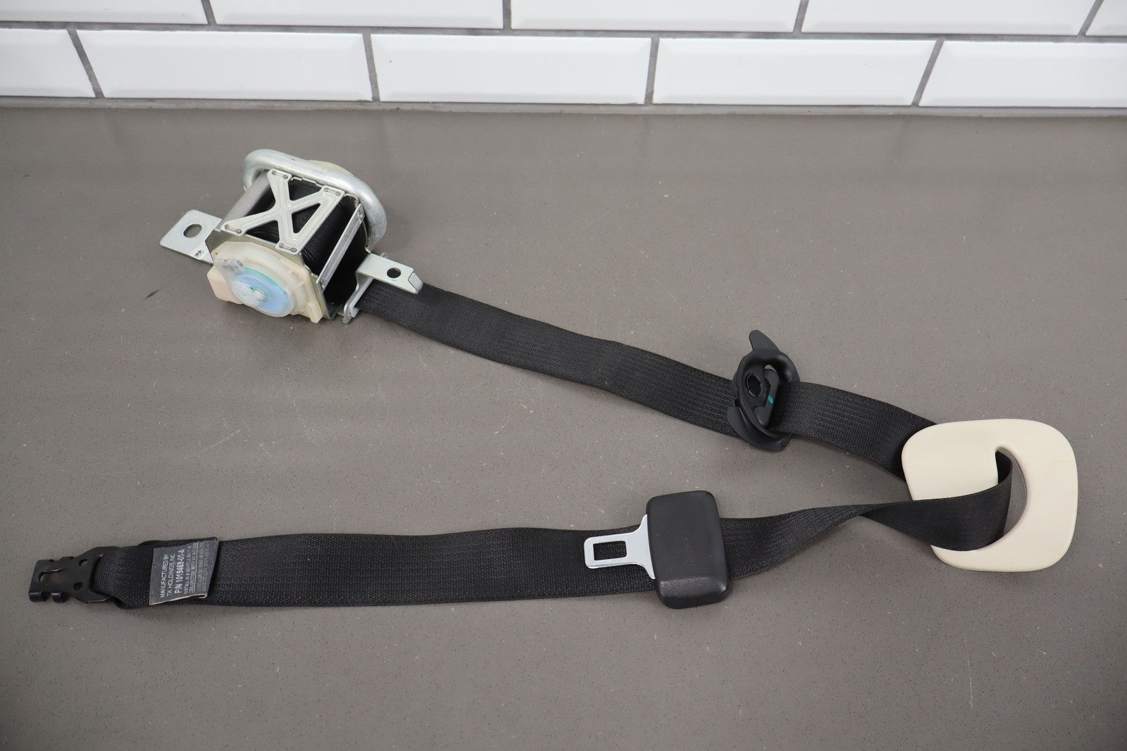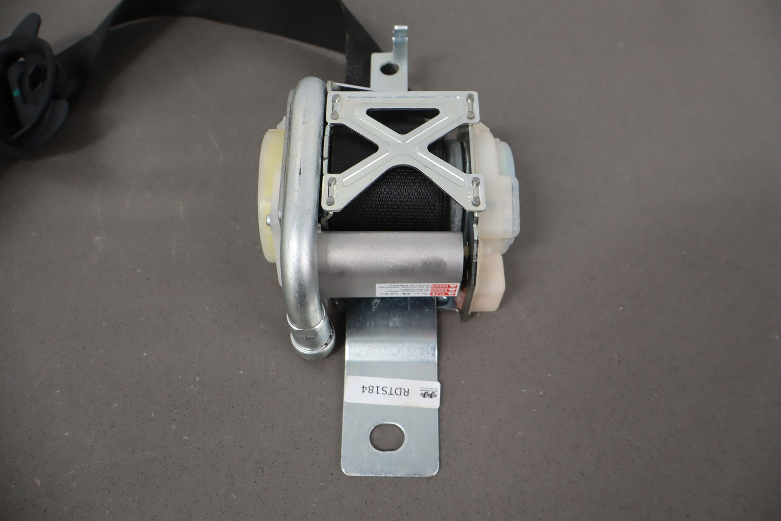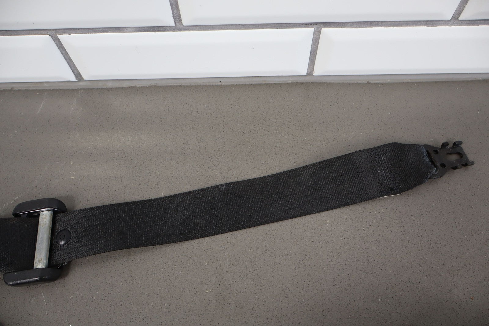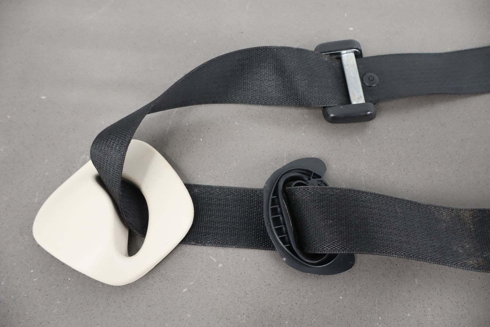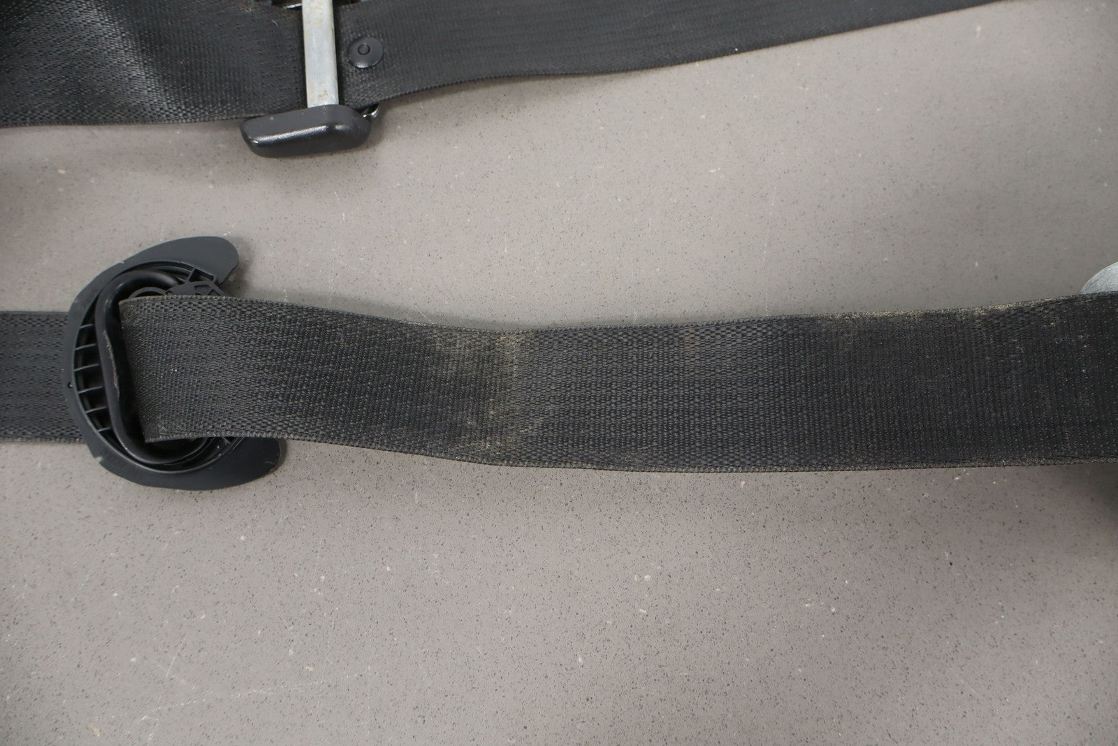 Rh Front Retractor, Black, Mild Wear, Light Staining, Retracts Properly