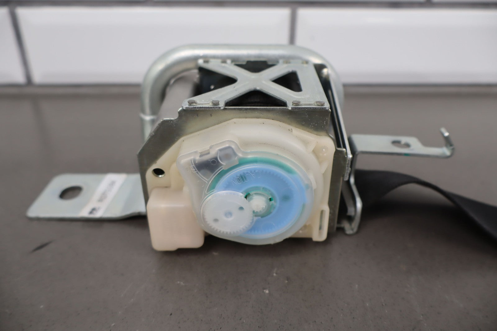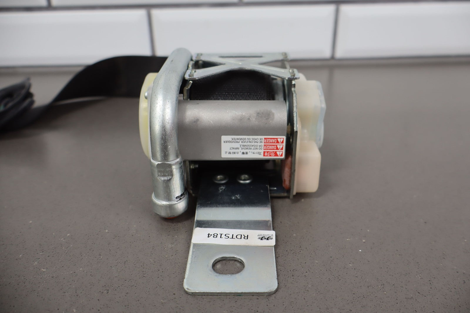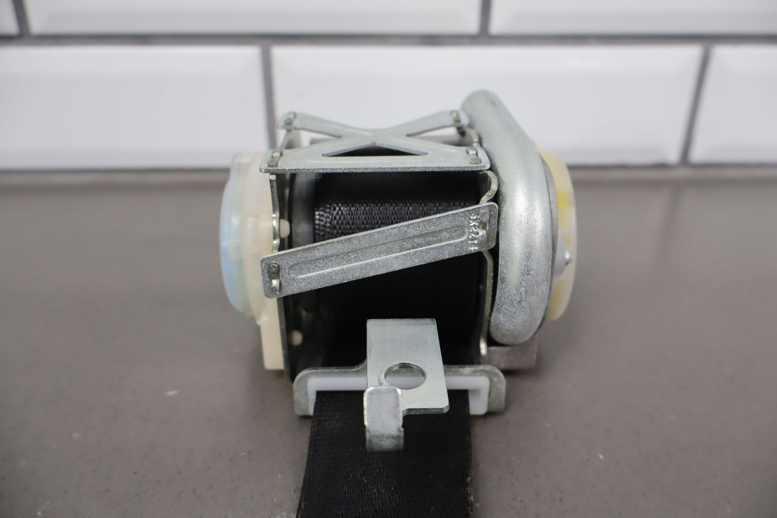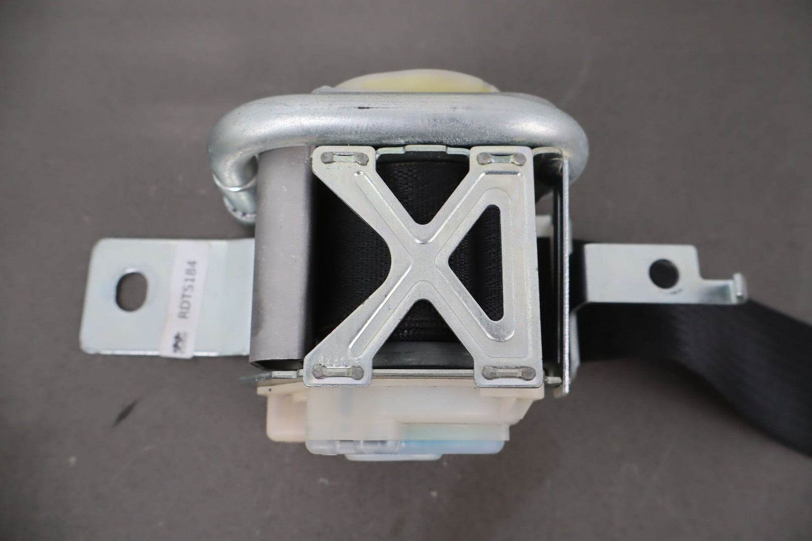 Rh Front Retractor, Black, Mild Wear, Light Staining, Retracts Properly