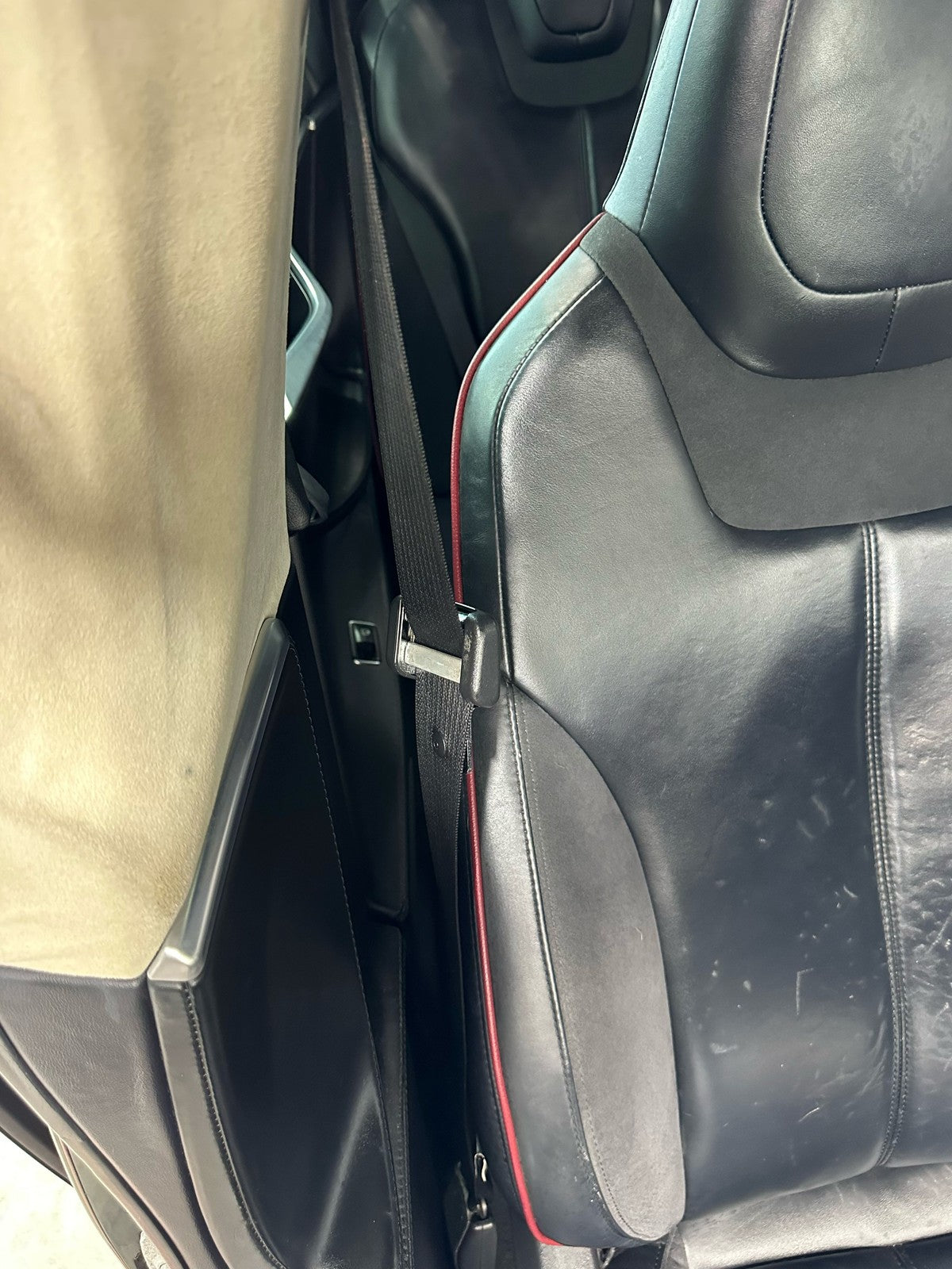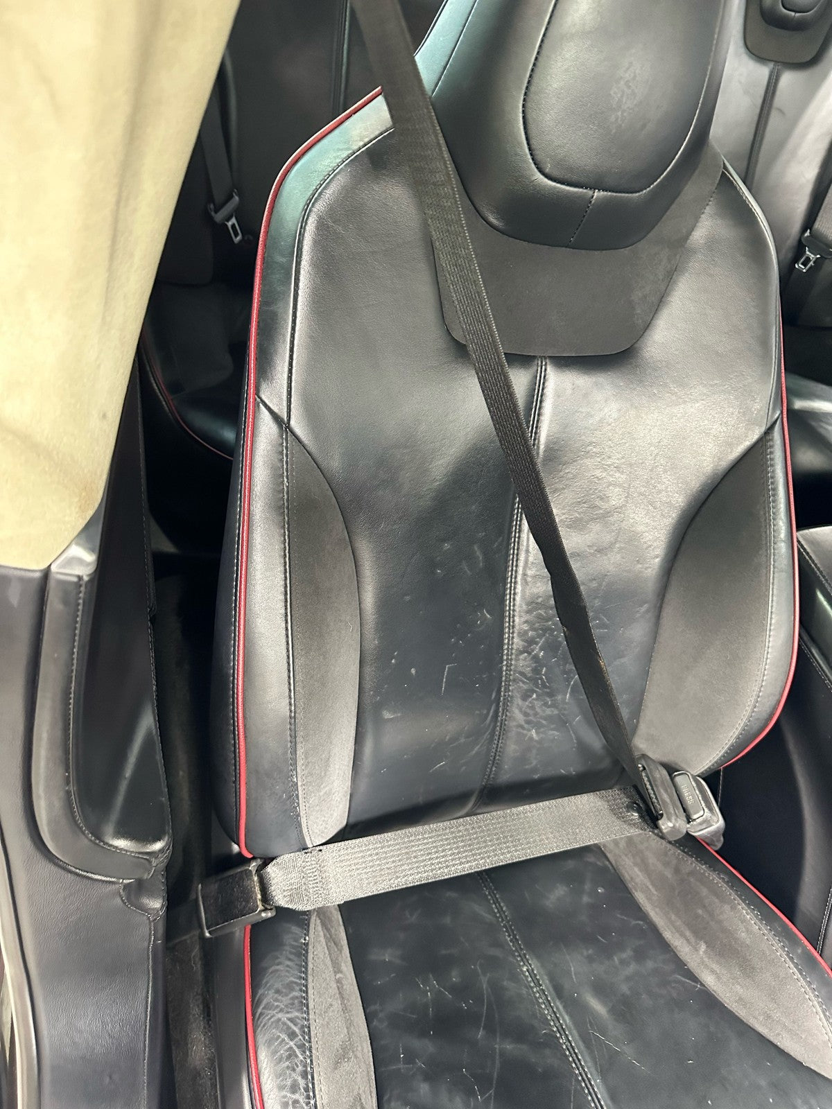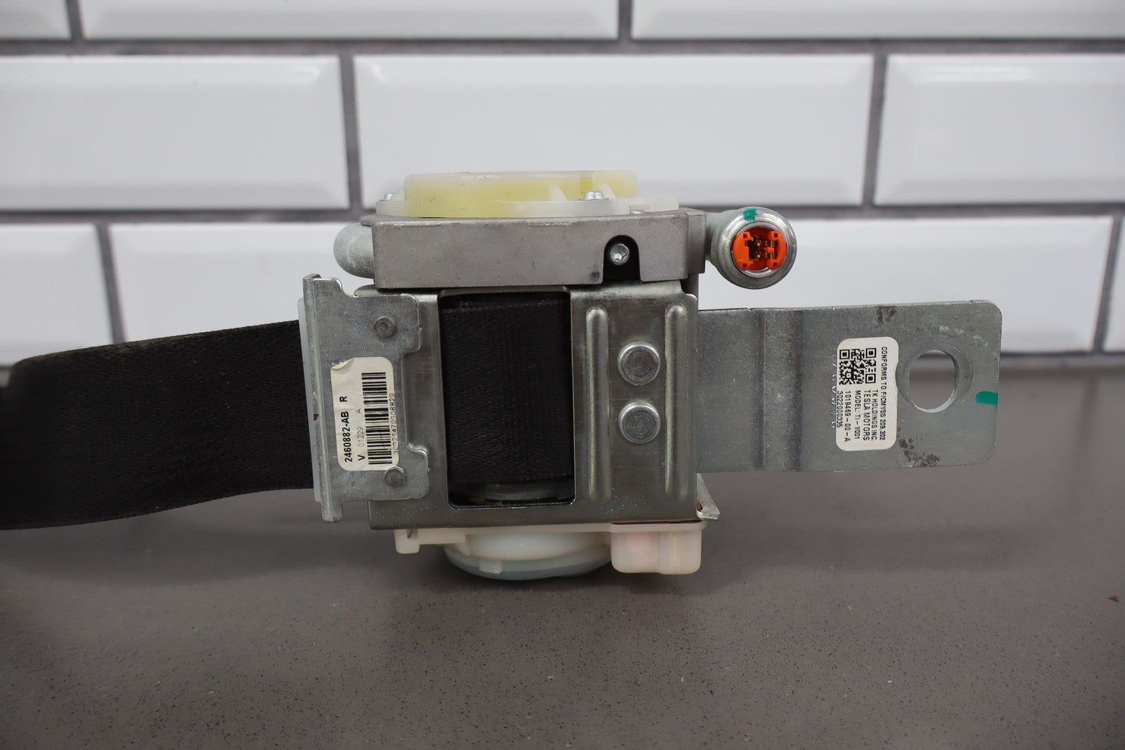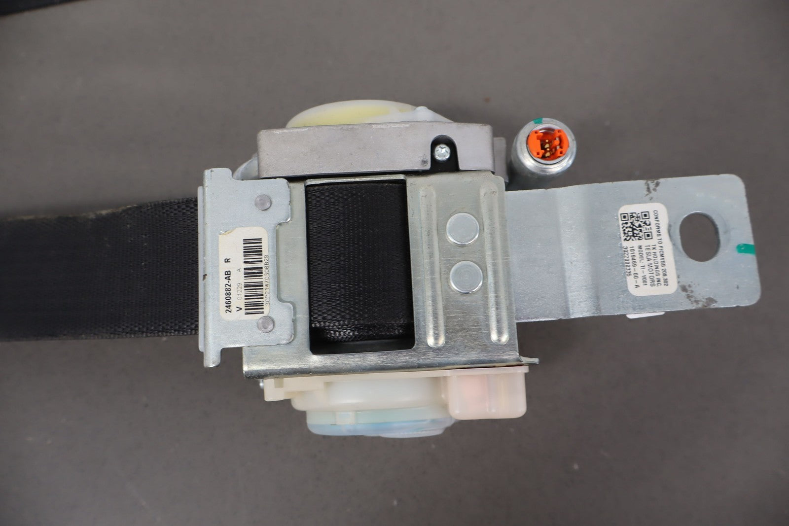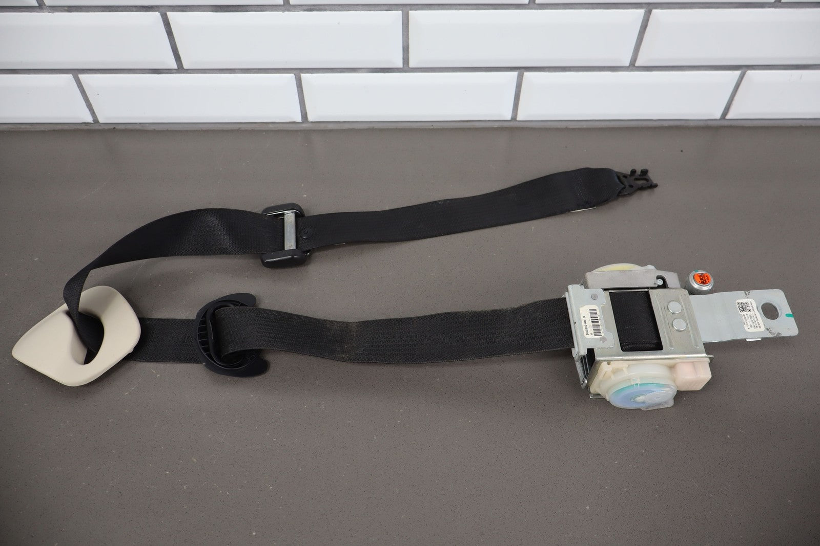 Rh Front Retractor, Black, Mild Wear, Light Staining, Retracts Properly