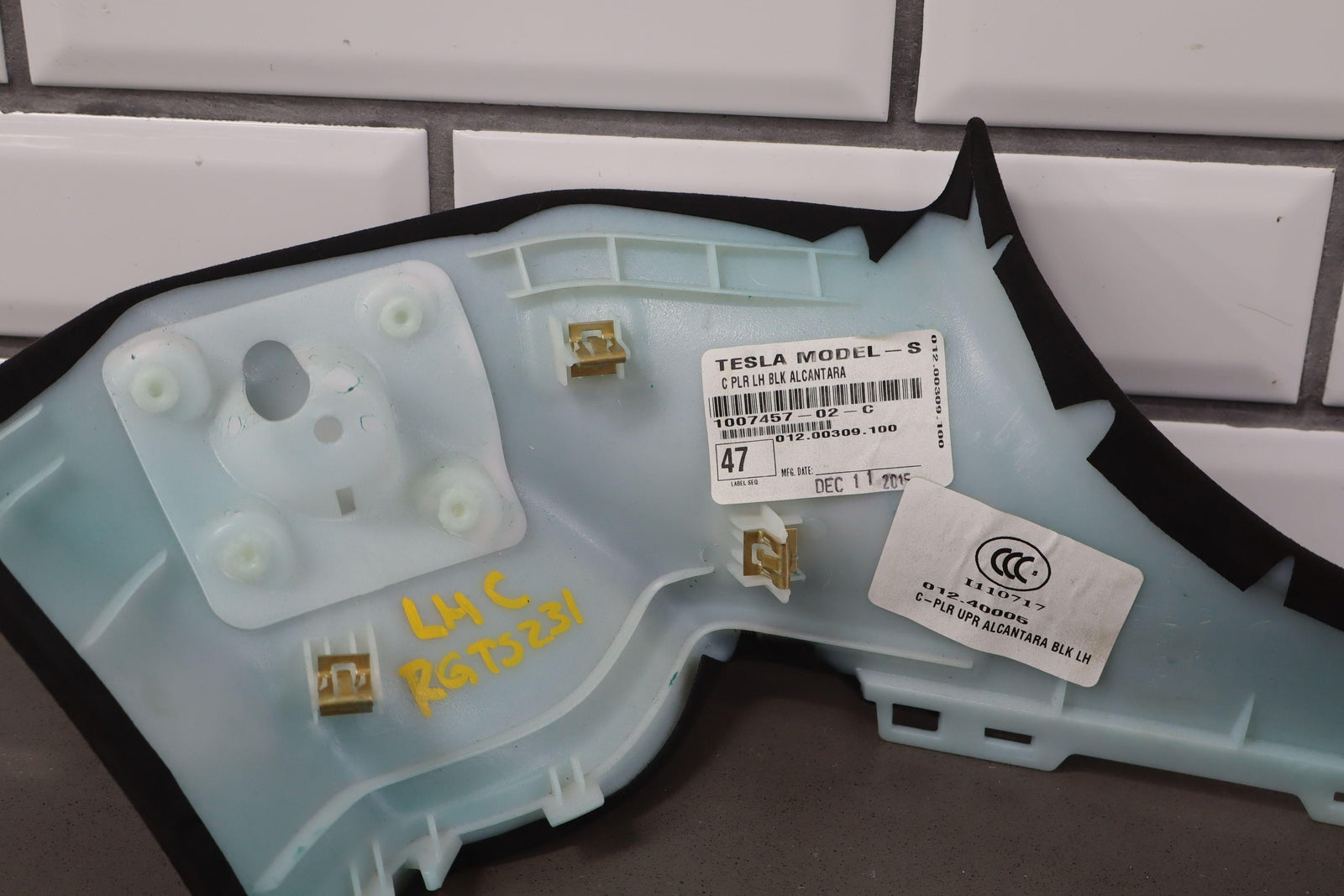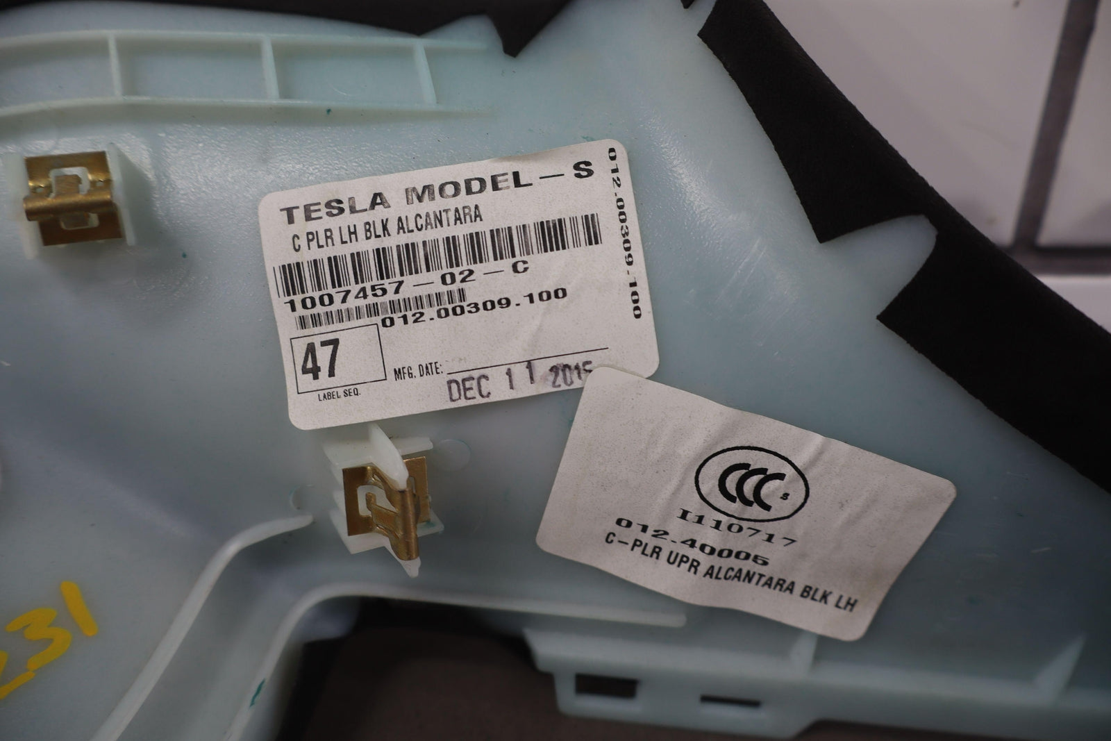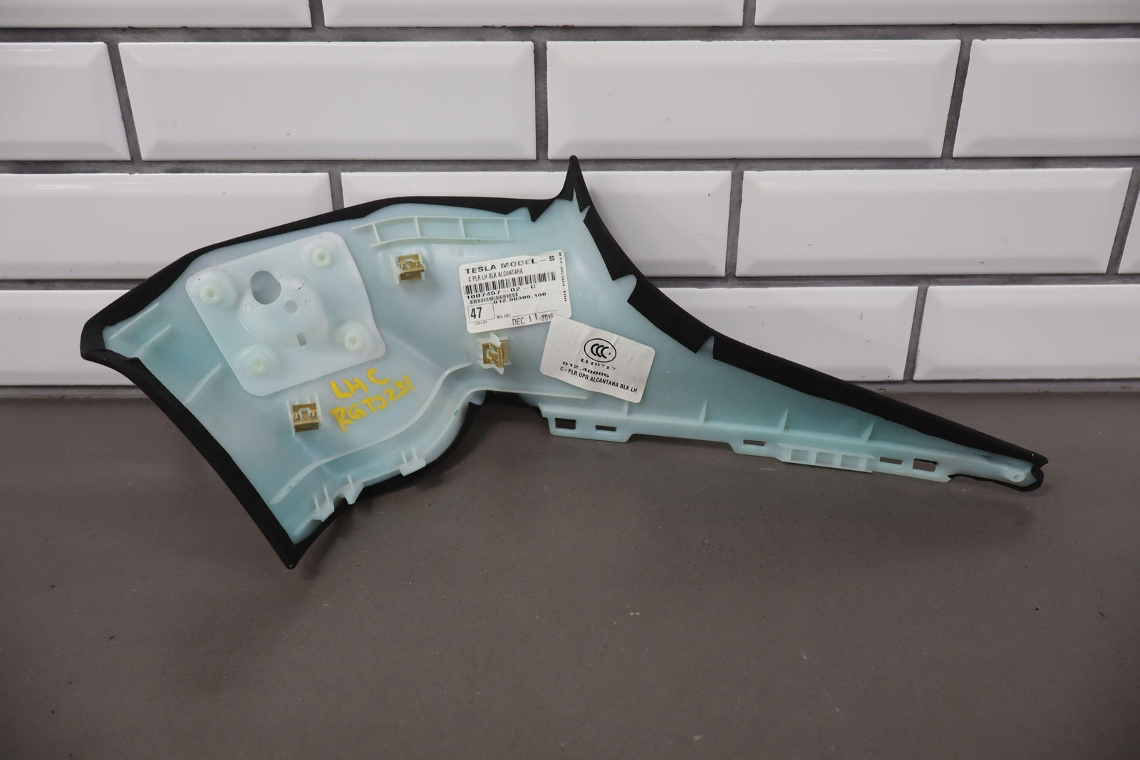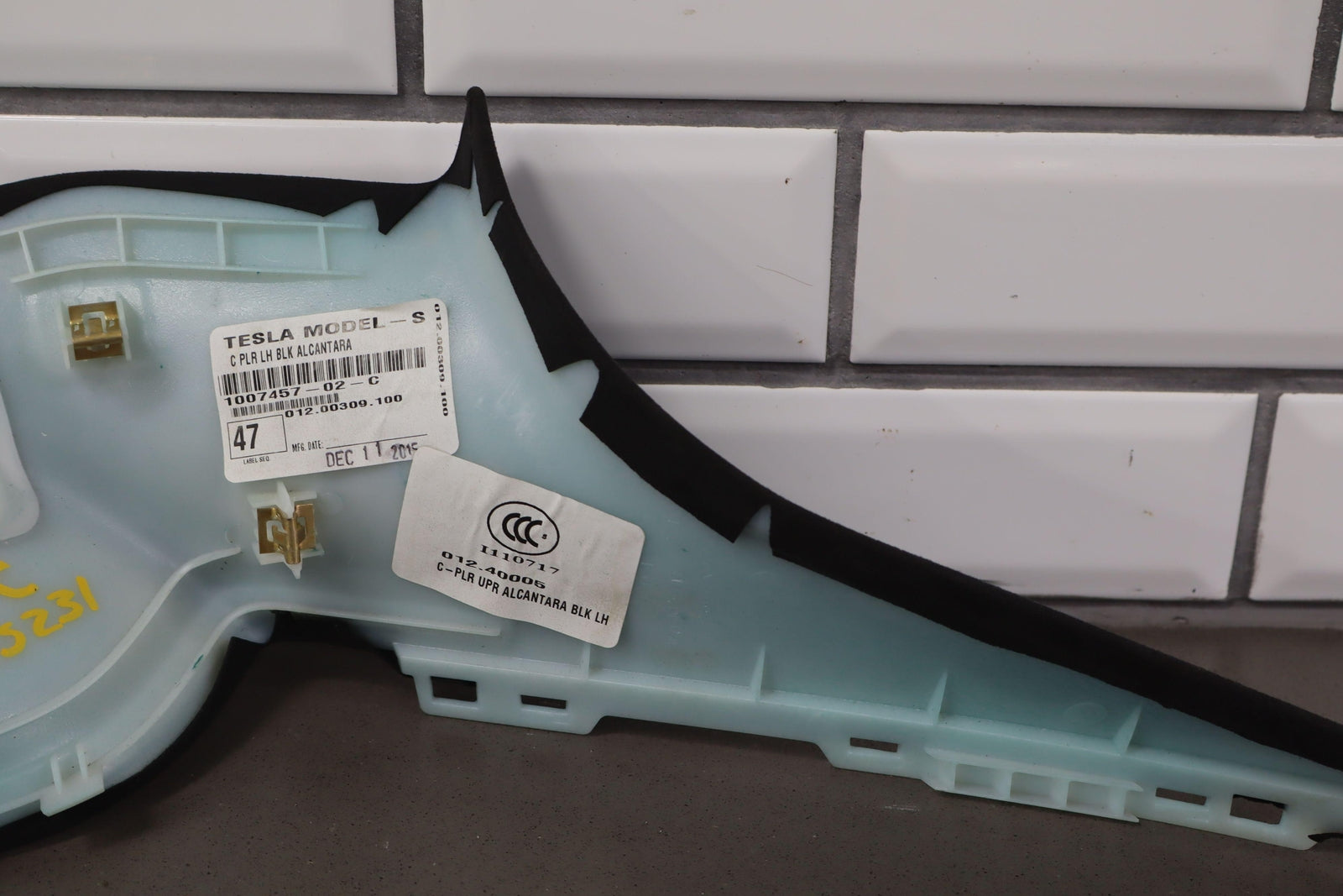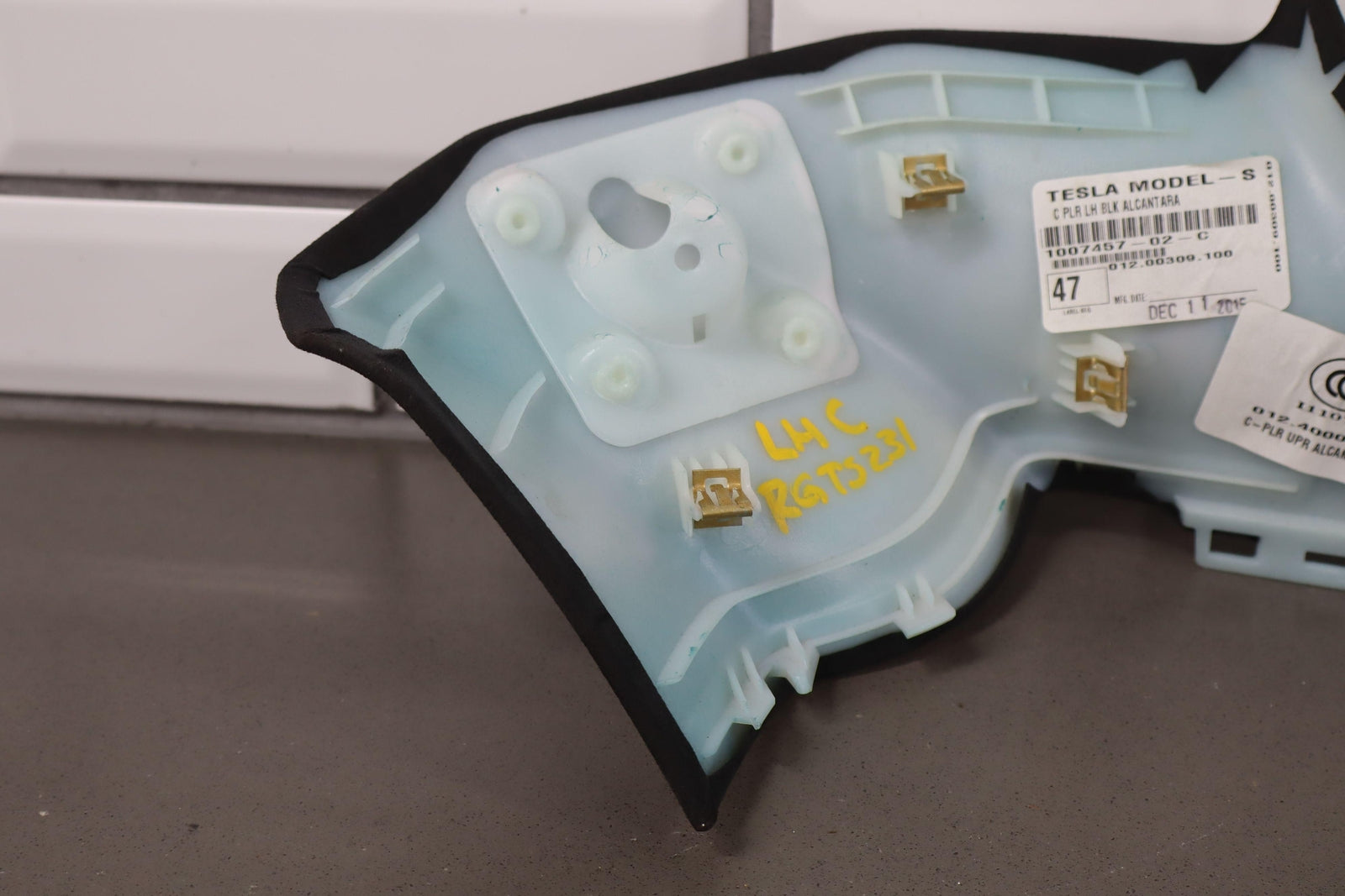 2012-2020 Tesla Model S Driver Left Upper Interior C Pillar Trim (Black Suede)