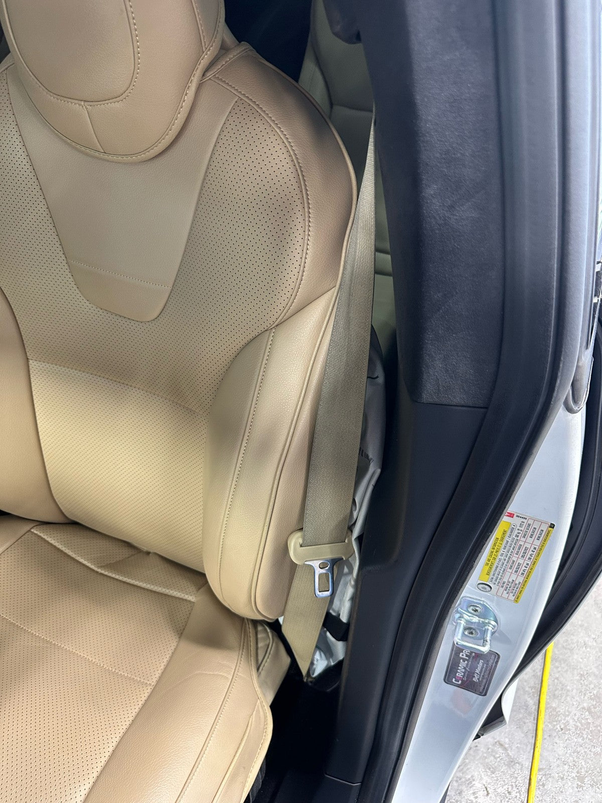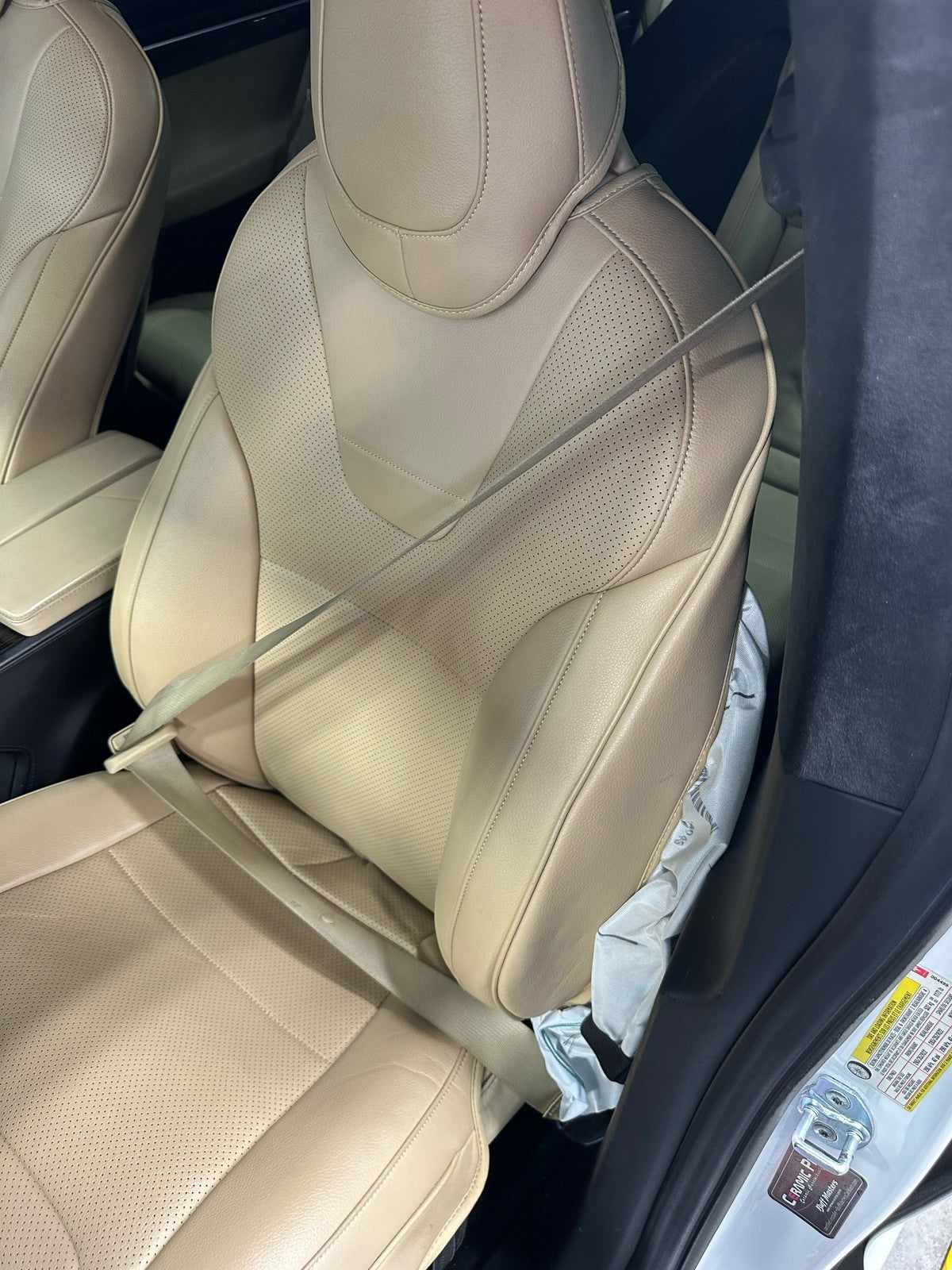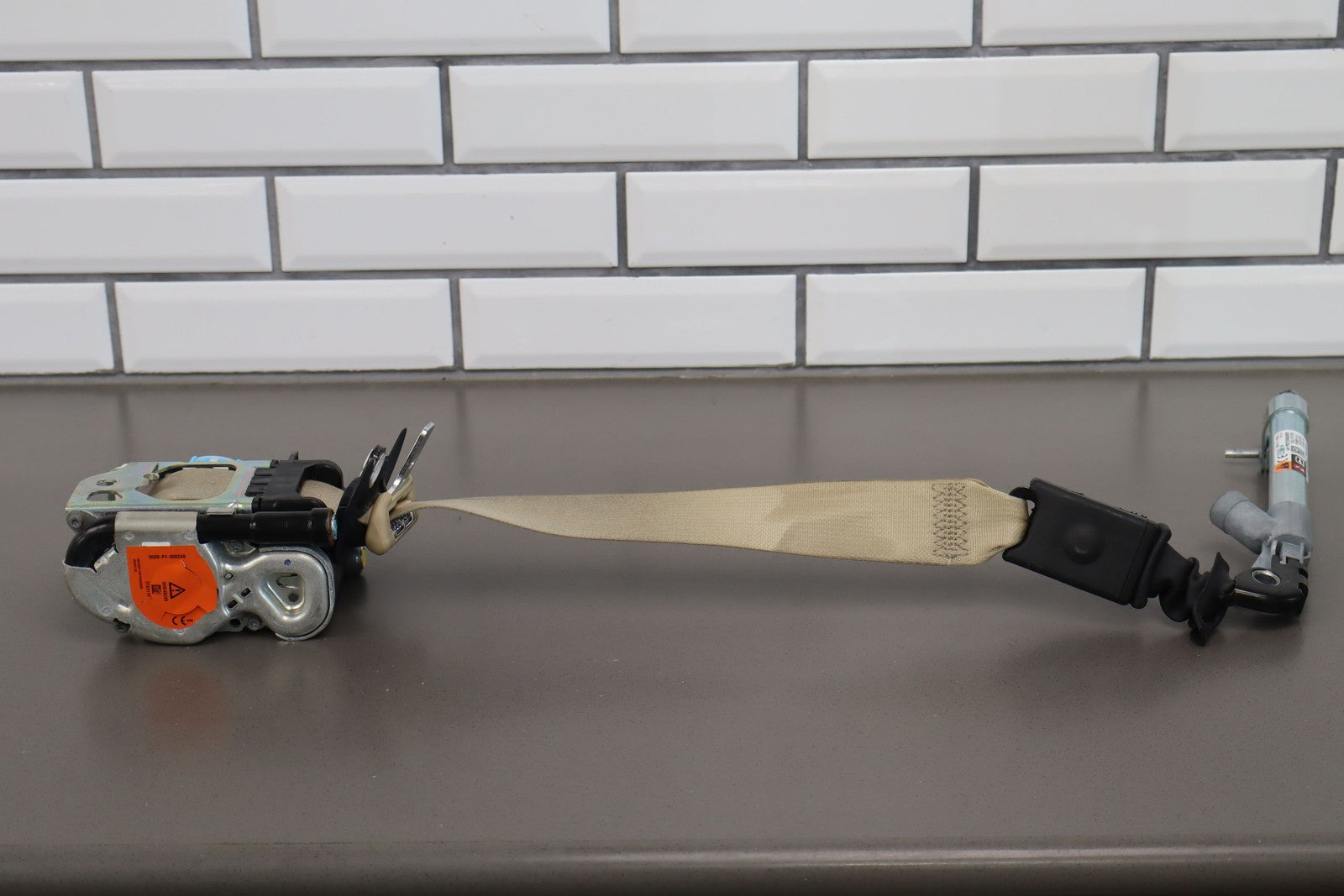 Lh Front Retractor, Tan (tan), Mild Signs Of Wear, Decent Staining, Retracts Properly