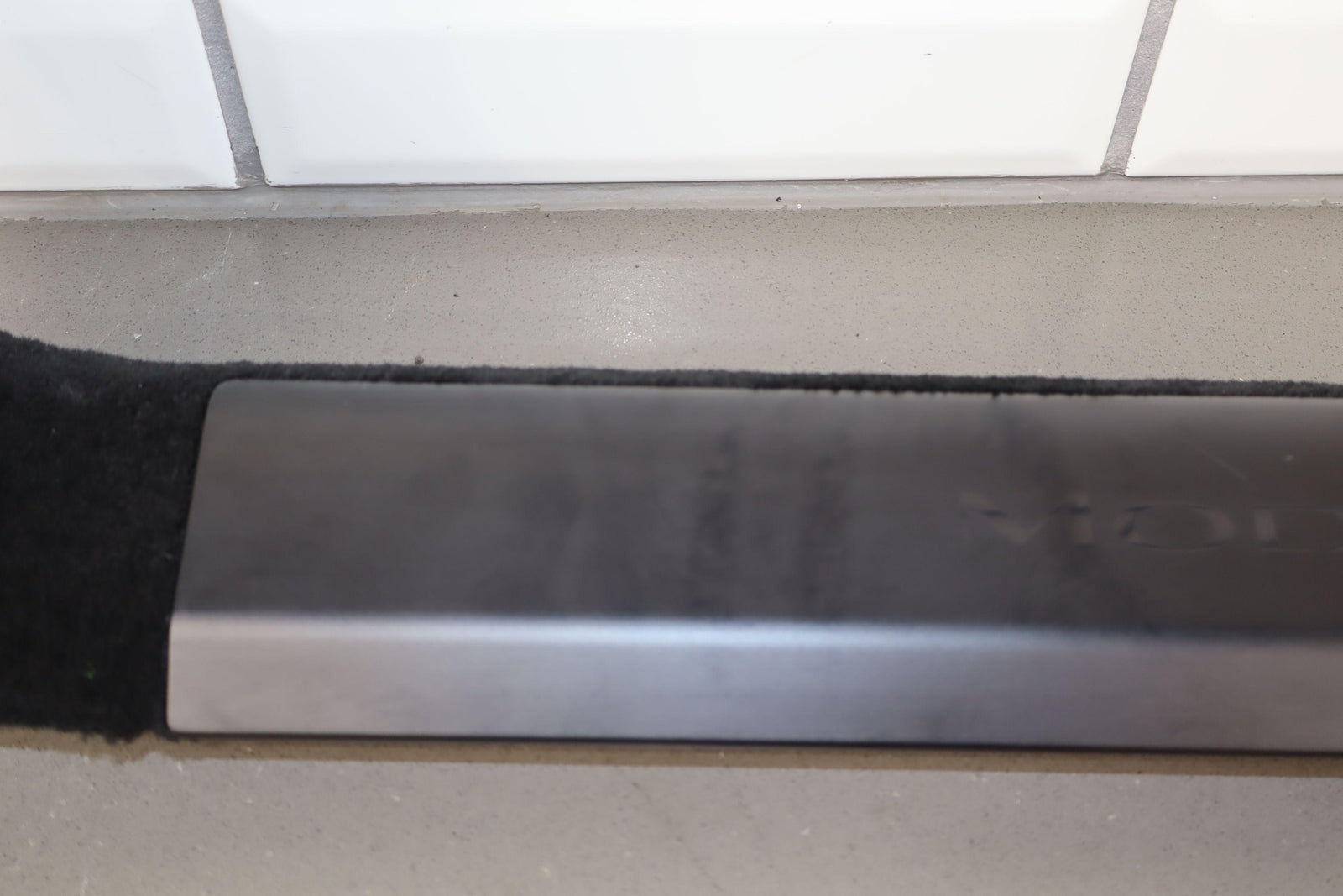 Lh Front Sill Plate, Black, Couple Scuffs To Metal Section, Mounted Solid