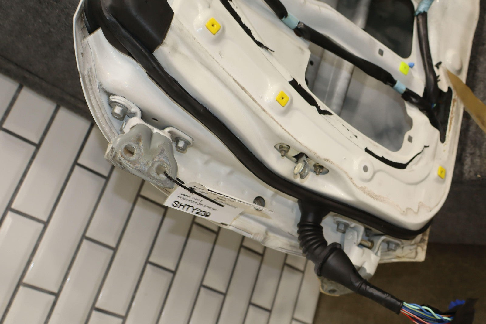 Rh (exc Sportroof), Super White (040), Sold Less Mirror-trim Panel-molding, Dent Under Mirror (yellow), Paint Chips Down Rear