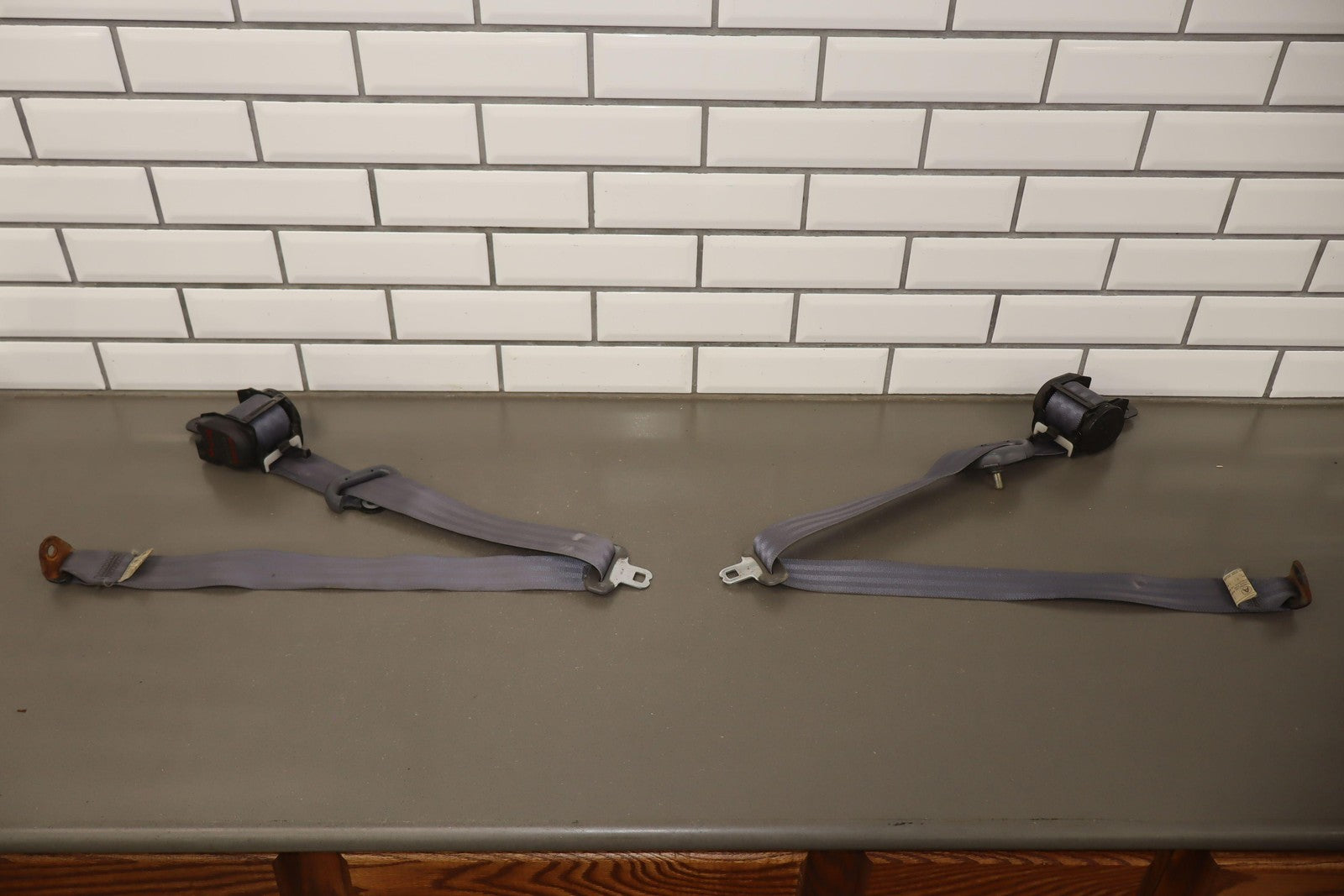 Lh-rh Pair, 3rd Row Retractors, Gray, Mild Wear, Light Sun Fade, Some Staining, Both Retract Properly