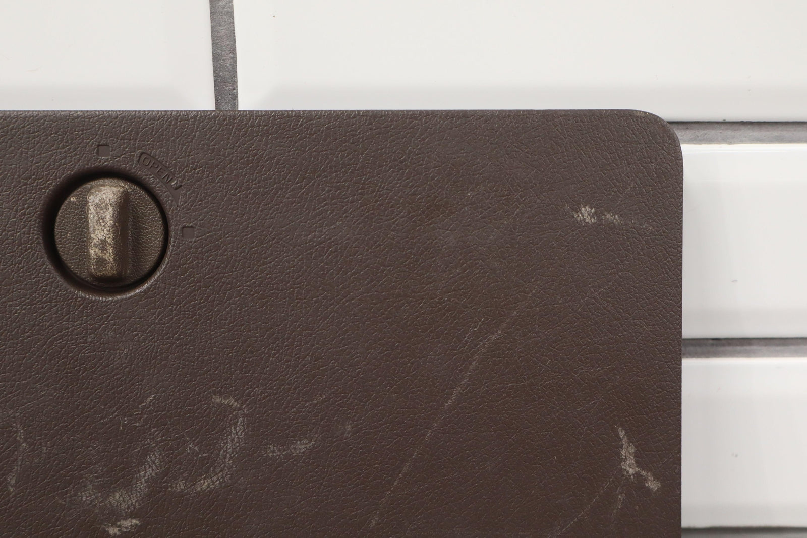 Rh Quarter Trim Cubby Door, Brown (ff40), Mild Scratches To Face, Latch Functions Properly