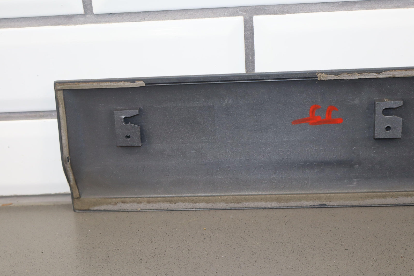 Rh Rear Door Moulding, Gold, Mild Sun Fade, Couple Knicks/chips