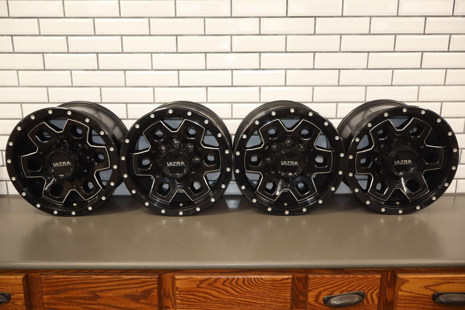 Important notes: Set Of 4 Aftermarket Wheels, 17x9 Black Ultra Motorsports 217 Wheels, Light Scuffs/scratches, All Spun True