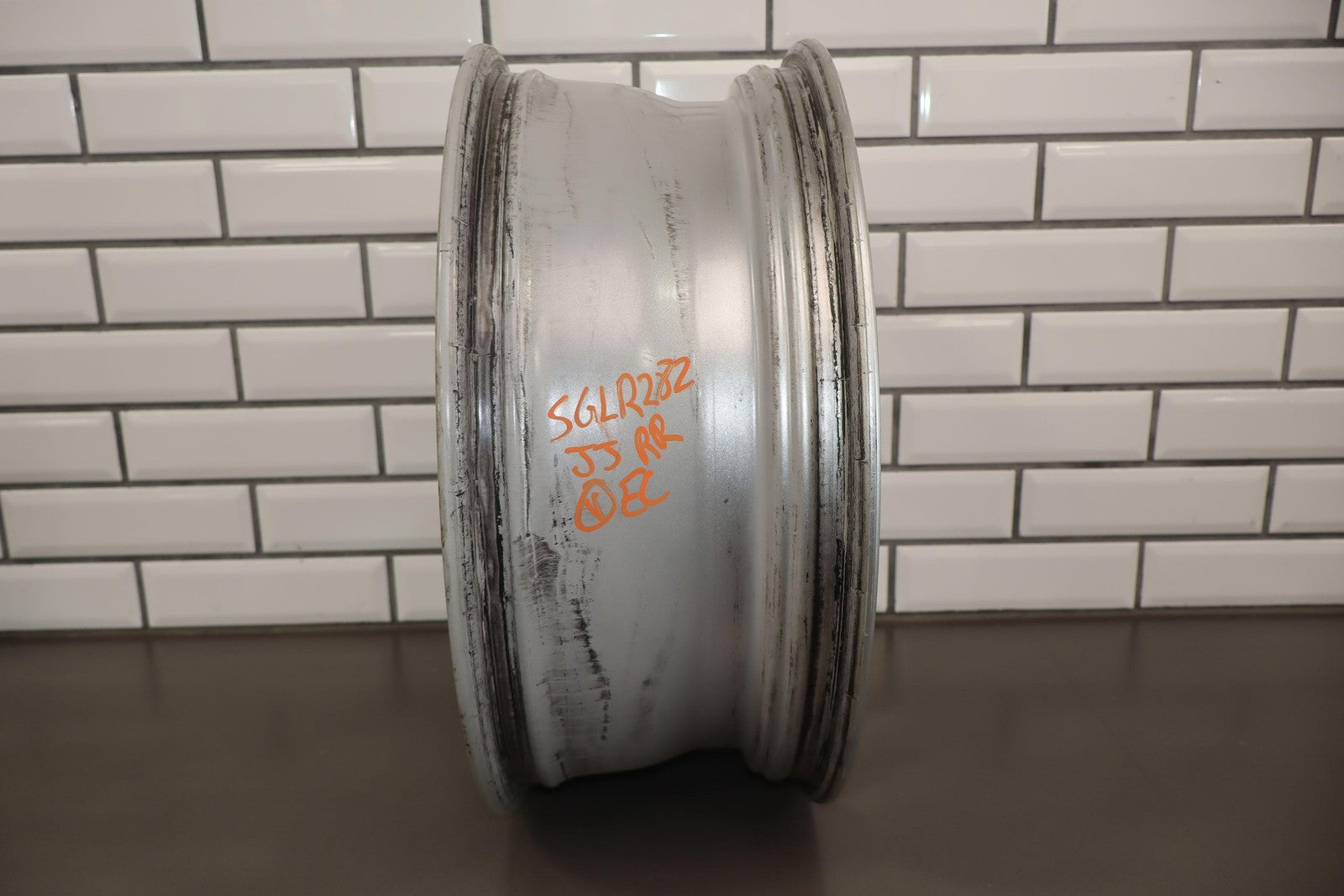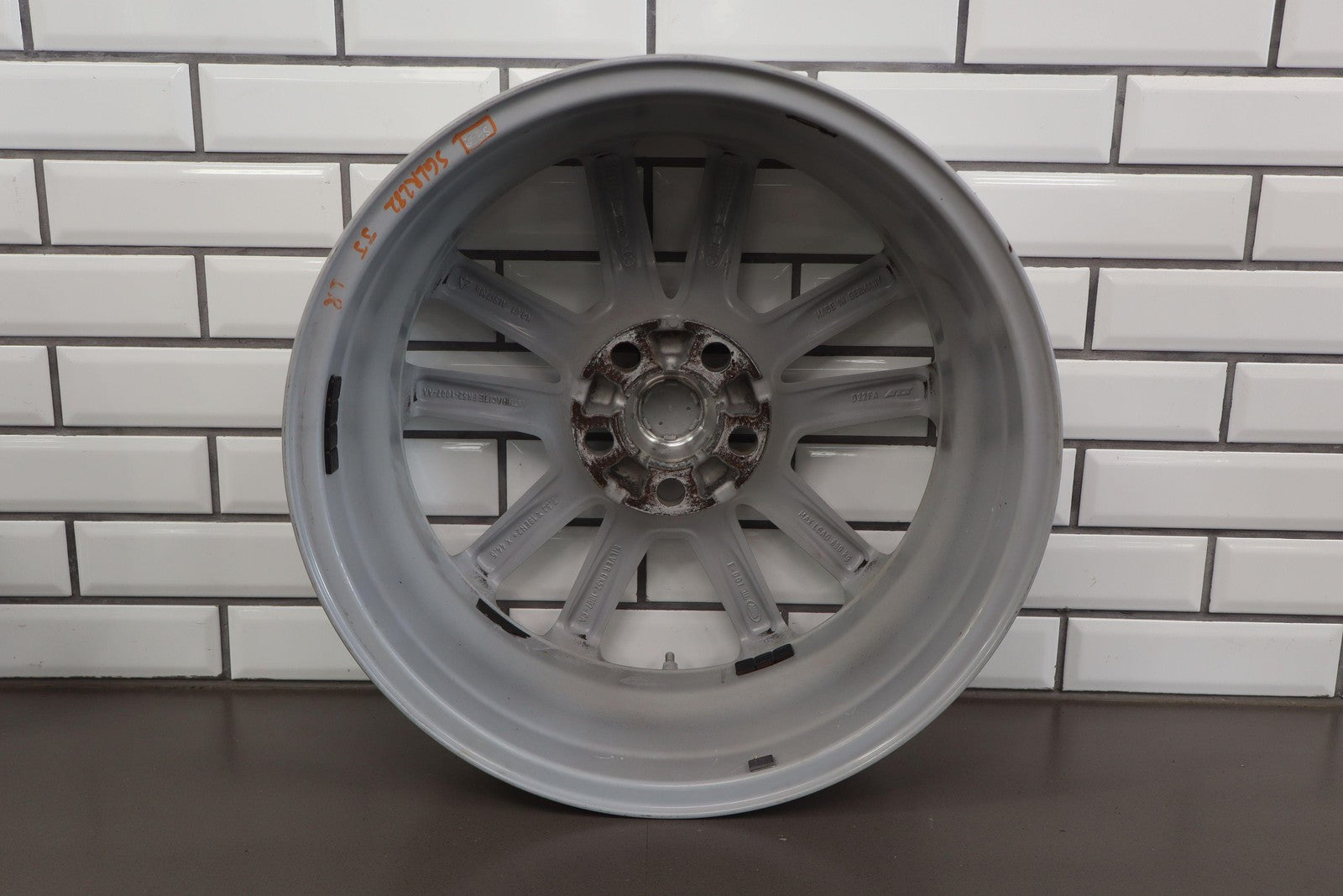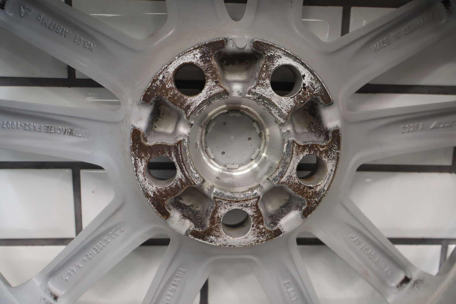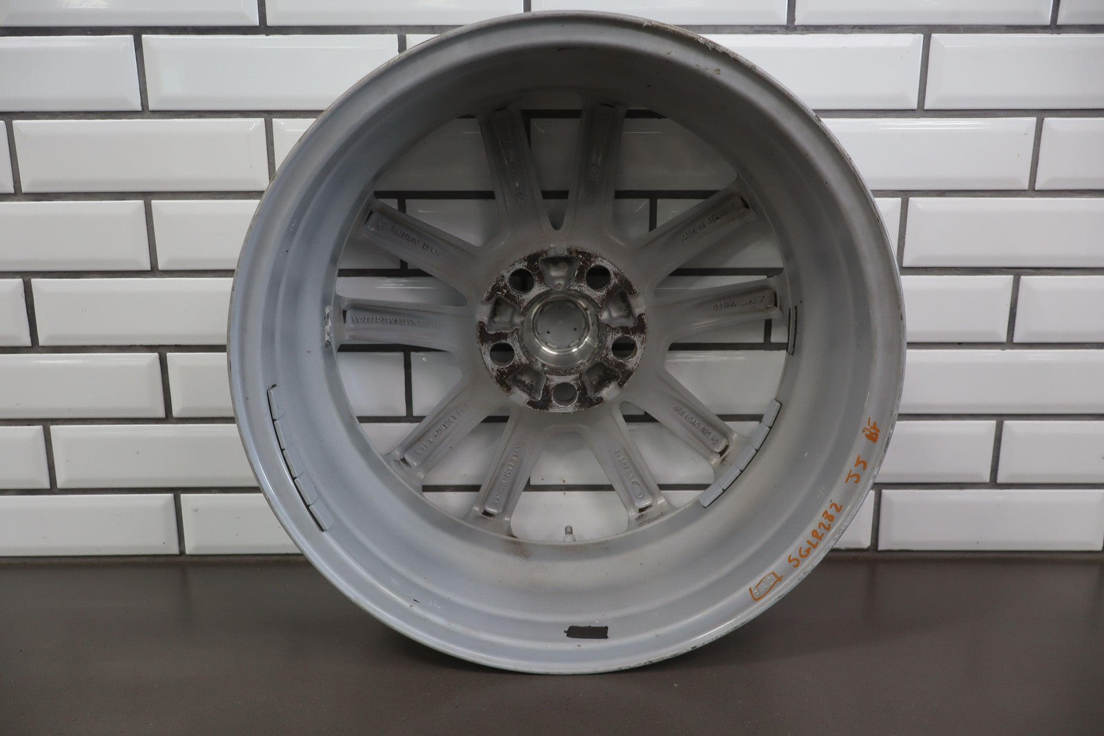 Set Of 4 Wheels, 19x7.5 Silver Split 5 Spoke Wheels, Curb Rash, Couple Scratches, All Spun True