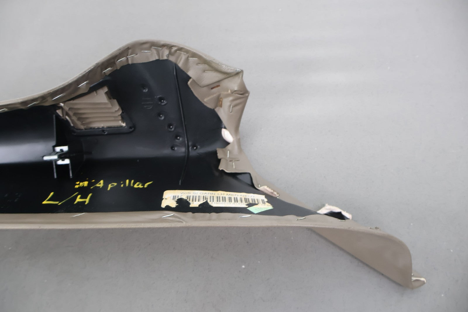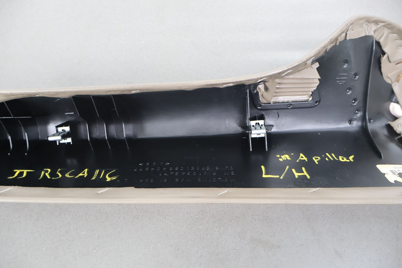 Important notes: Lh Interior A Pillar Trim, Shale (152), Couple Creases, Couple Knicks, Light Staining, Mounted Solid