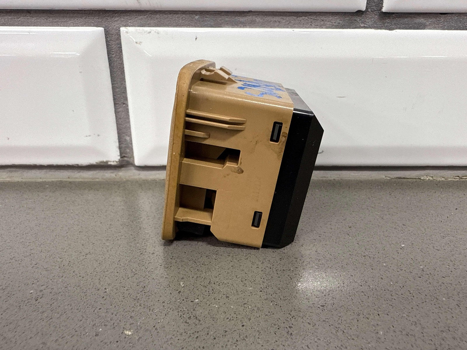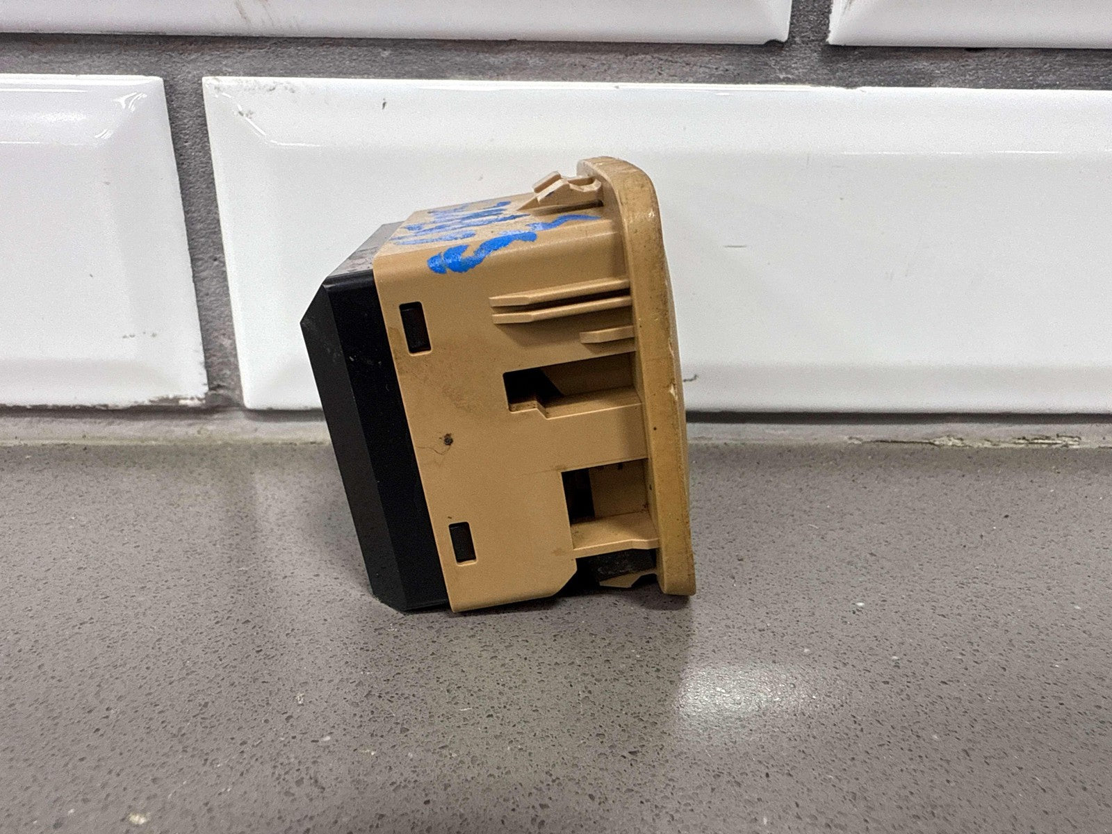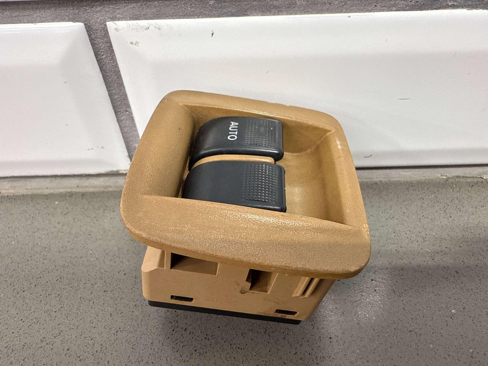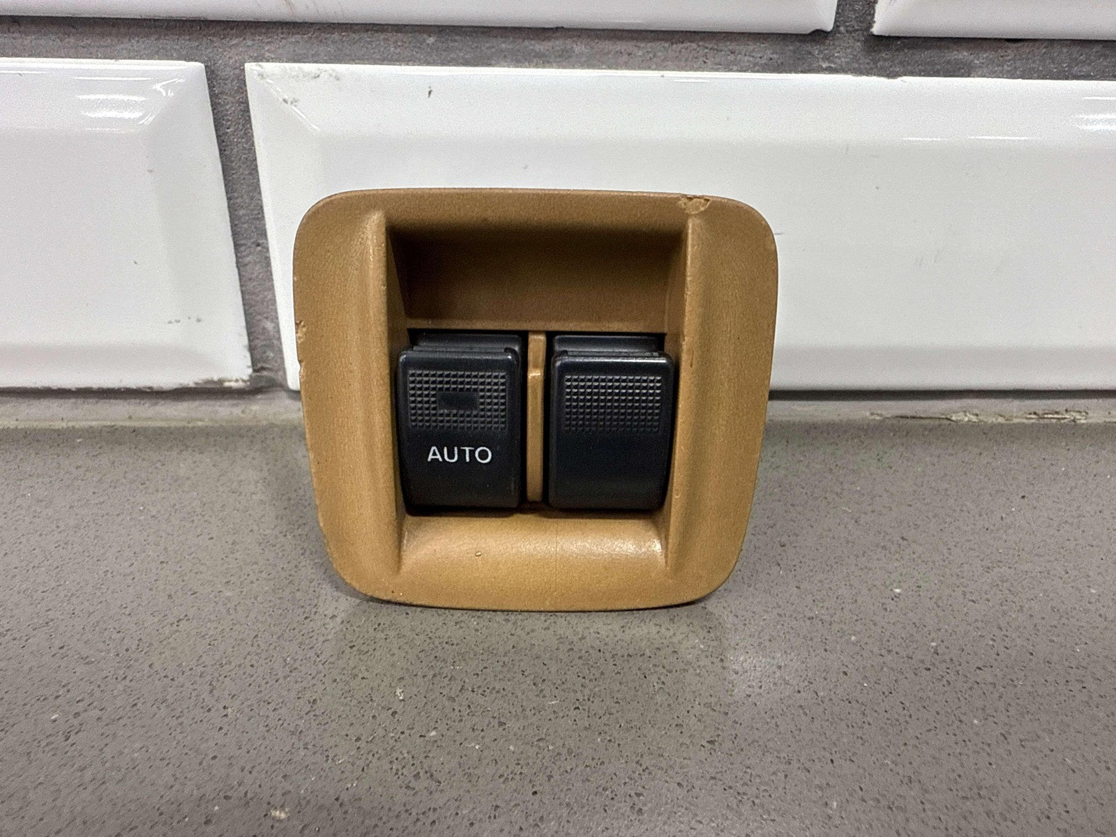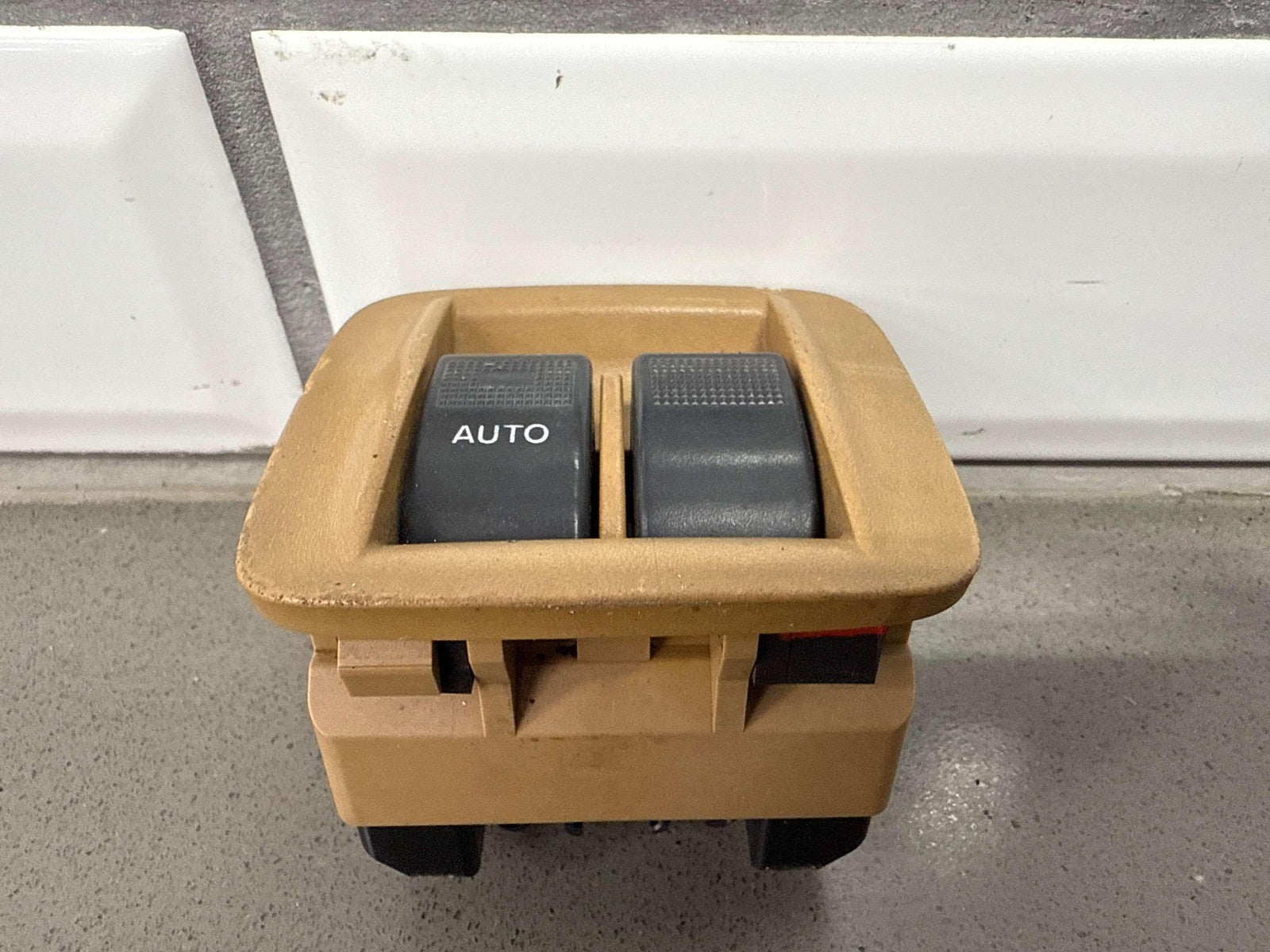 Console Mounted Window Master Switch, Tan Bezel (chips), 1 Tab Missing (red), Functions Properly