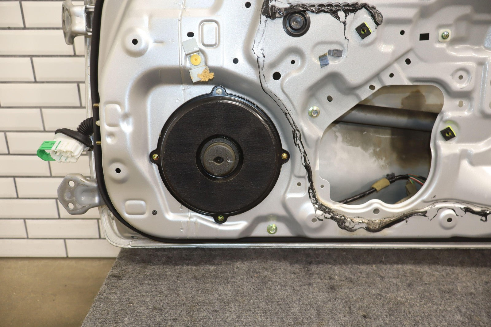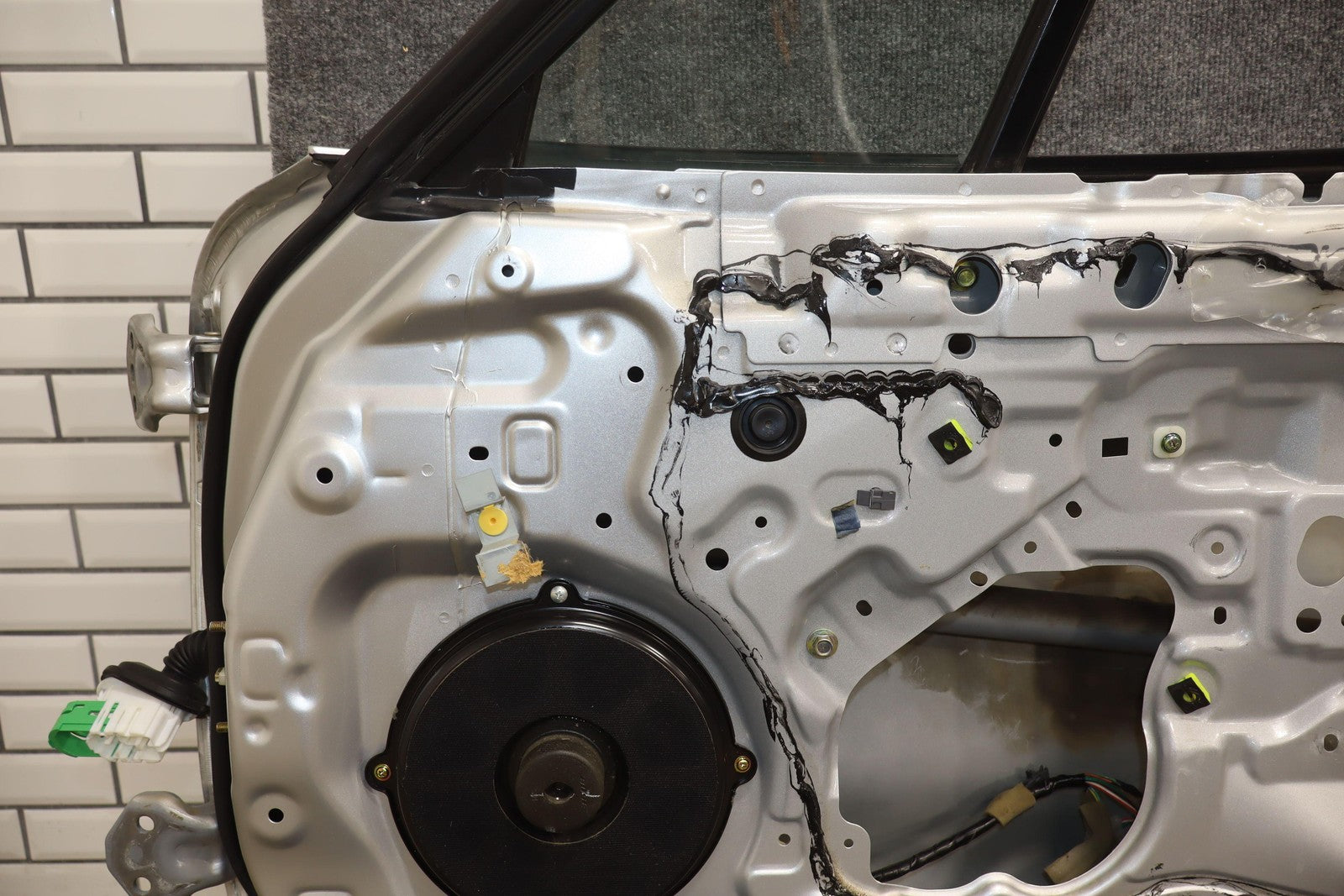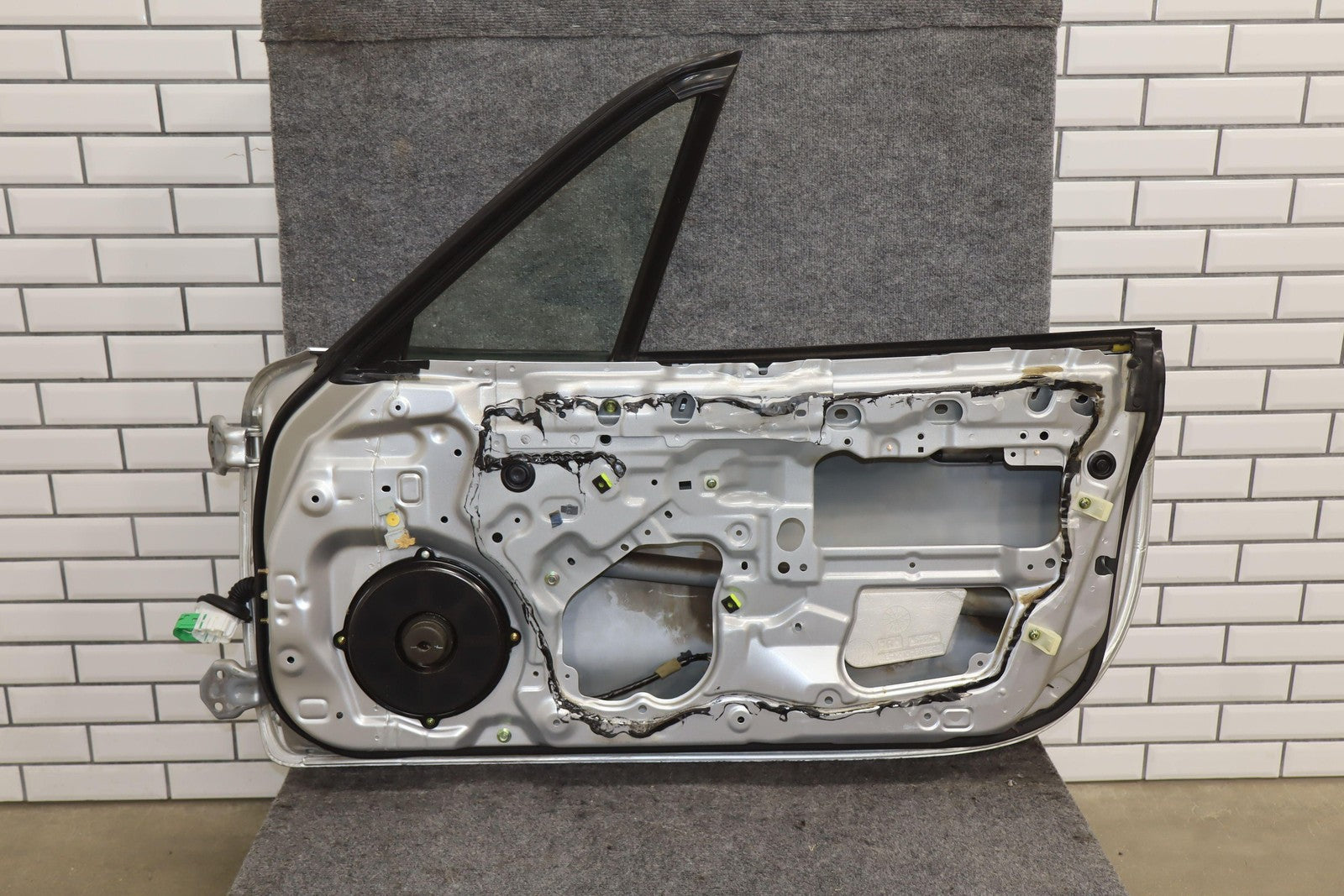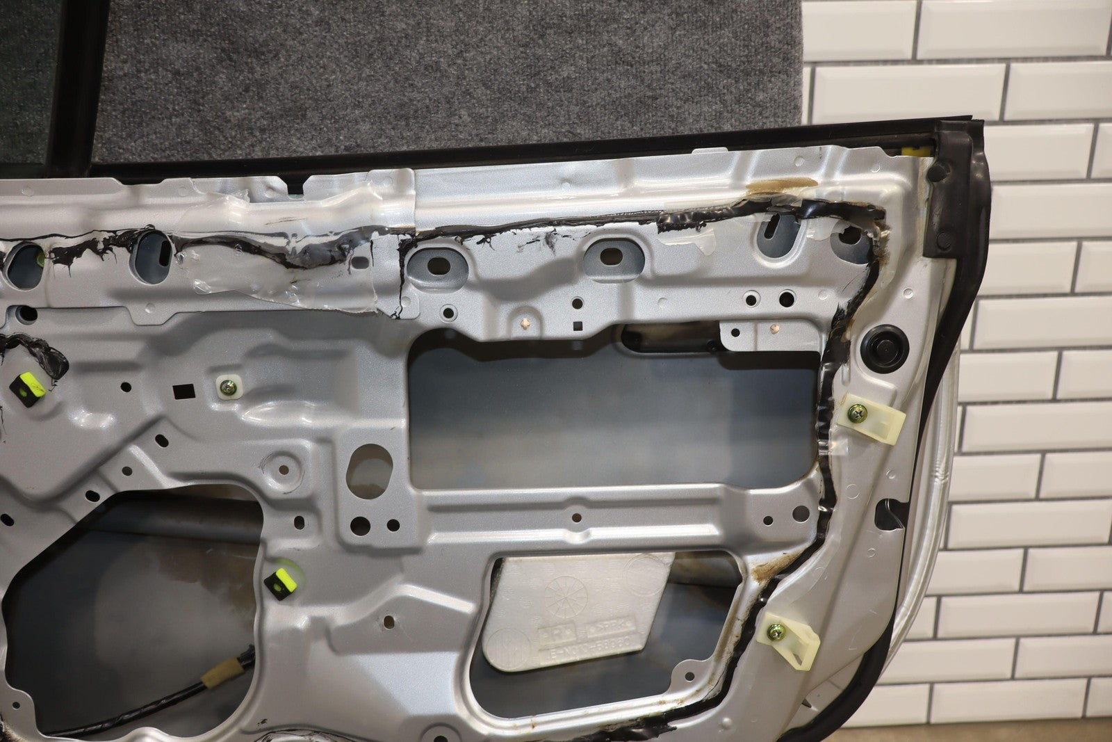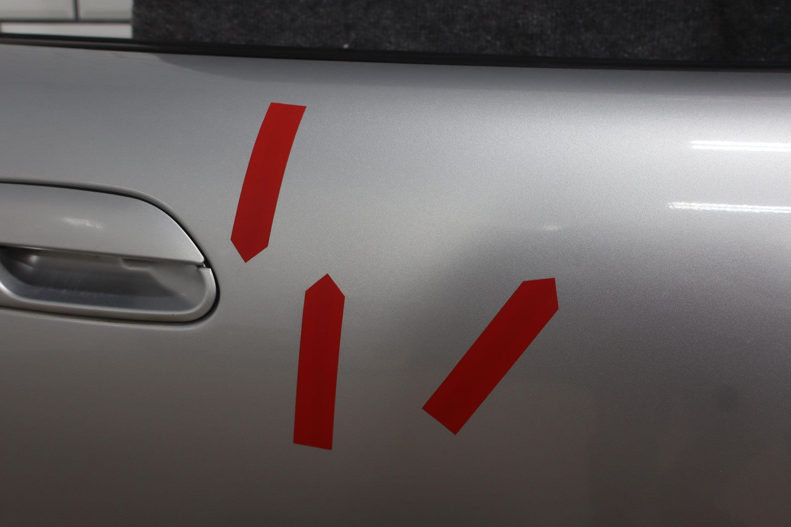 Rh Door Shell, Sunlight Silver Metallic (22v), Sold Less Mirror-trim Panel-glass-regulator, Small Dents Near Handle (red Arrows)