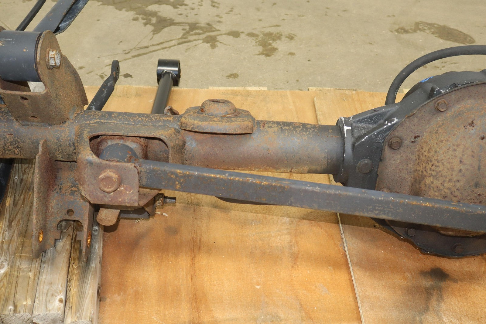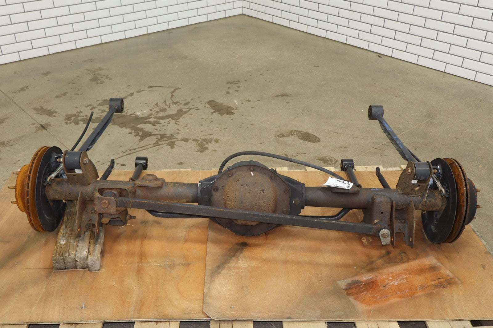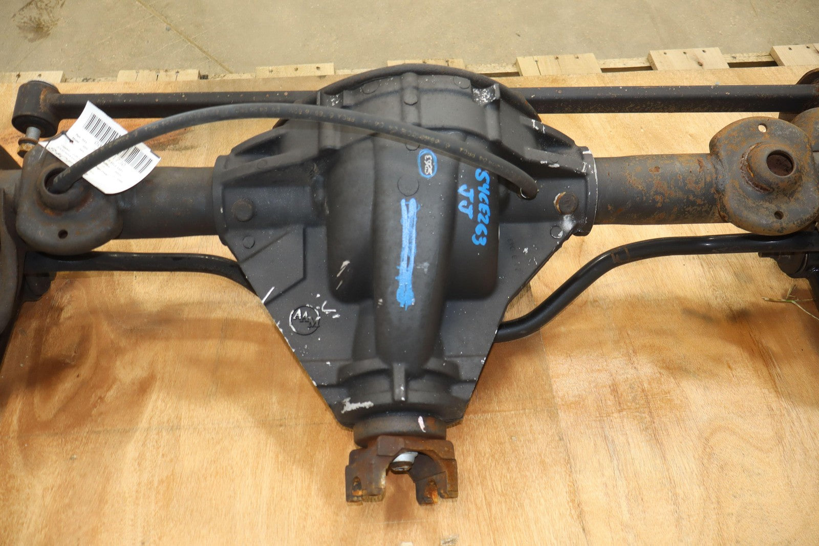 Eje trasero sólido, relación de transmisión 3,73:1 (gt4), incluye frenos, barra estabilizadora y brazos de control.