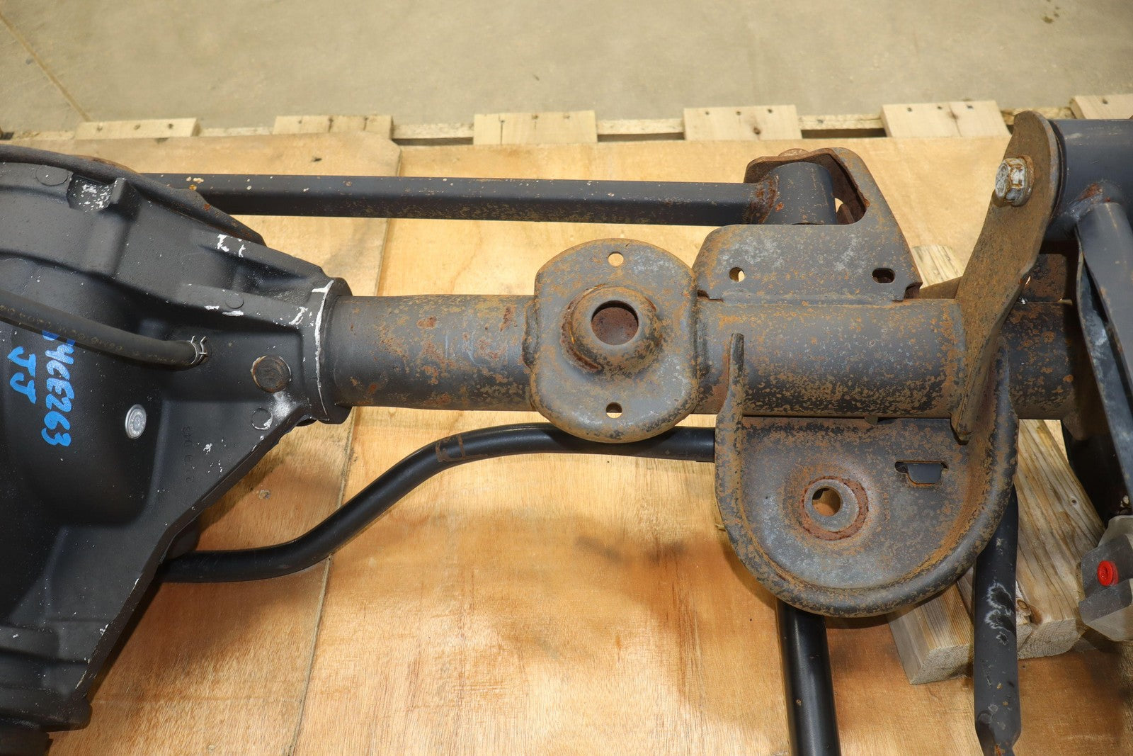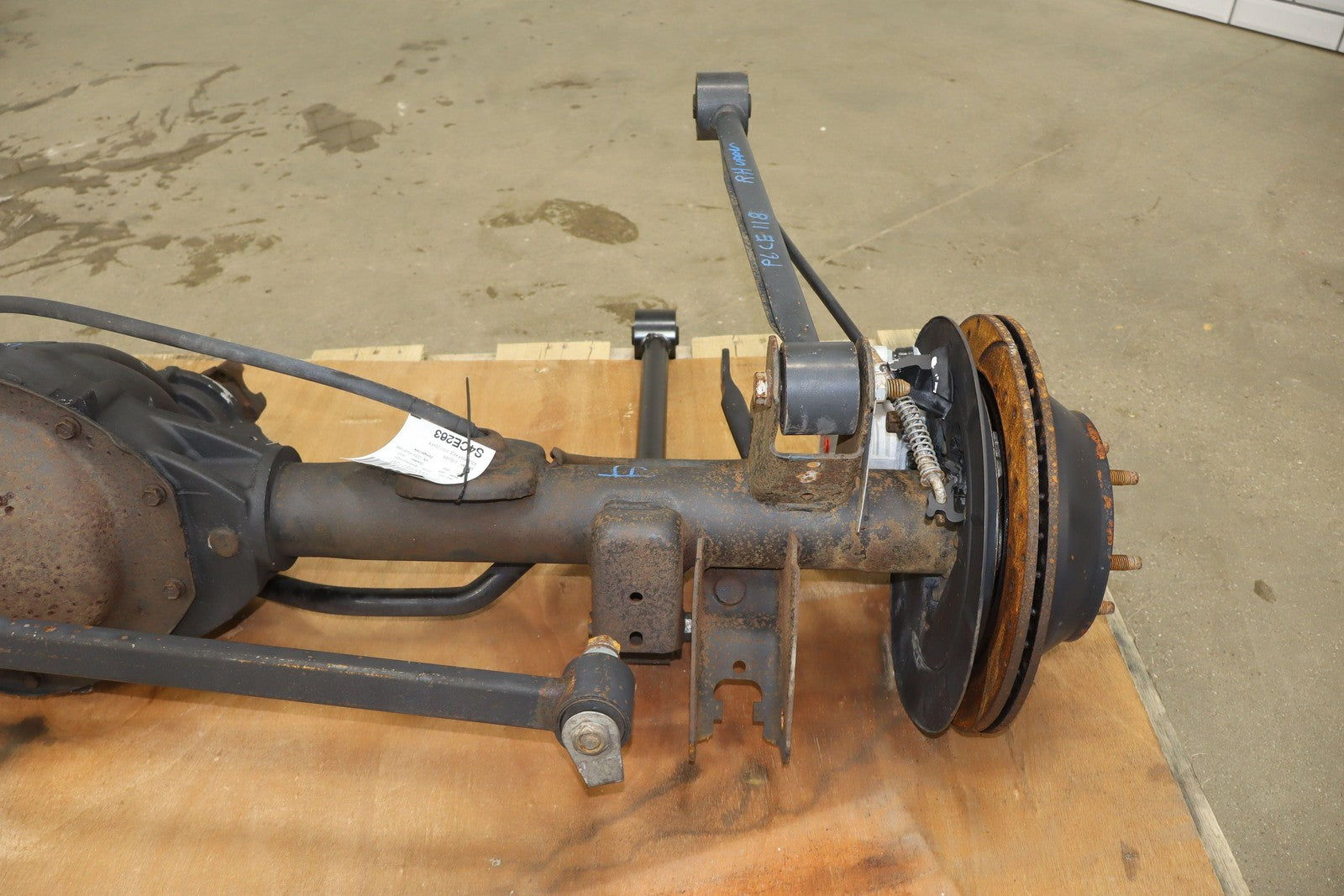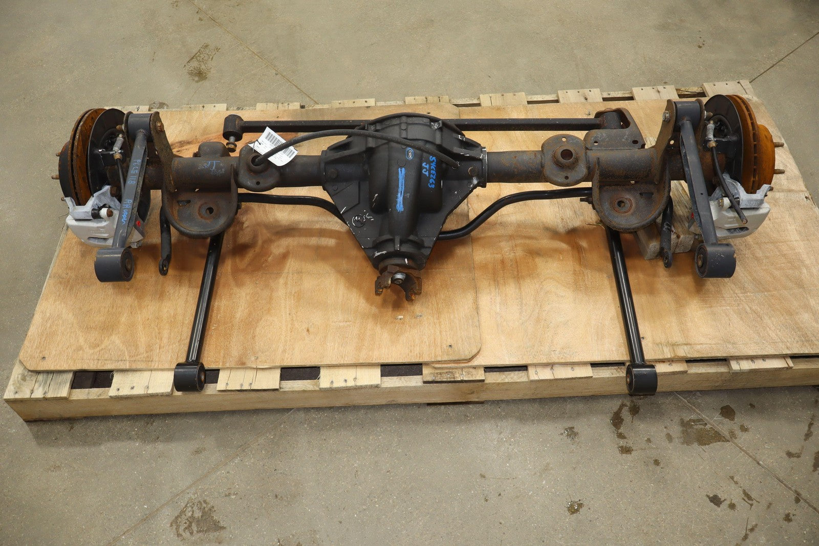 Eje trasero sólido, relación de transmisión 3,73:1 (gt4), incluye frenos, barra estabilizadora y brazos de control.