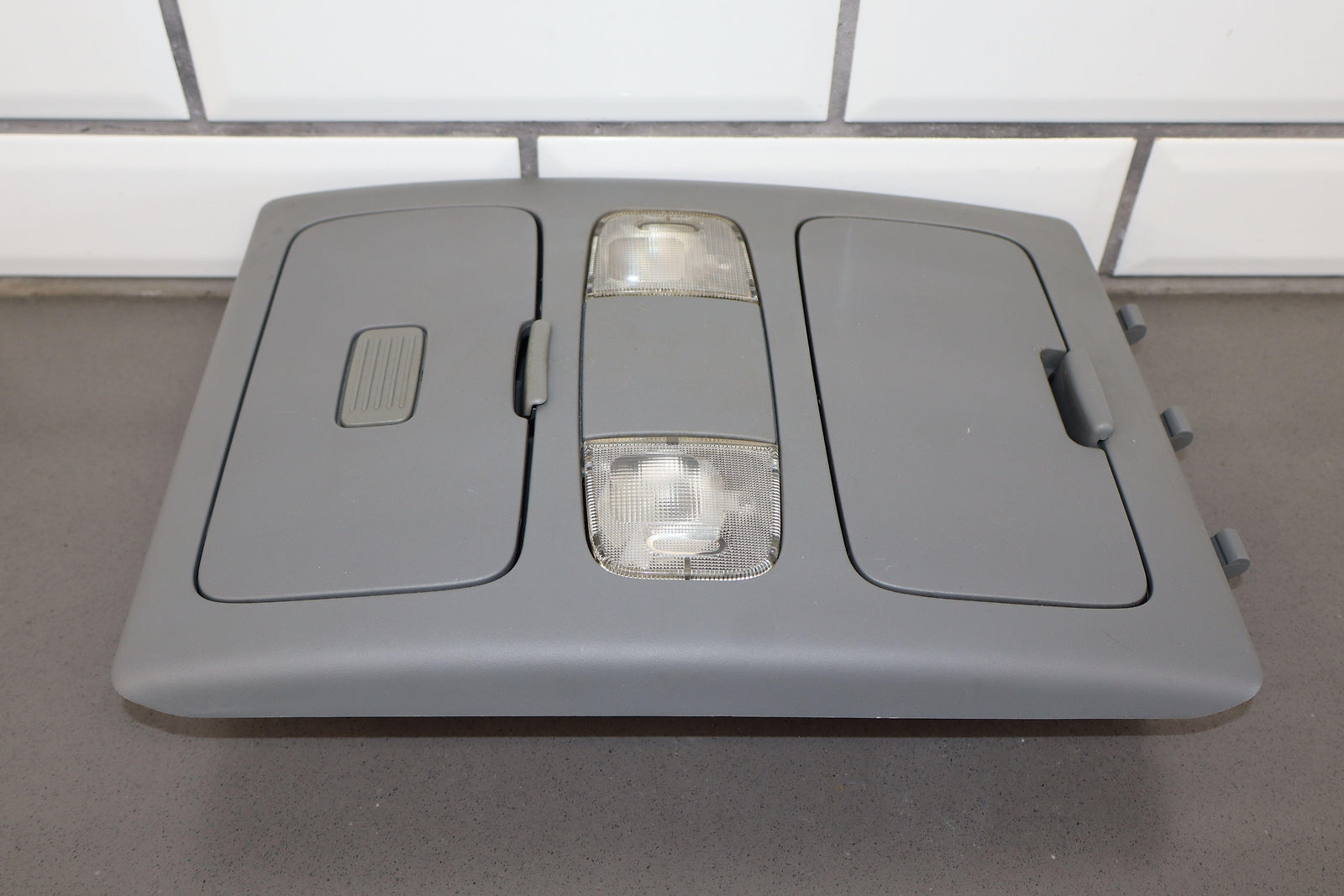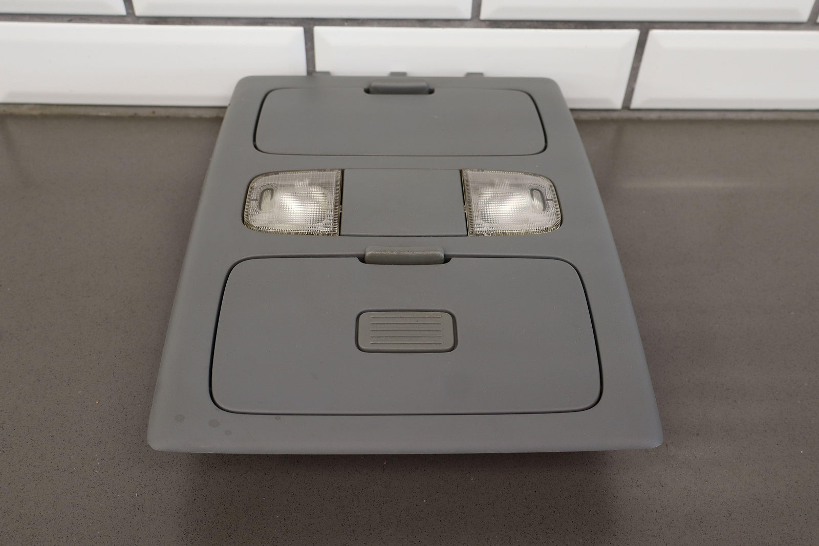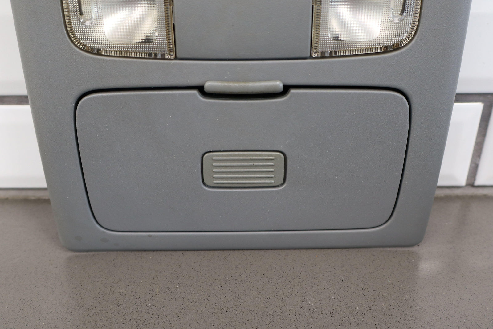 Roof Console, Crew Cab, Graphite (13), Both Doors Function Properly, 1 Repaired Tab (marked Red)