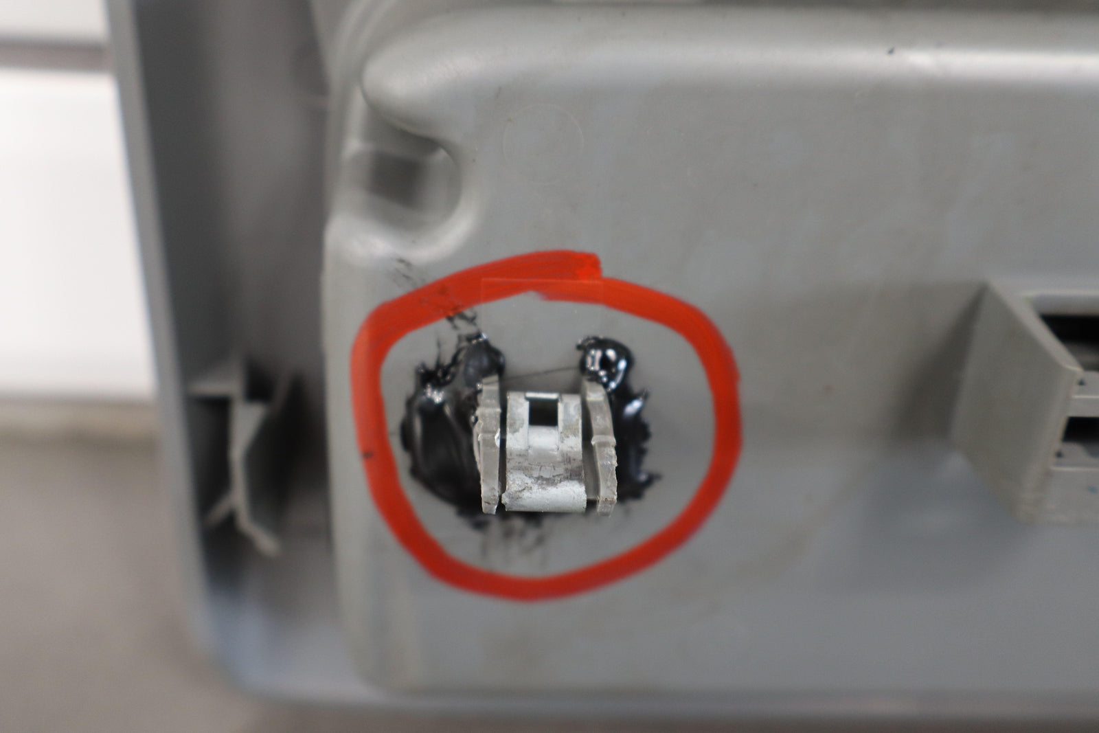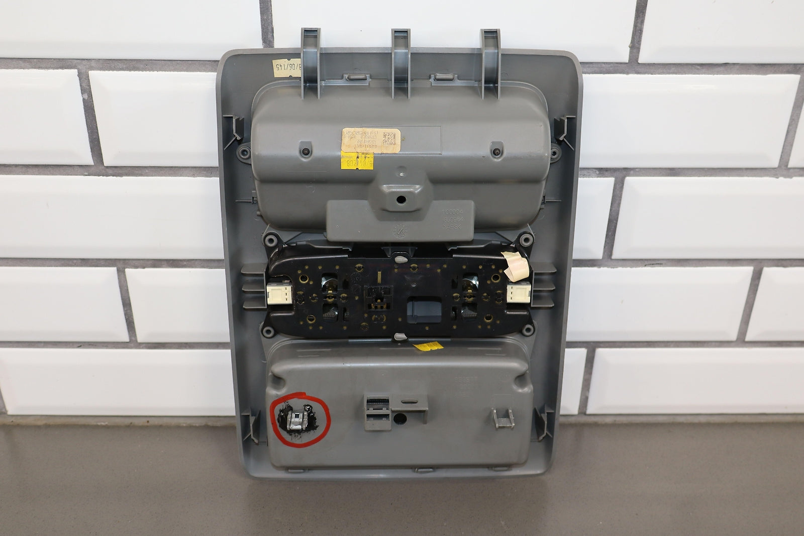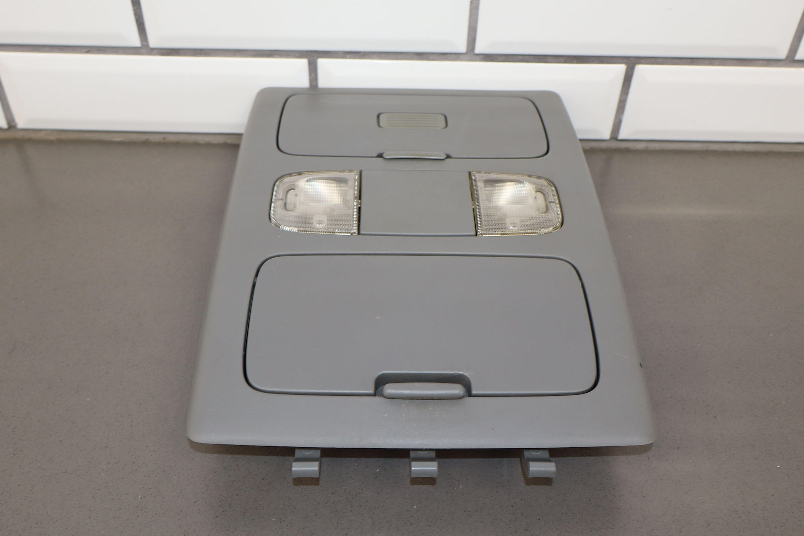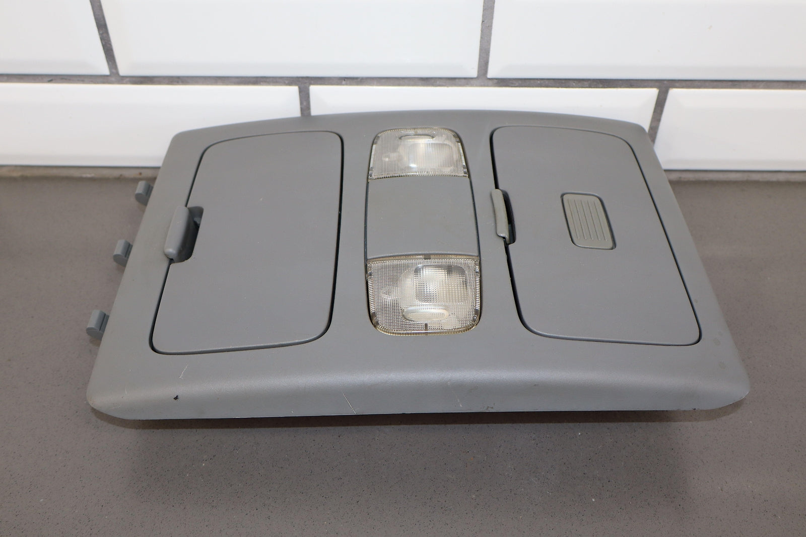 Roof Console, Crew Cab, Graphite (13), Both Doors Function Properly, 1 Repaired Tab (marked Red)