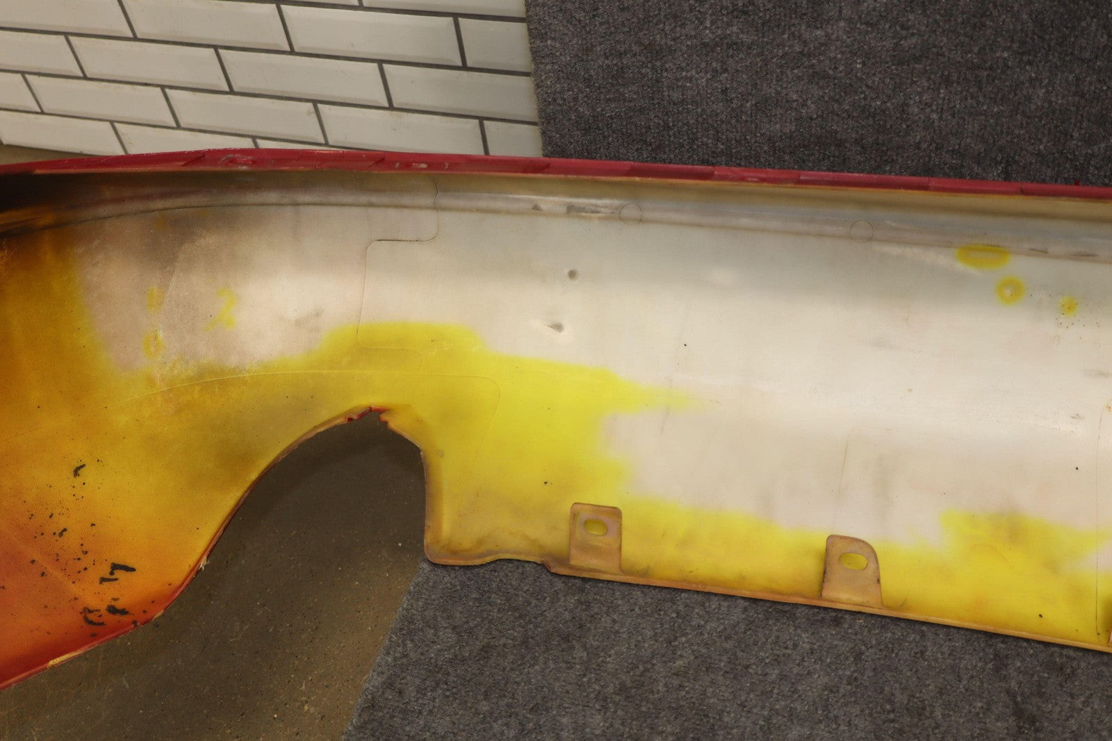 Classic Red, Includes Corner Markers, Heavy Clear Coat Damge, Multiple Decent Scrapes, Couple Mild Impact Marks