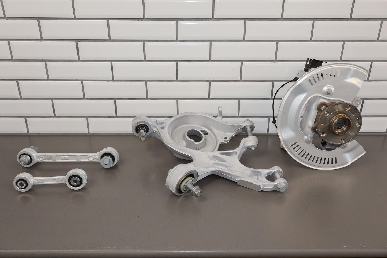 Important notes: Lh 4 Piece Rear Suspension Corner (missing Curved Link) Includes Knuckle And 3 Control Arms