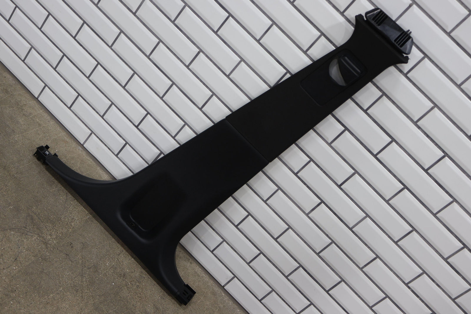 Rh Interior B Pillar Trim, Black Abyss, Upper & Lower, Light Scuffs/scratches, Both Mounted Solid