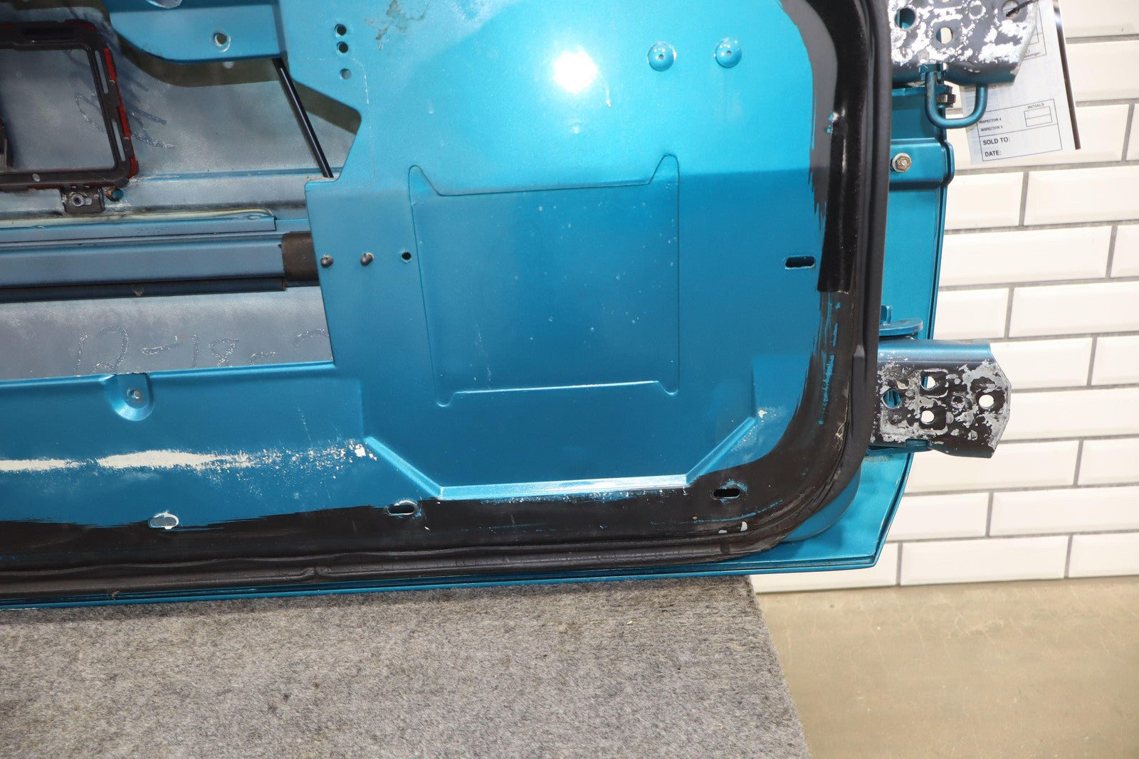 Lh Door Shell (exc. Zr1), Bright Aqua Metallic (43u), Sold Less Mirror-trim Panel-glass-regulator, Fade, Mild Scratches, Knicks