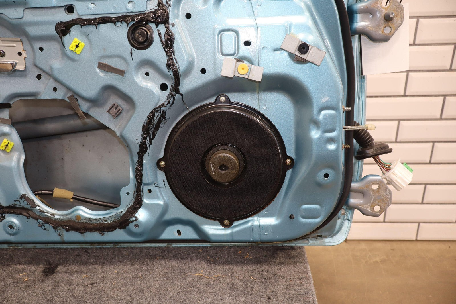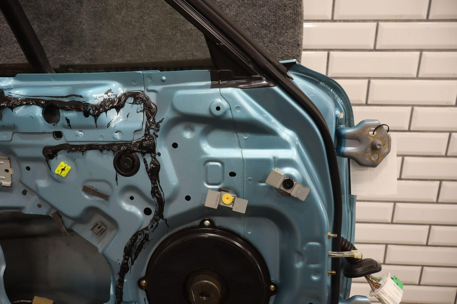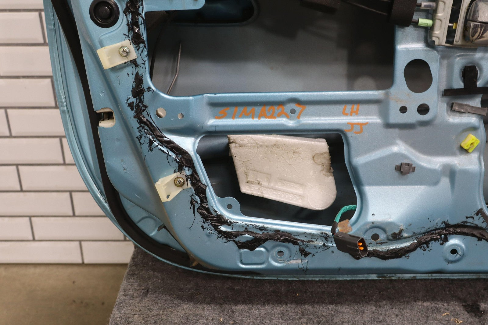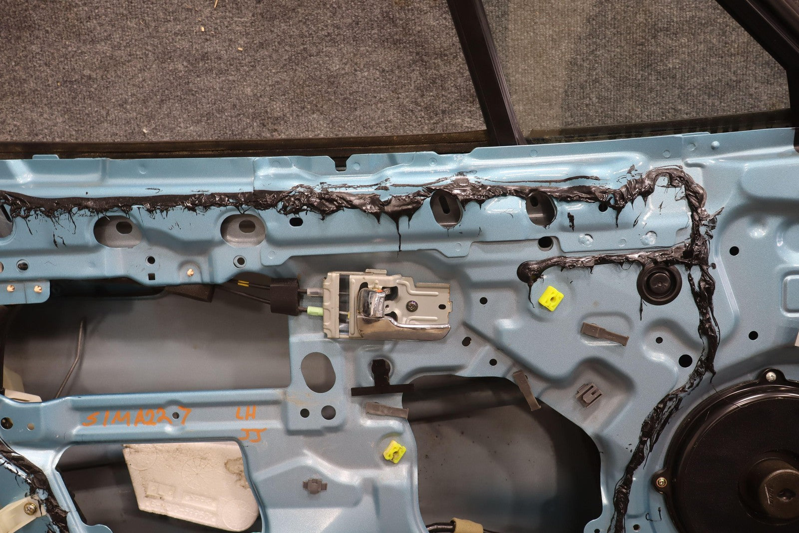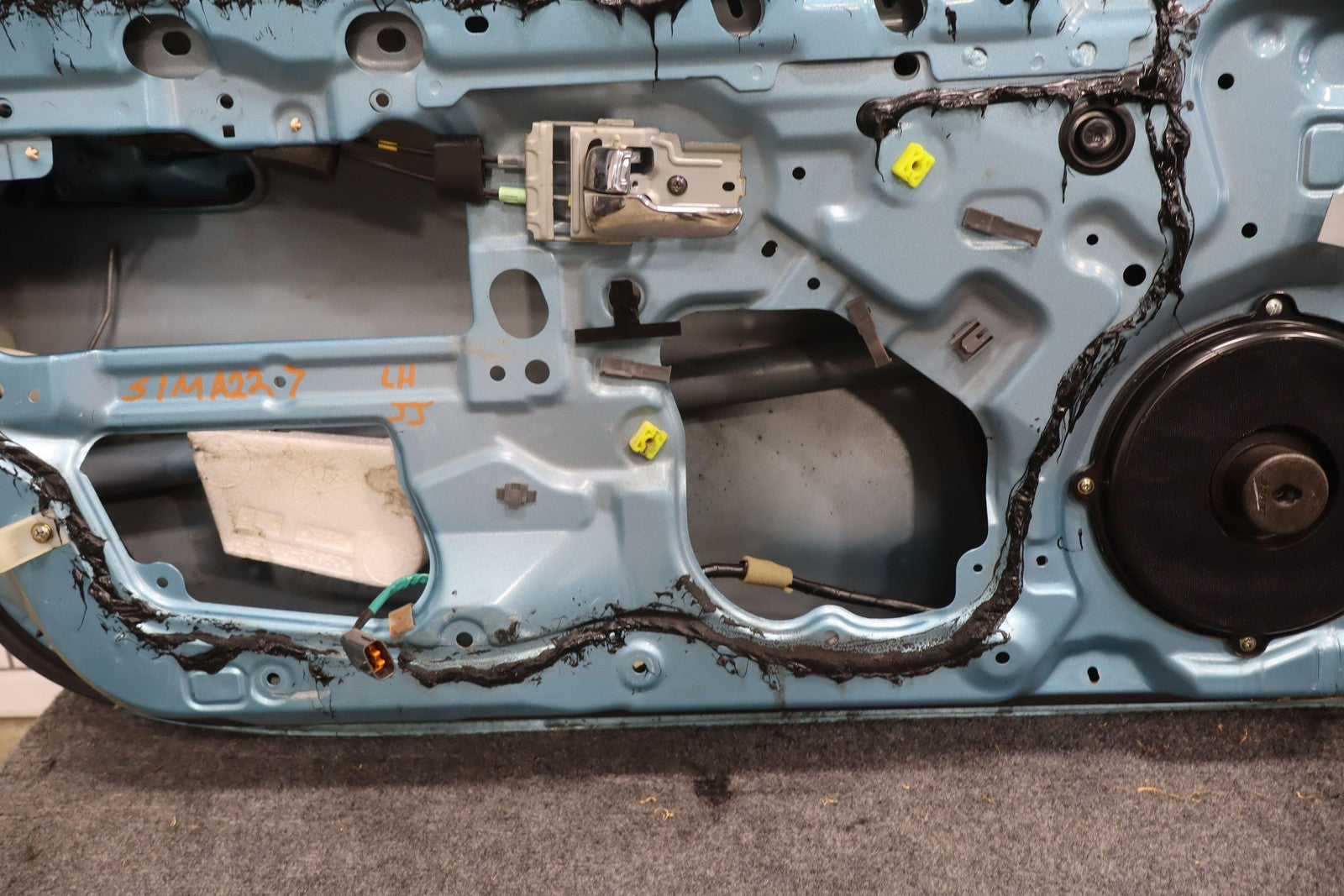 Lh Door Shell, Crystal Blue (23c), Sold Less Mirror-trim Panel-glass-regulator, Mild Sun Fade, Light Knicks Near Handle, Scratch