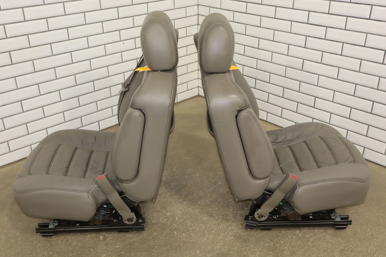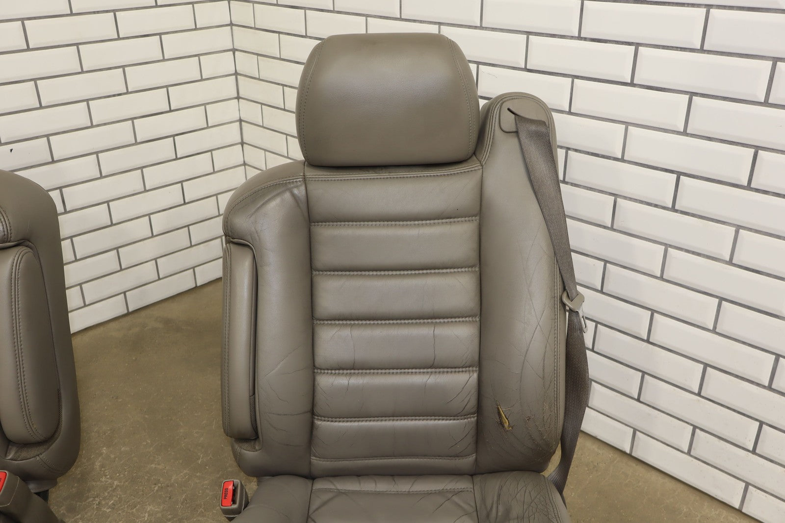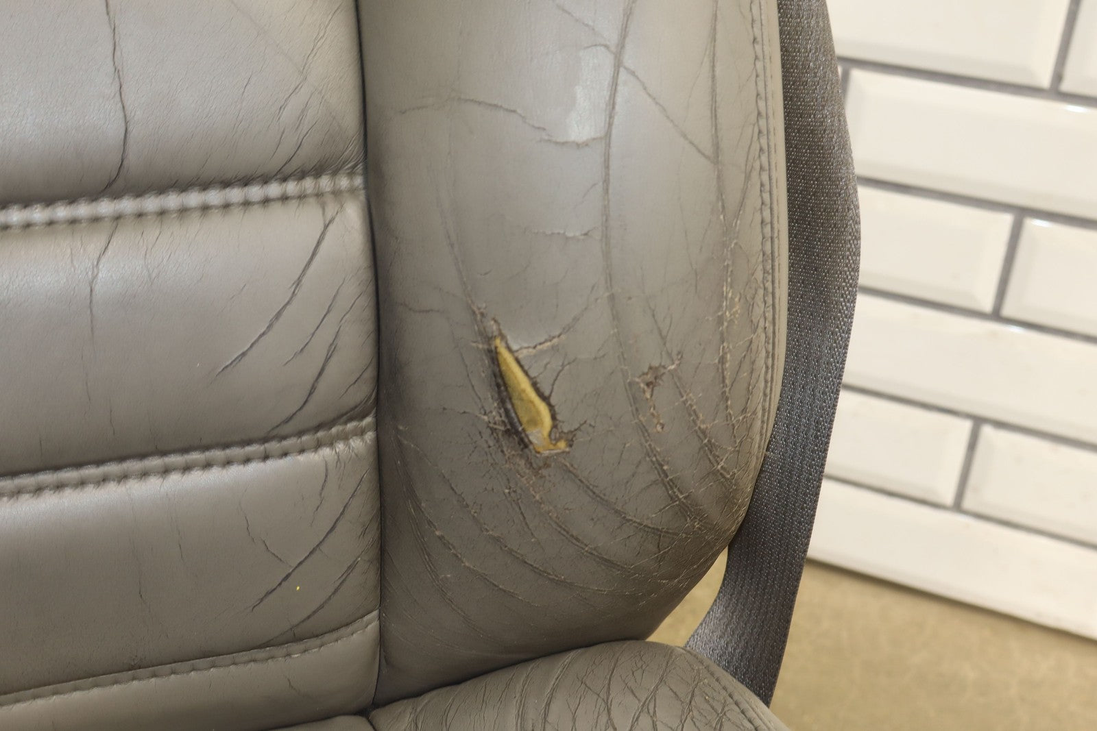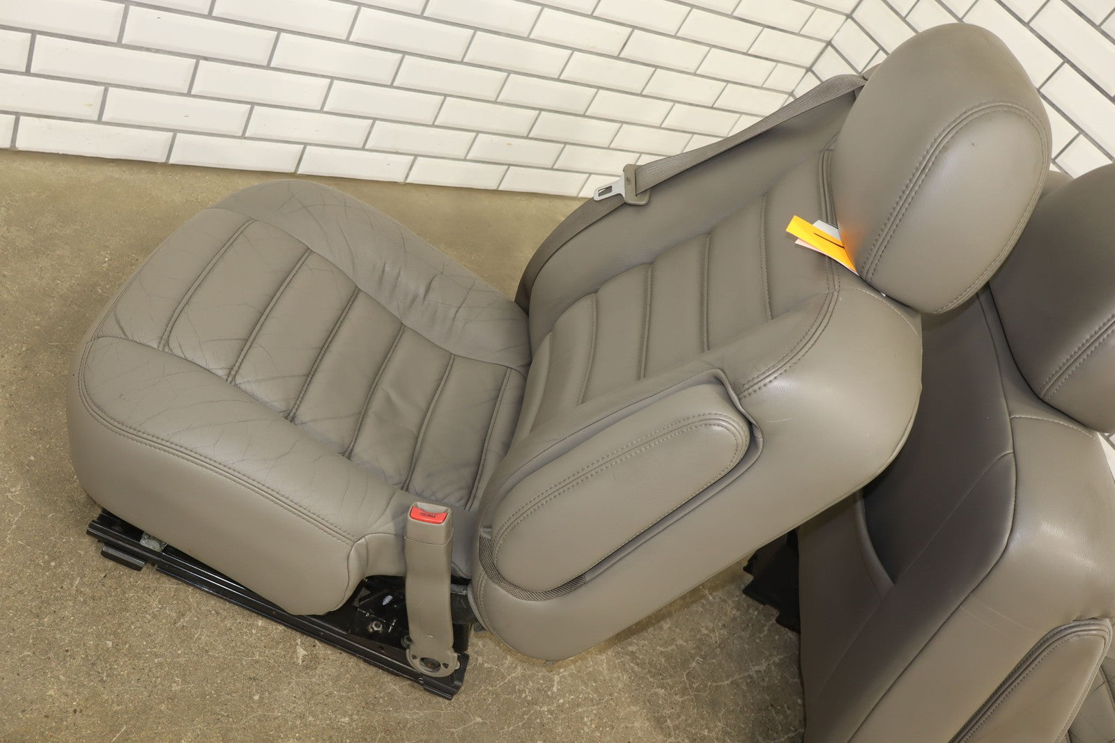Lh Leather Seat Set (1st-2nd Row), Light Wheat (502), Heavy Wear To Drivers Seat, Mild Aging, Light Staining, Functions Properly