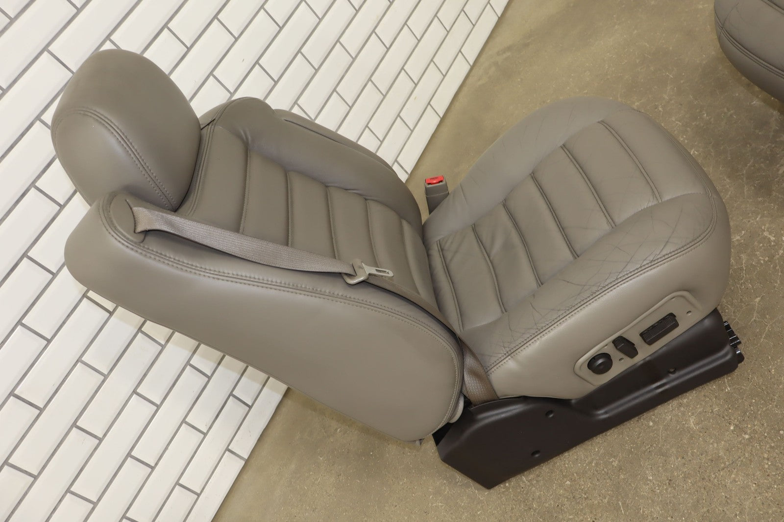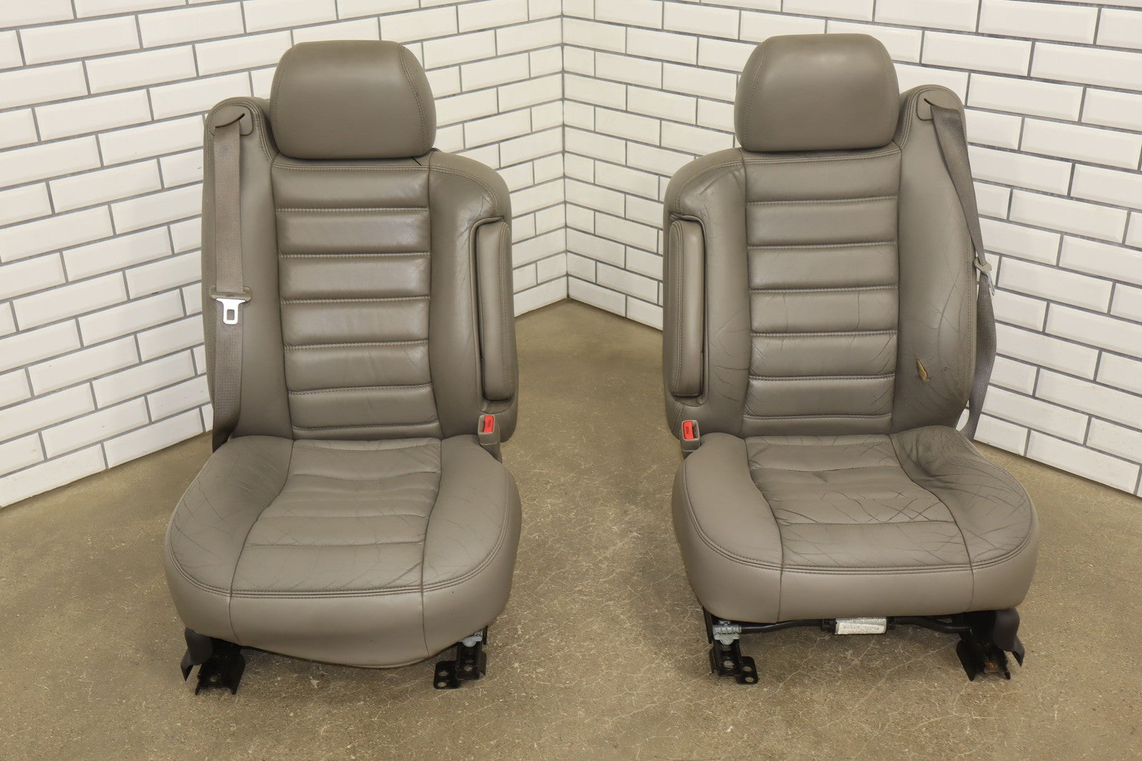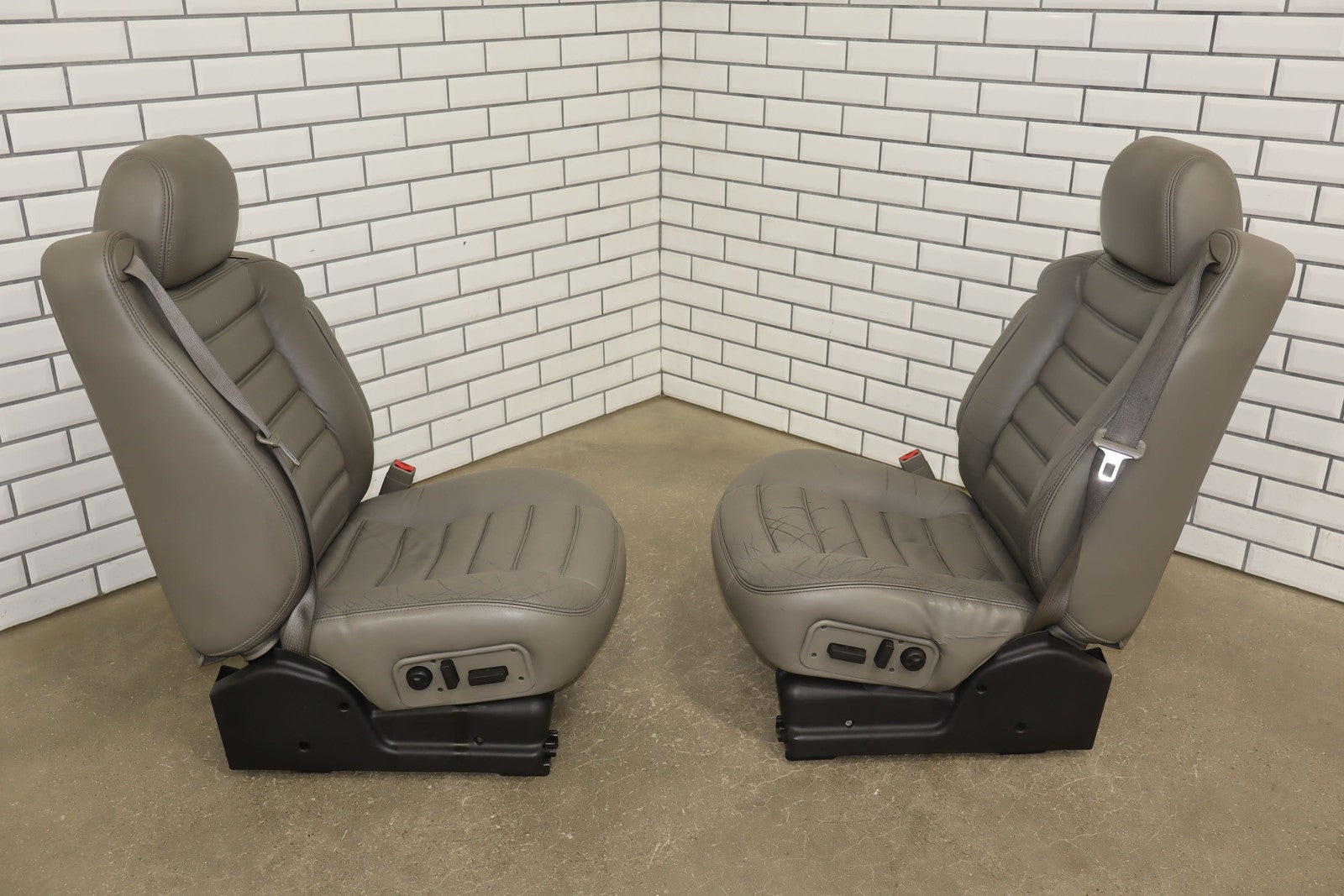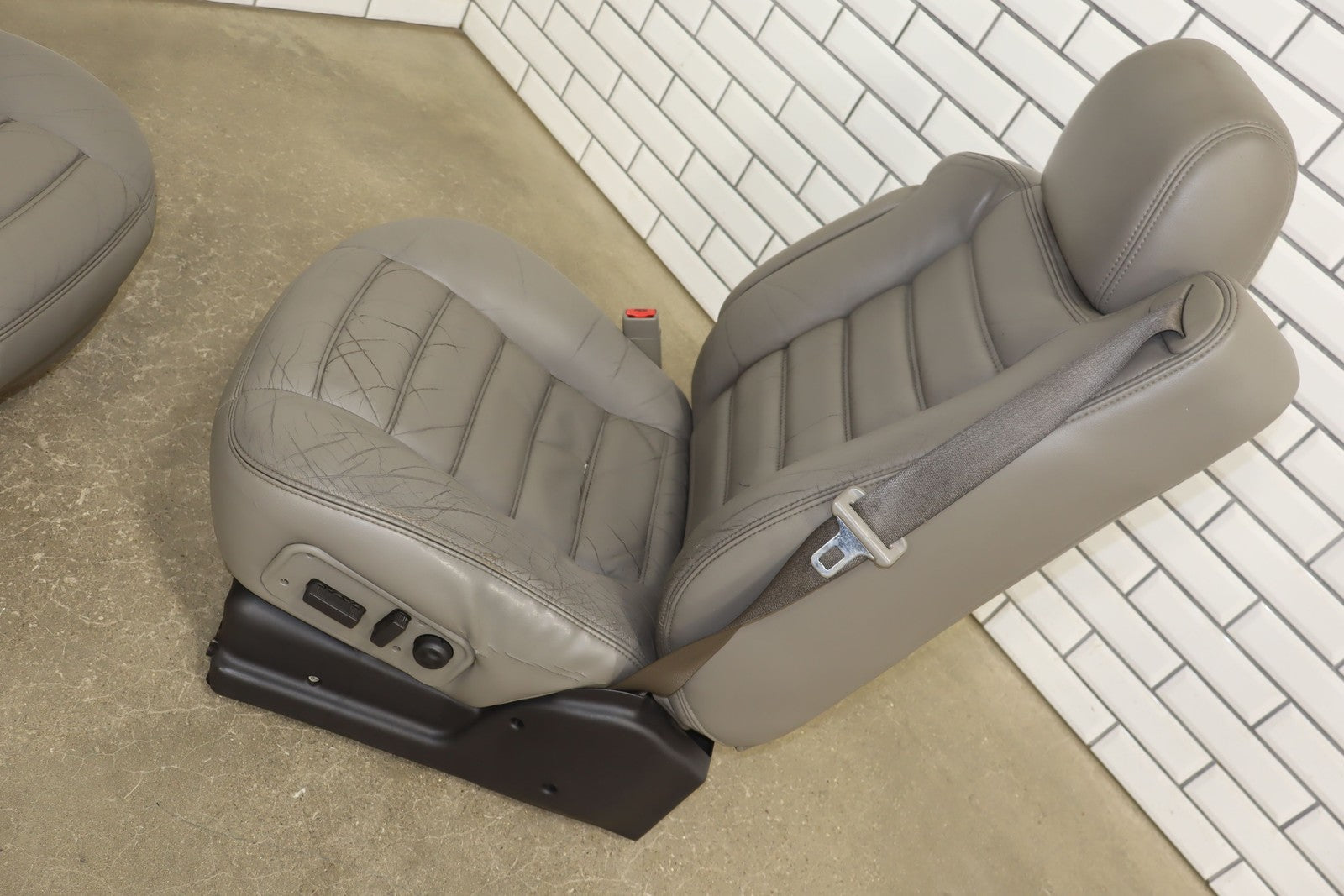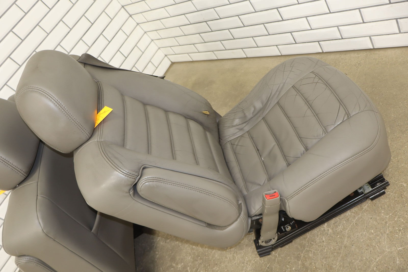 Lh Leather Seat Set (1st-2nd Row), Light Wheat (502), Heavy Wear To Drivers Seat, Mild Aging, Light Staining, Functions Properly