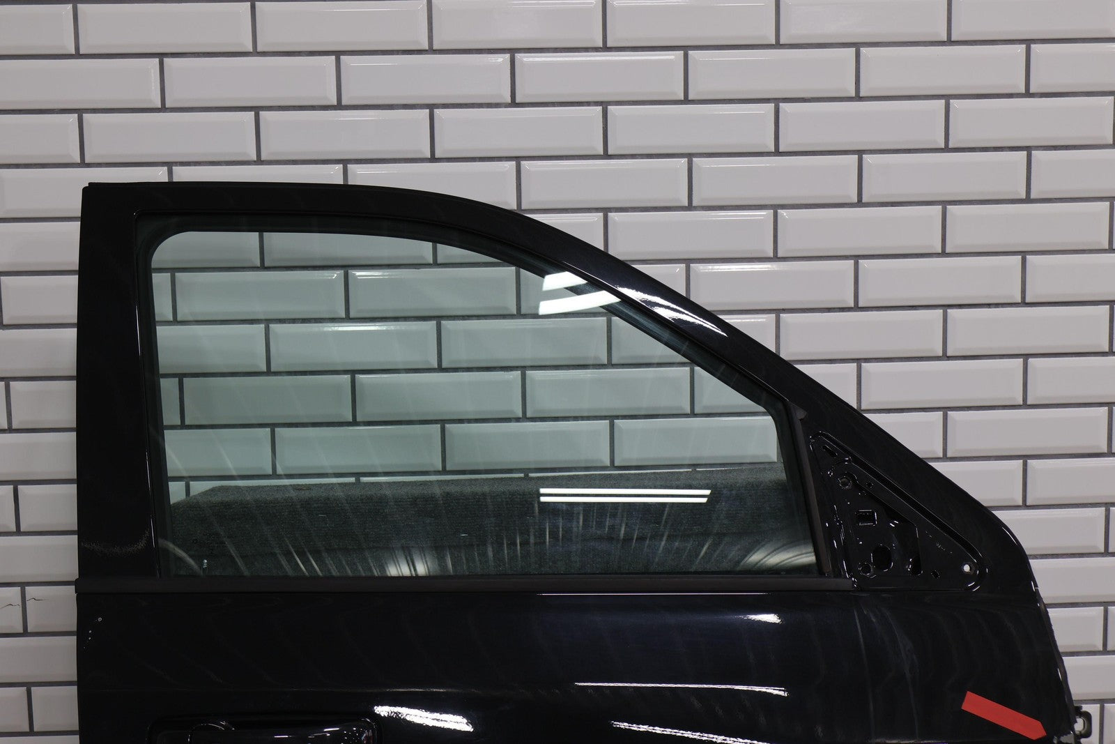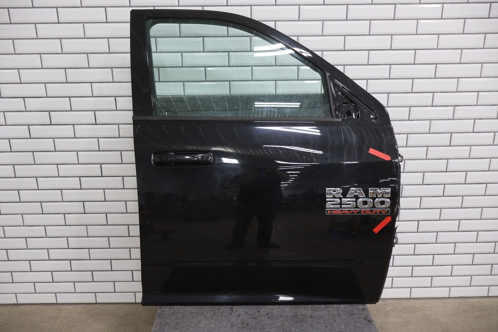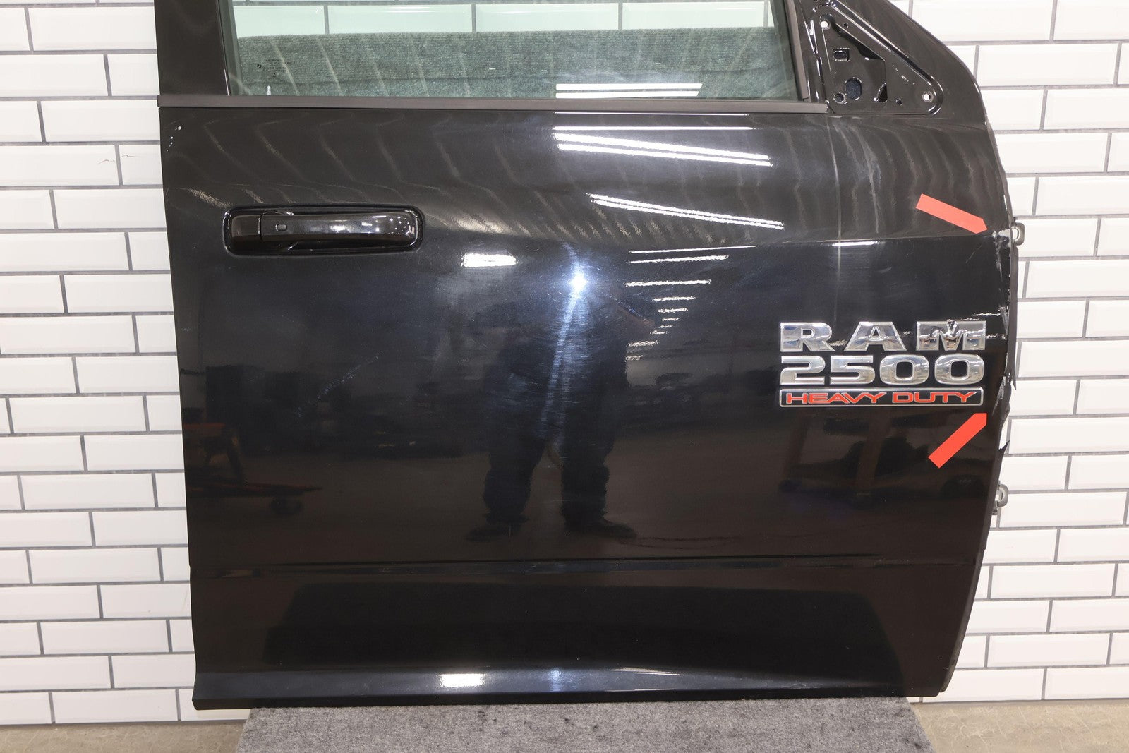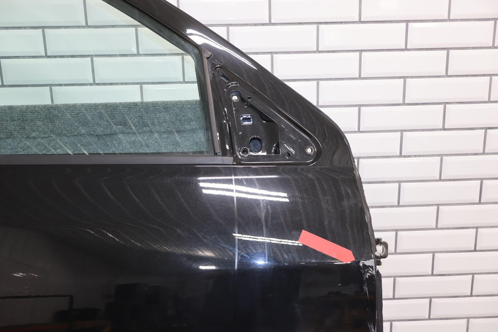 Delantero derecho (cabina Mega), negro brillante (PXR), se vende sin el panel de moldura del espejo, daños en el guardabarros hacia el frente (rojo), un par de desconchones de pintura