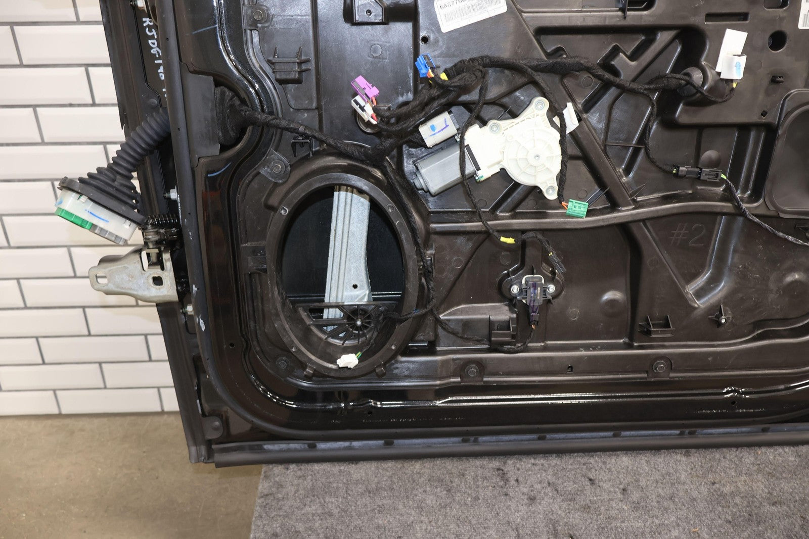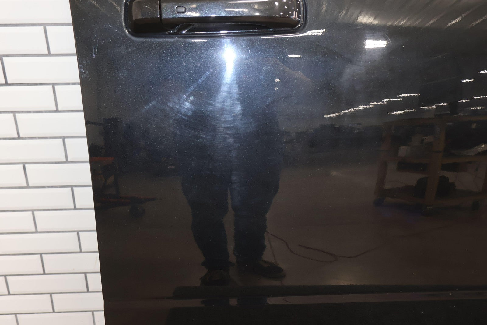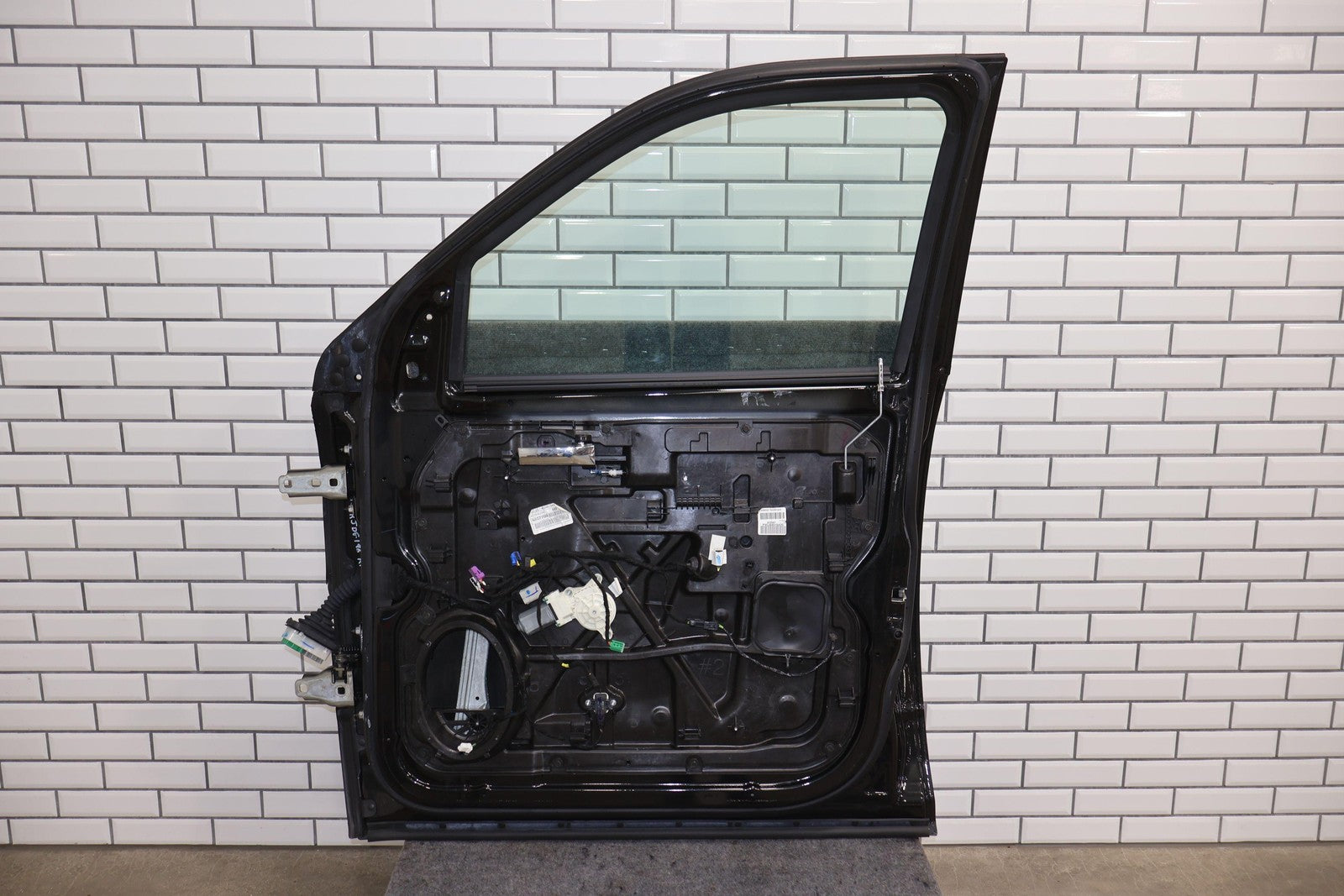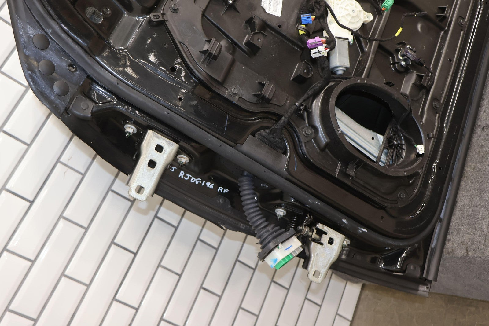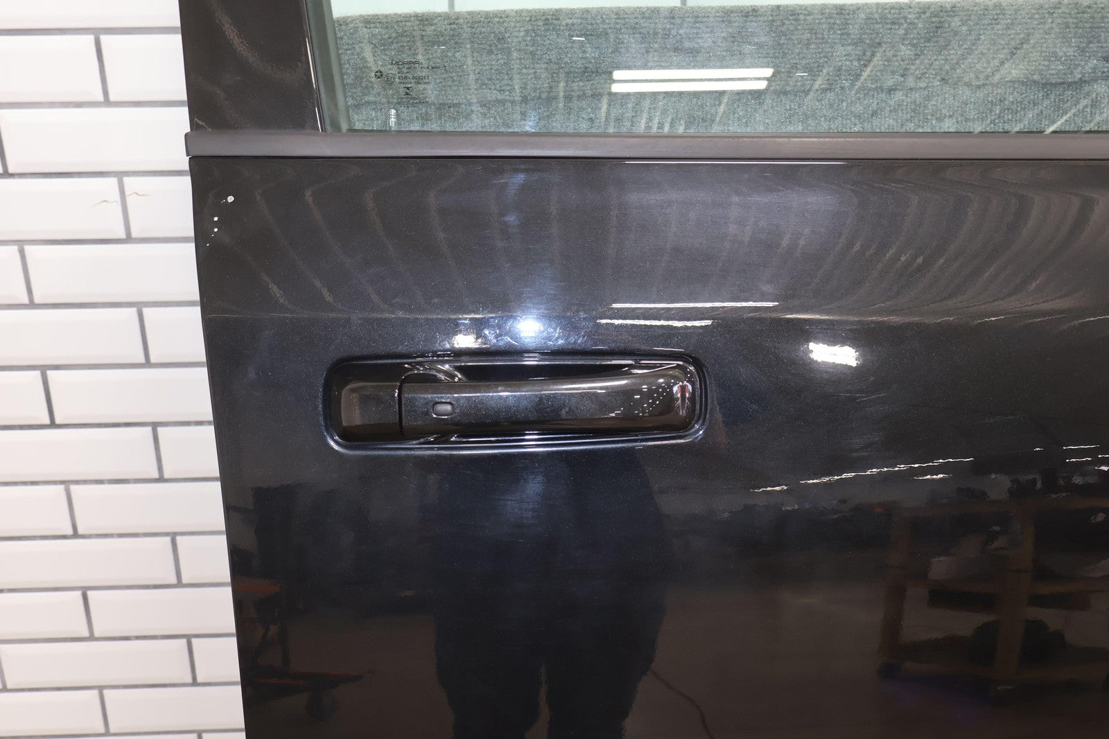 Delantero derecho (cabina Mega), negro brillante (PXR), se vende sin el panel de moldura del espejo, daños en el guardabarros hacia el frente (rojo), un par de desconchones de pintura