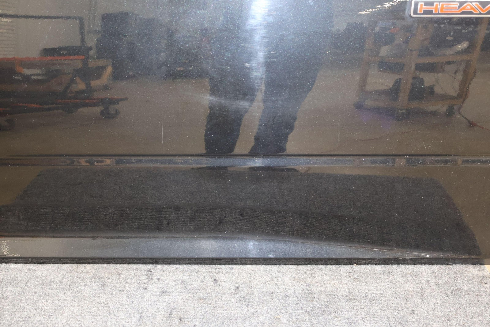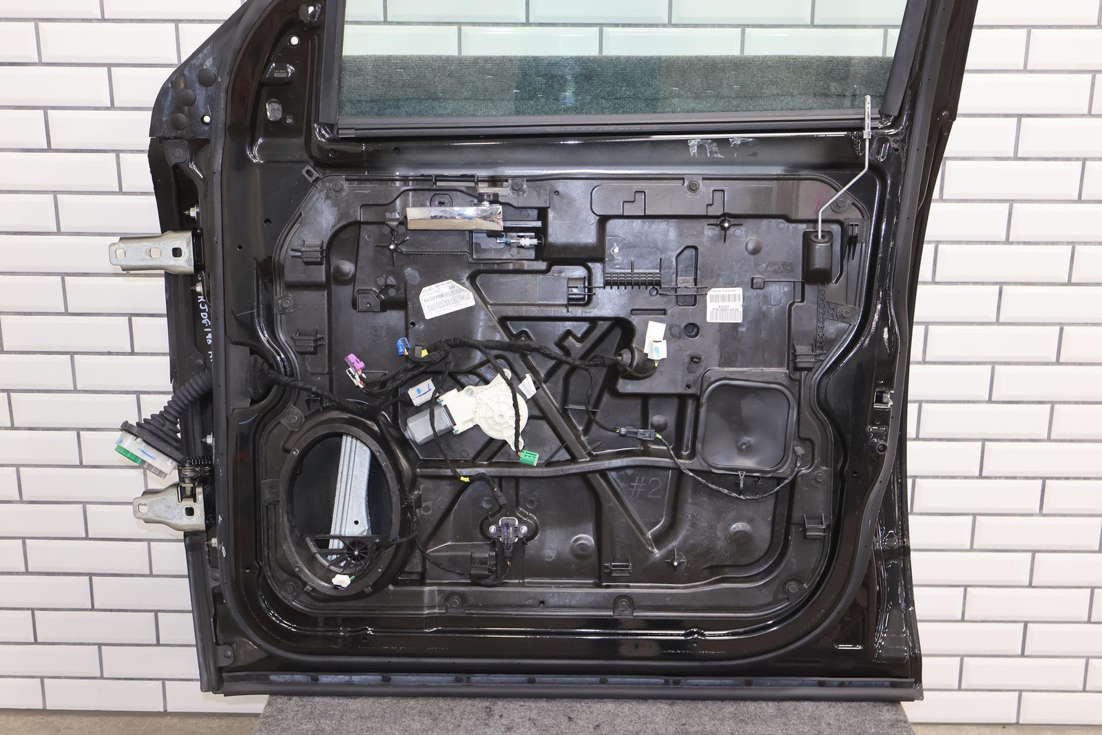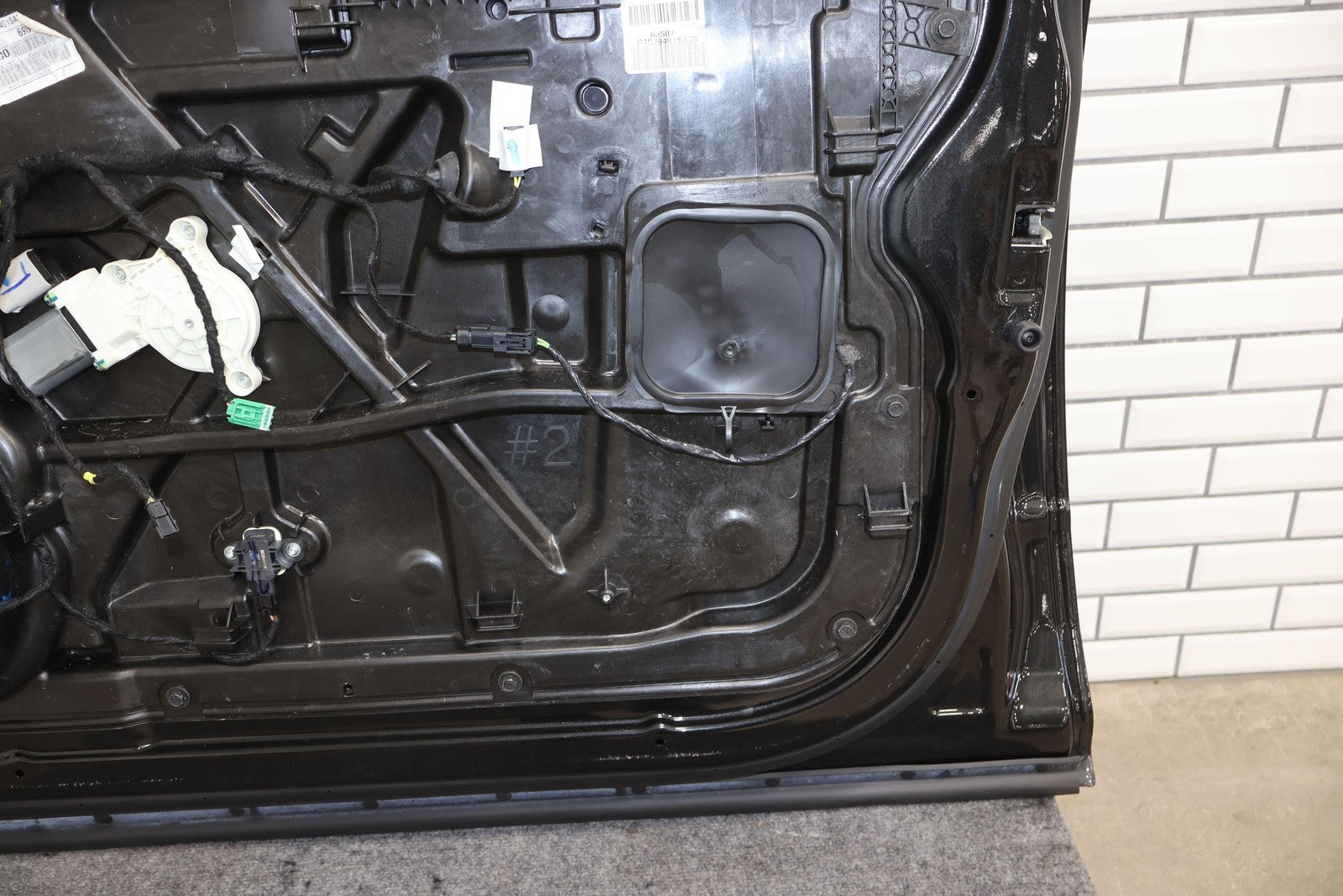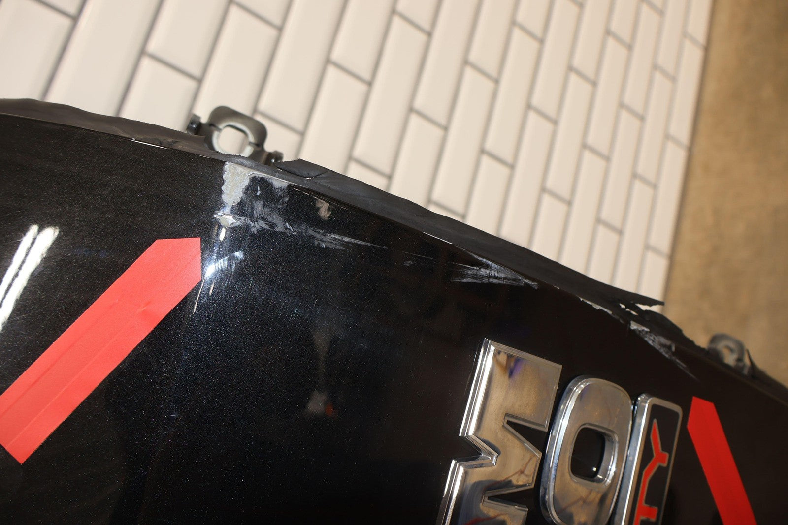 Delantero derecho (cabina Mega), negro brillante (PXR), se vende sin el panel de moldura del espejo, daños en el guardabarros hacia el frente (rojo), un par de desconchones de pintura