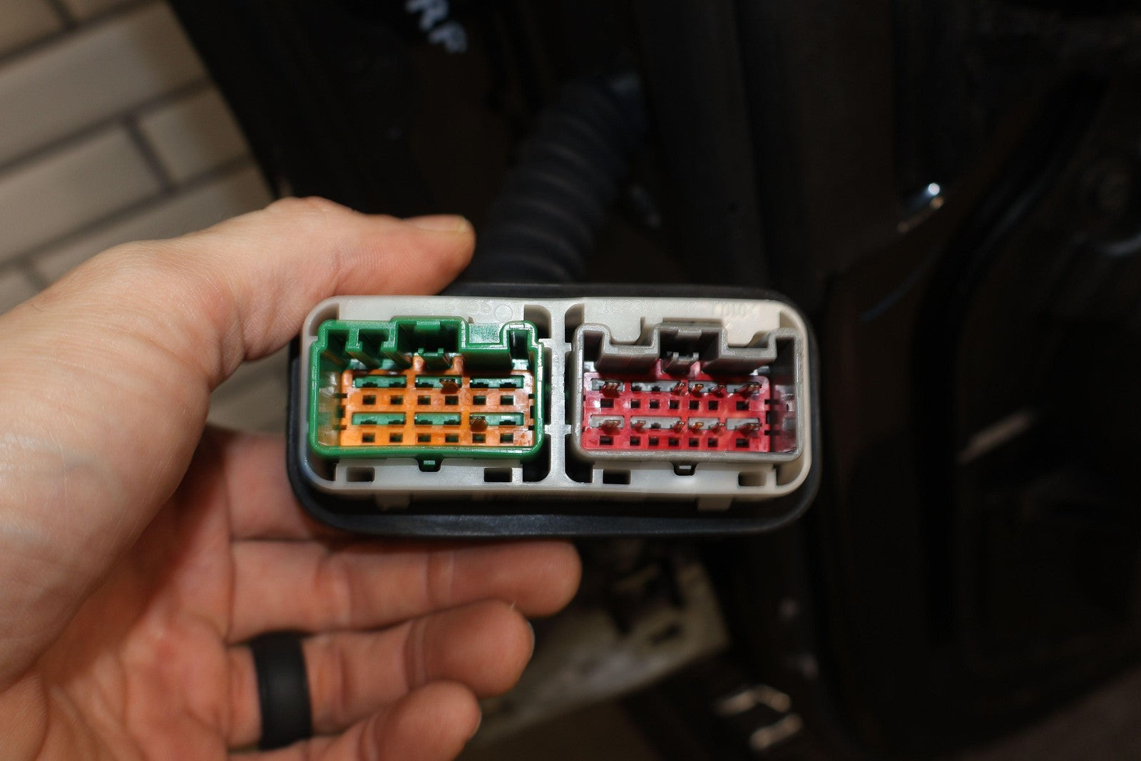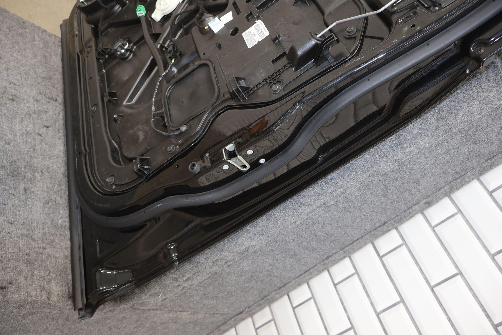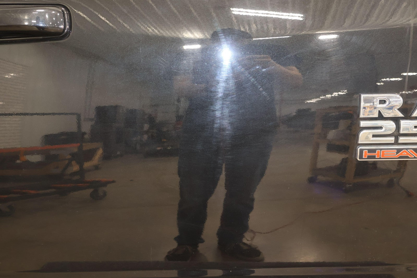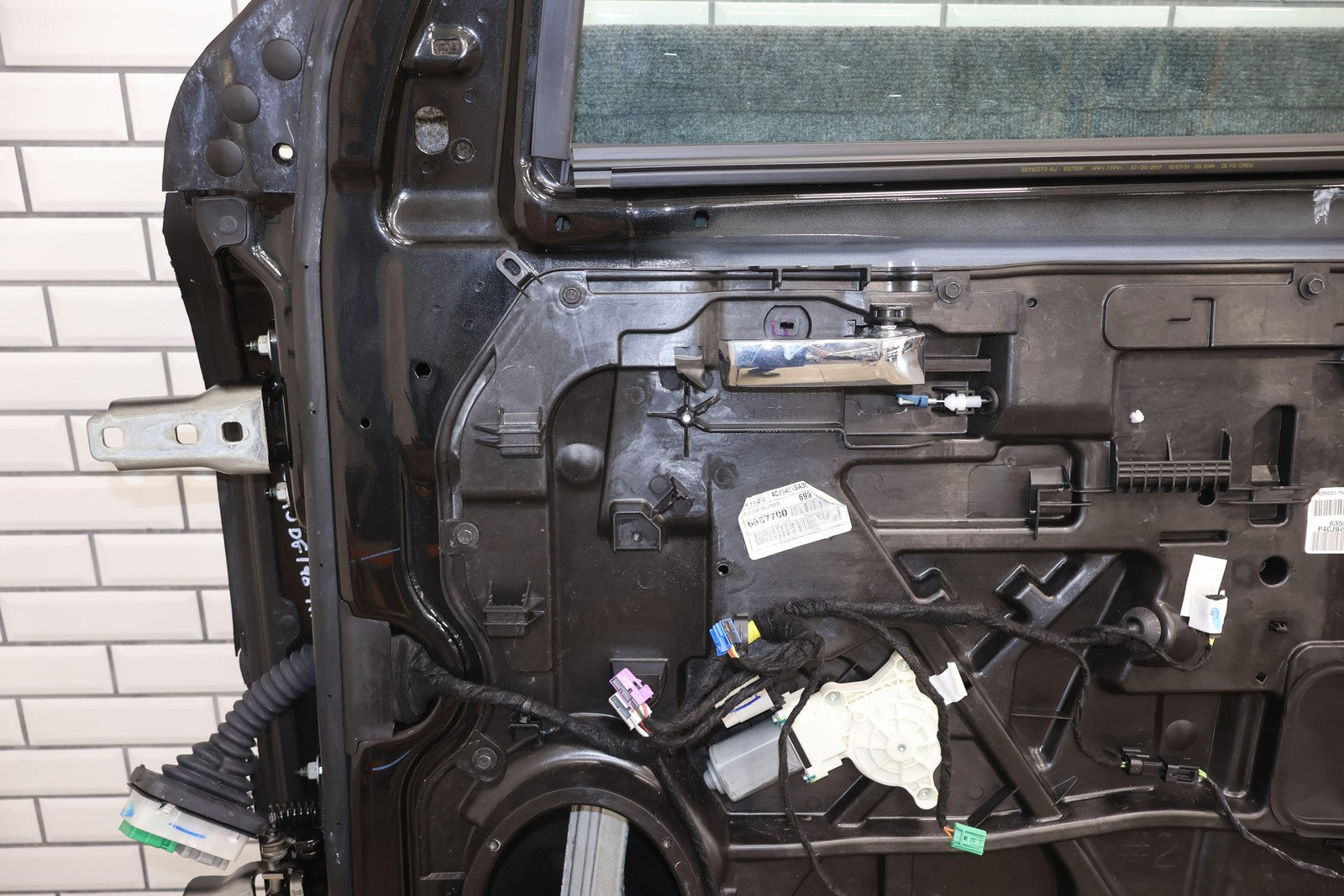 Delantero derecho (cabina Mega), negro brillante (PXR), se vende sin el panel de moldura del espejo, daños en el guardabarros hacia el frente (rojo), un par de desconchones de pintura