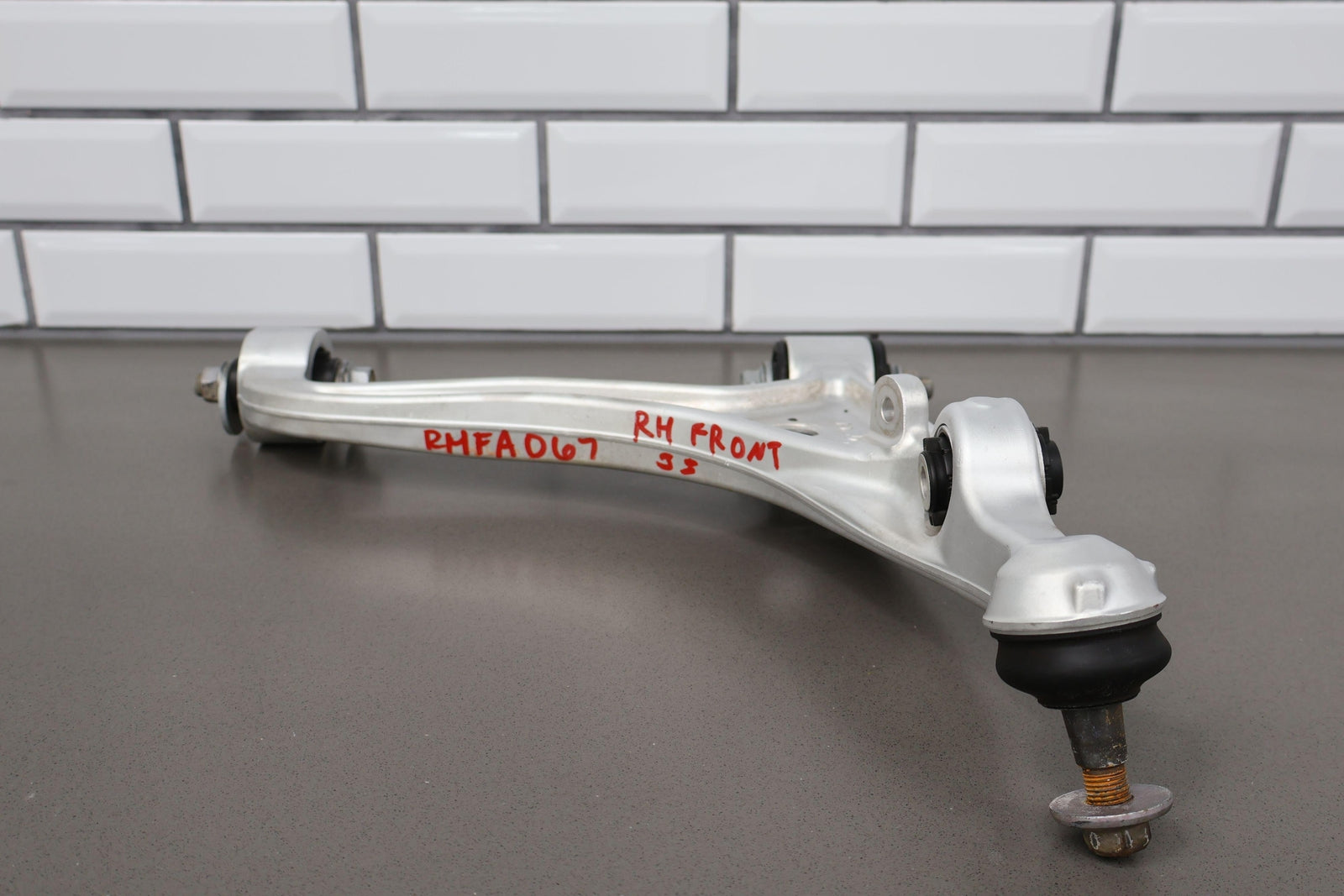 Parte delantera inferior derecha, incluye herrajes varios, rótula apretada, bujes en buen estado, montaje sólido