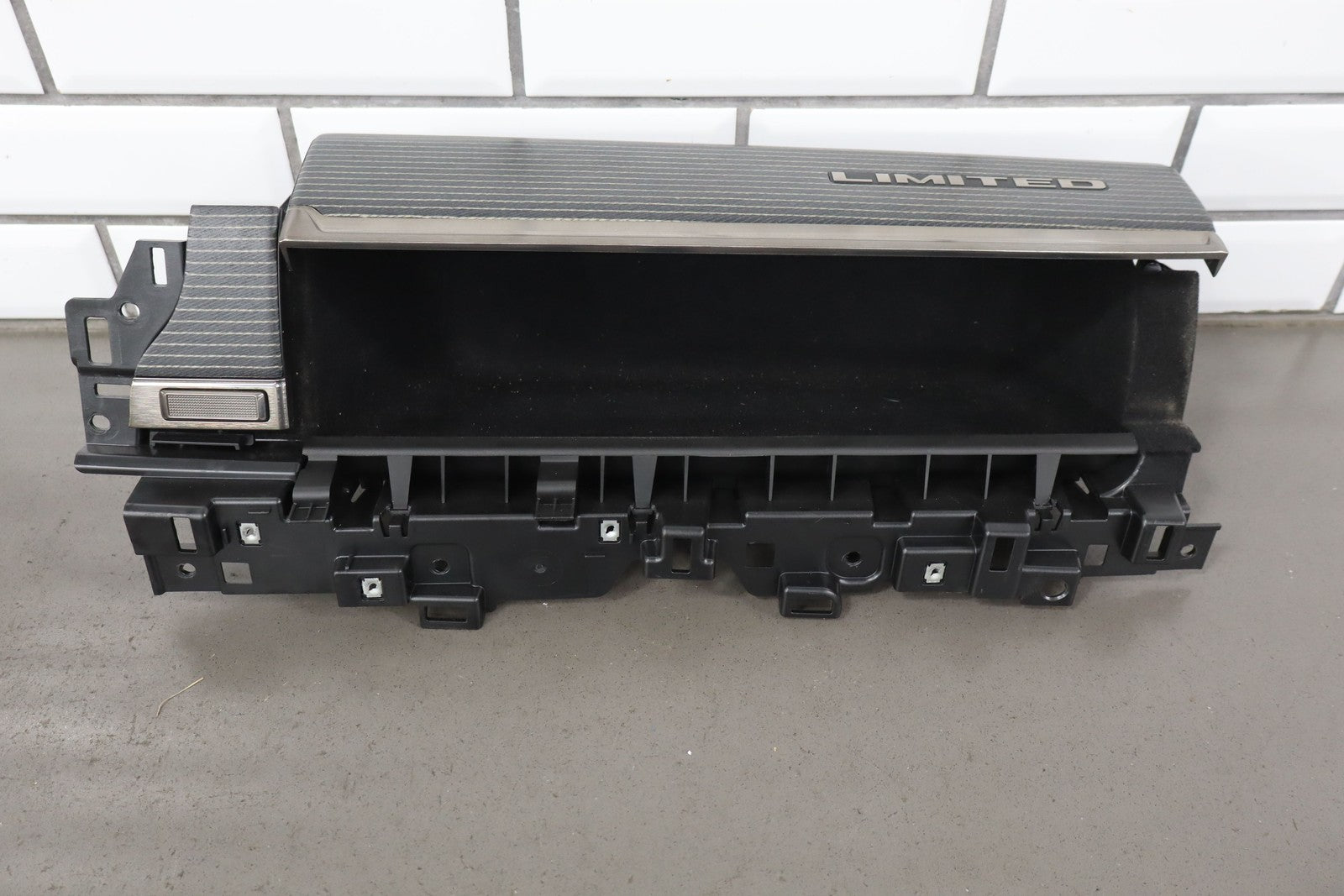 Important notes: Limited Upper Glove Box, New Style (6 Lug), Black Woodgrain, Includes 2 Dash Trims, Latch Functions Properly, Mild Signs Of Wear