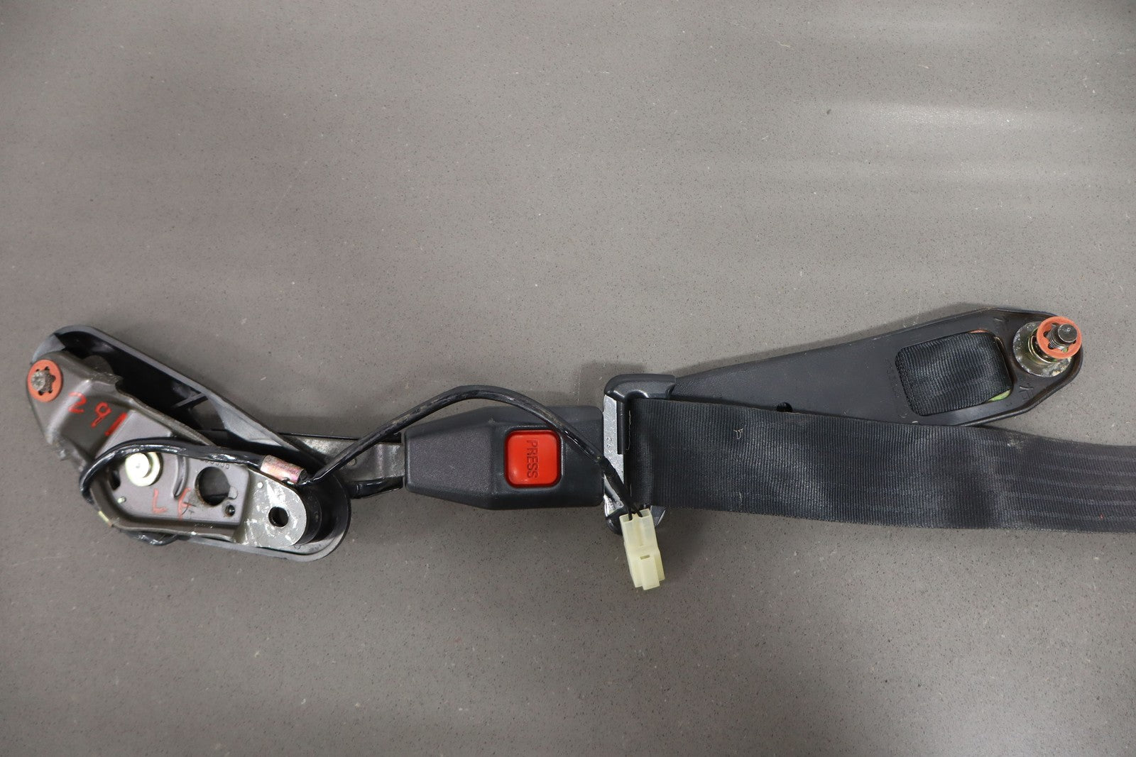 Juego de cinturones de seguridad convertibles, color negro (gn2), incluye retractores y hebillas, decoloración solar aceptable, desgaste leve, manchas leves, todo funciona correctamente.