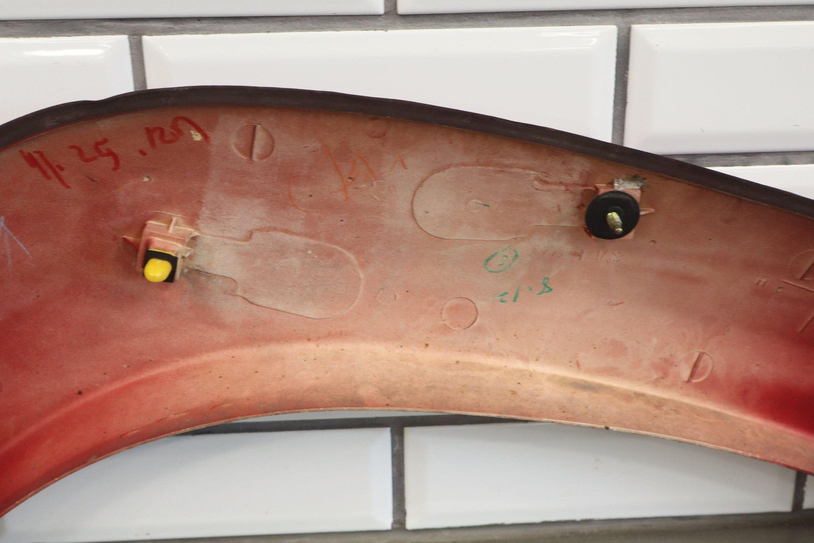 Paso de rueda trasero izquierdo, color rojo perlado medio (3h4), varios arañazos decentes, pocos impactos de piedras, 61064-60010